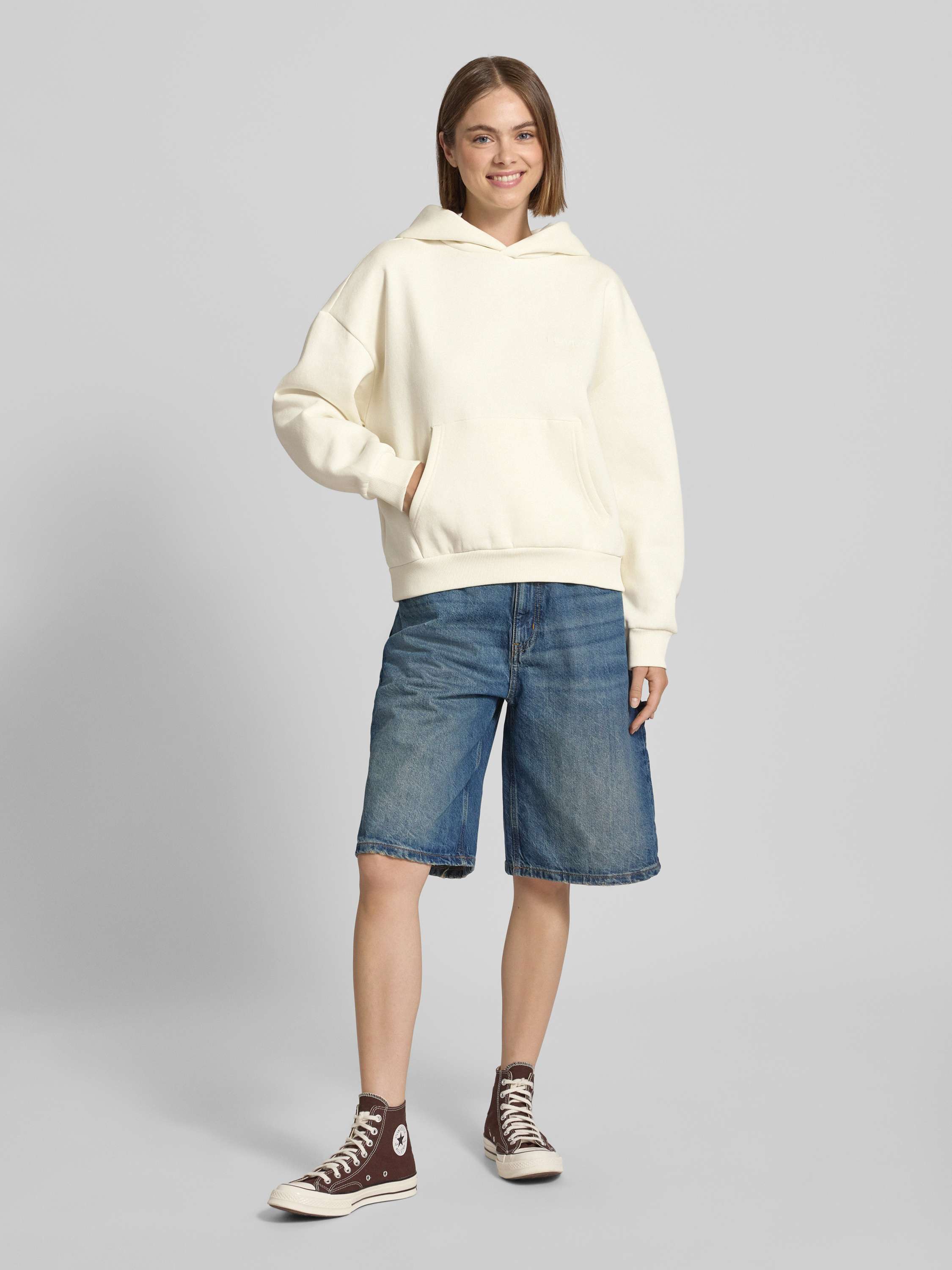 ReviewHoodie mit überschnittenen Schultern und Känguru-Tasche in offwhite
