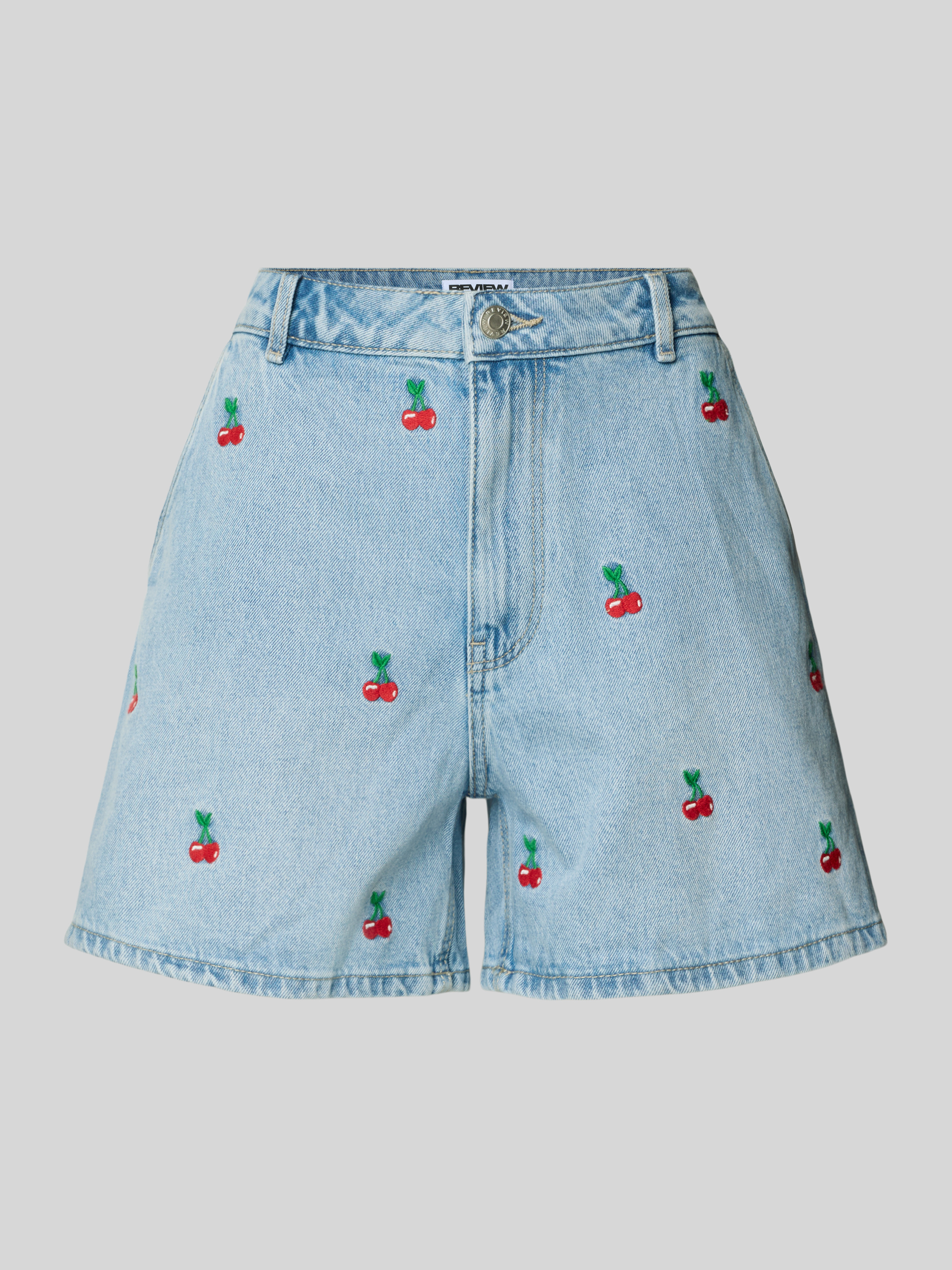 ReviewJeansshorts mit Stitchings und Eingrifftaschen in hellblau