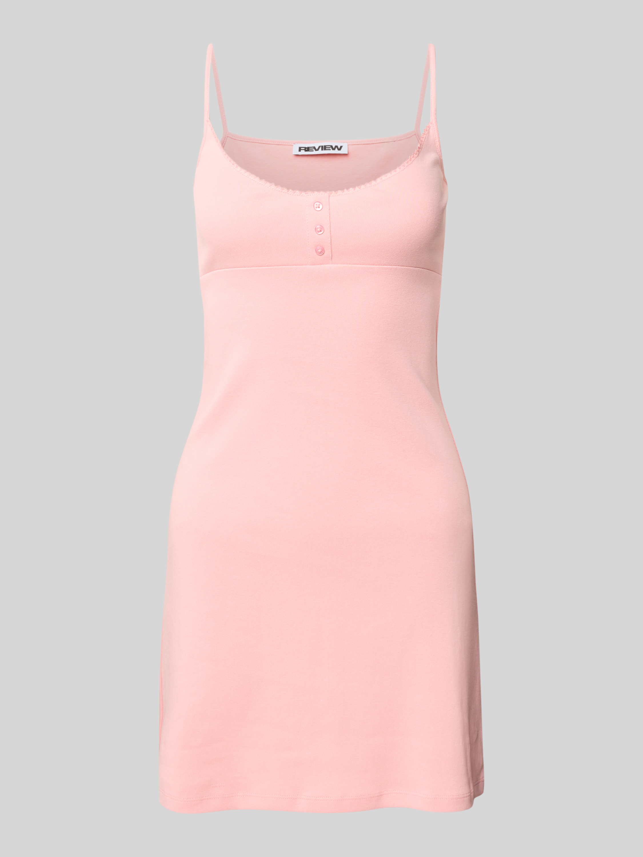 ReviewMinikleid mit kurzer Knopfleiste und Spaghettiträgern in rosa