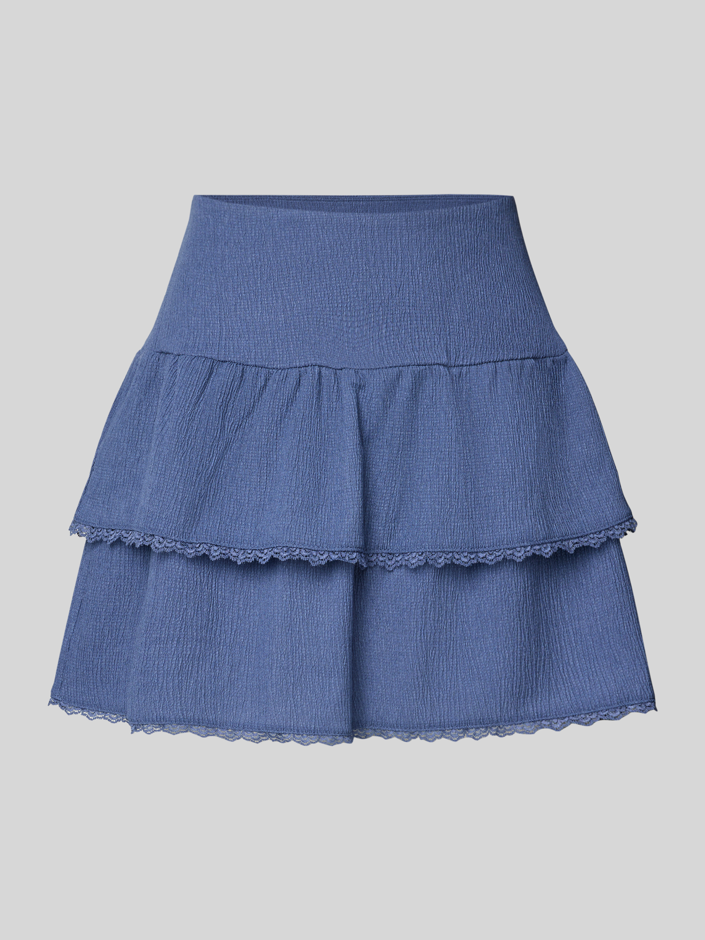ReviewMinirock im Stufen-Look mit Spitze in rauchblau