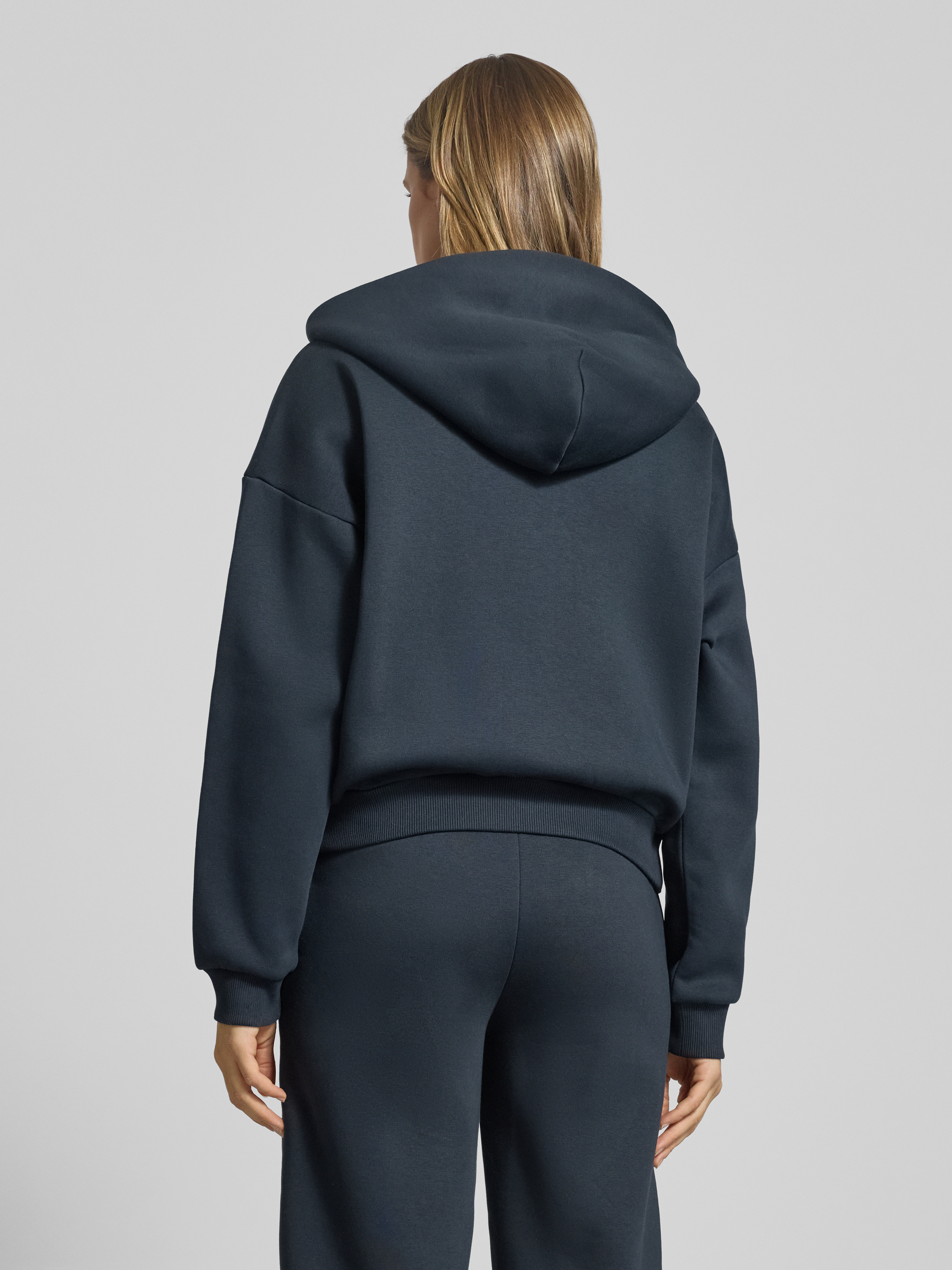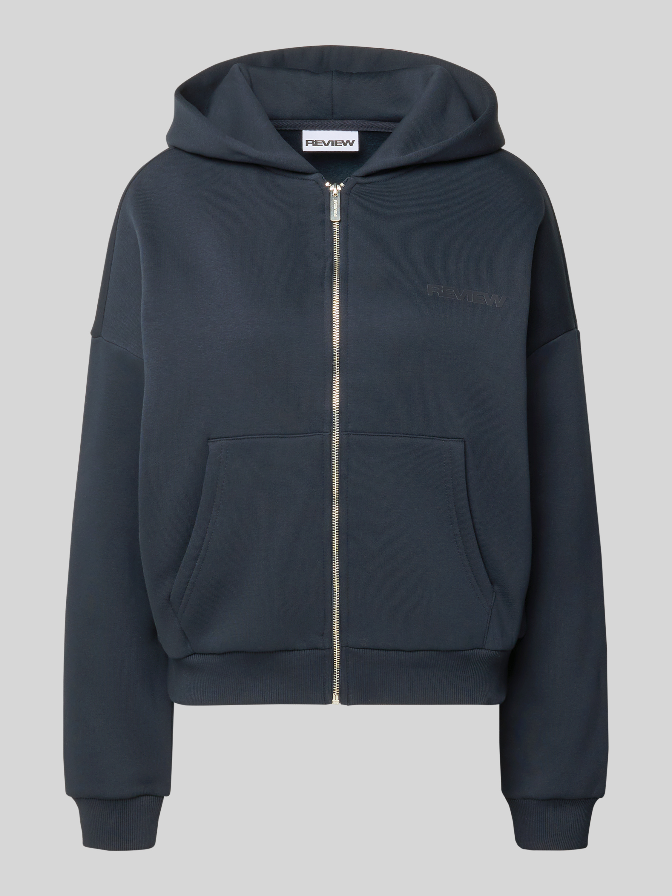Die Damen Sweatjacke von Review zeigt sich im oversized Schnitt und bringt durch den Material-Mix mit Baumwoll-Anteil eine angenehme Haptik mit. Eine Kapuze sowie praktische Eingrifftaschen sorgen für Komfort im Alltag. Der dezente Label-Print unterstreicht den lässigen Charakter der Jacke.