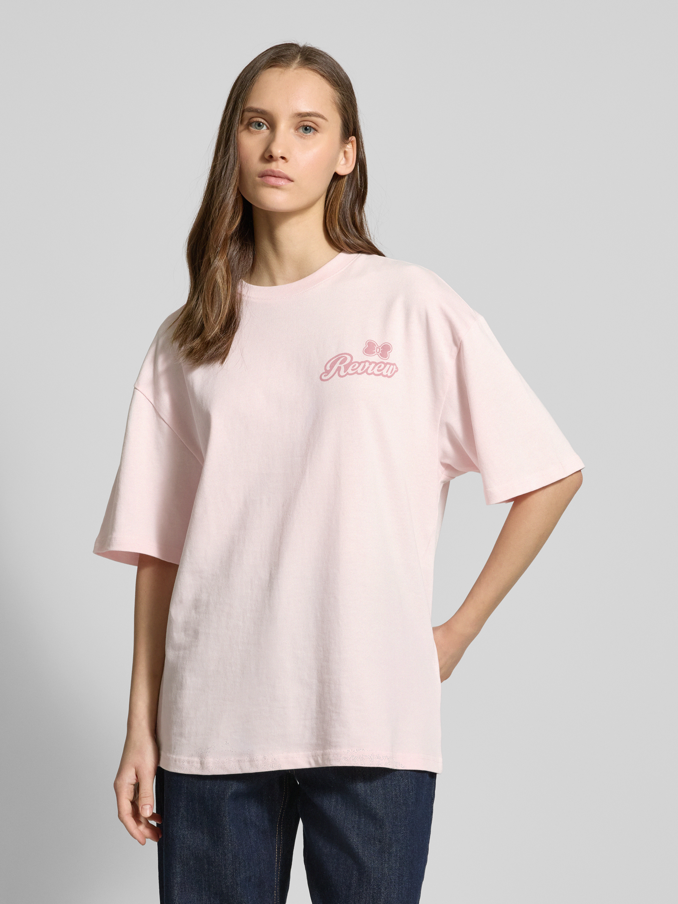 Das Oversized T-Shirt von REVIEW kombiniert lässigen Komfort mit zeitgemäßem Stil. Aus reiner Baumwolle gefertigt, sorgt es für ein angenehmes Tragegefühl und zeichnet sich durch seinen großzügigen Schnitt aus. Der auffällige Label-Print setzt zudem modische Akzente.