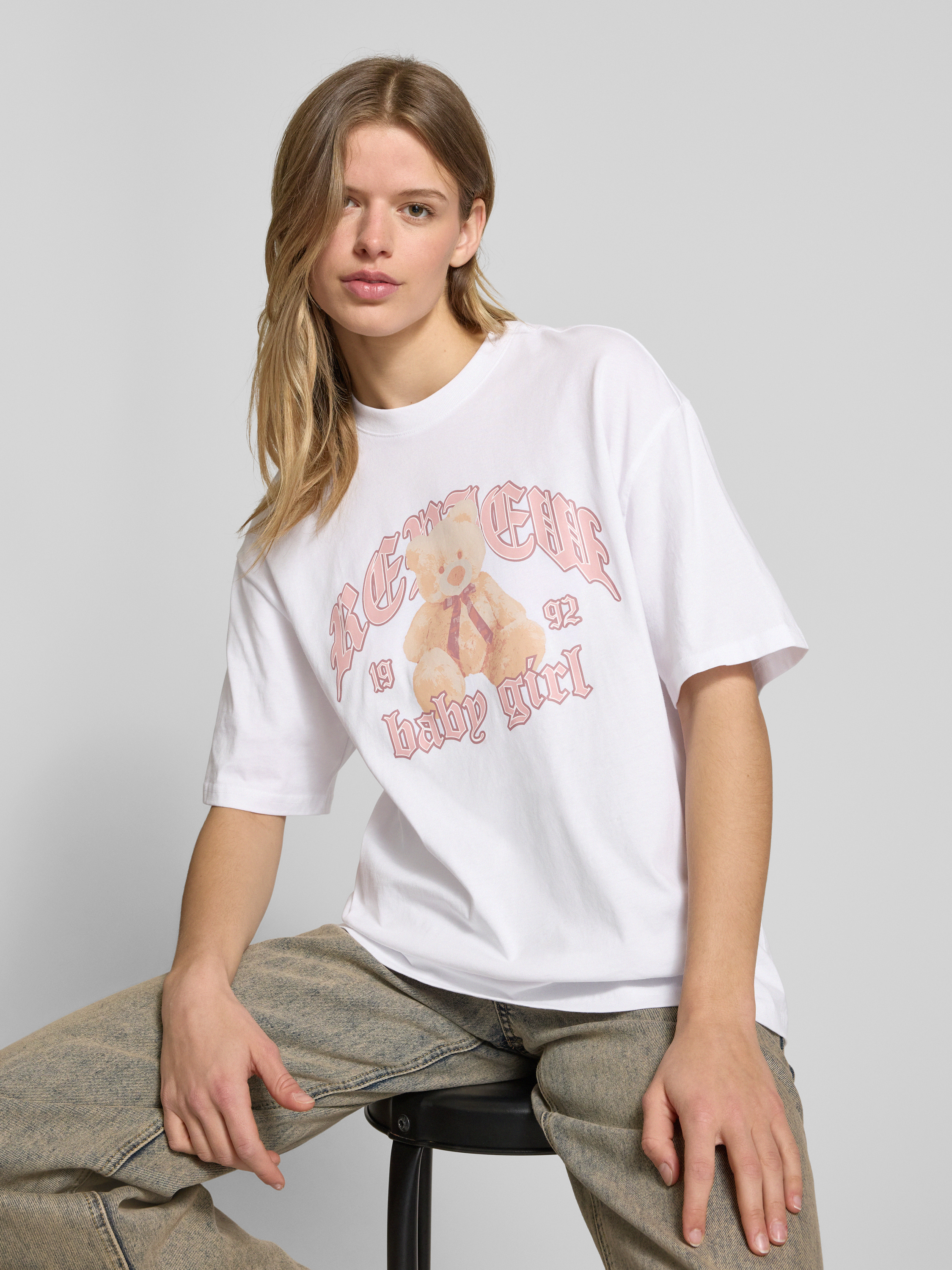 ReviewOversized T-Shirt mit Label-Print in weiss
