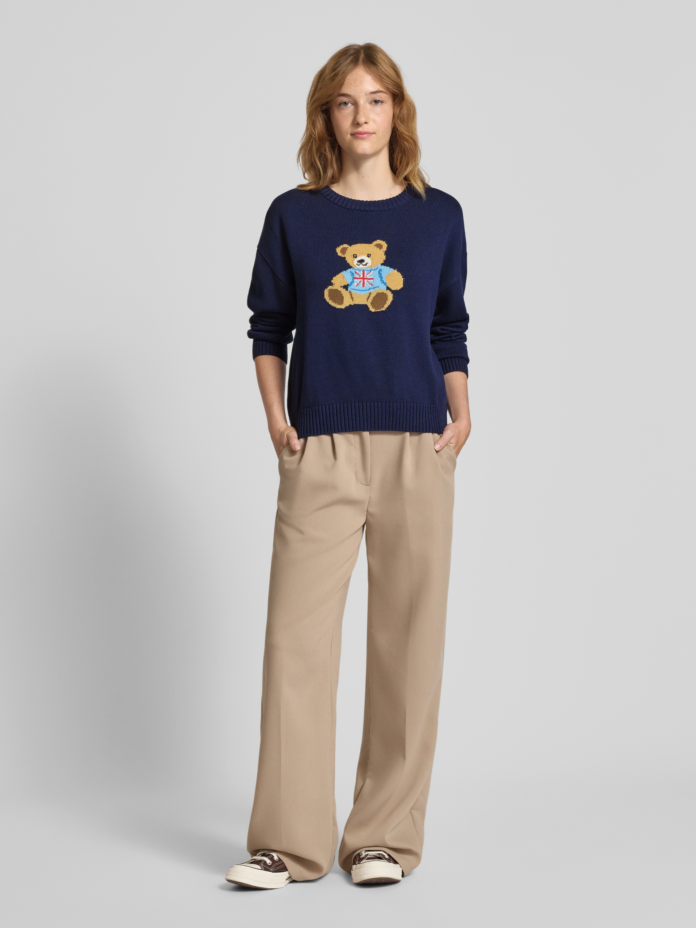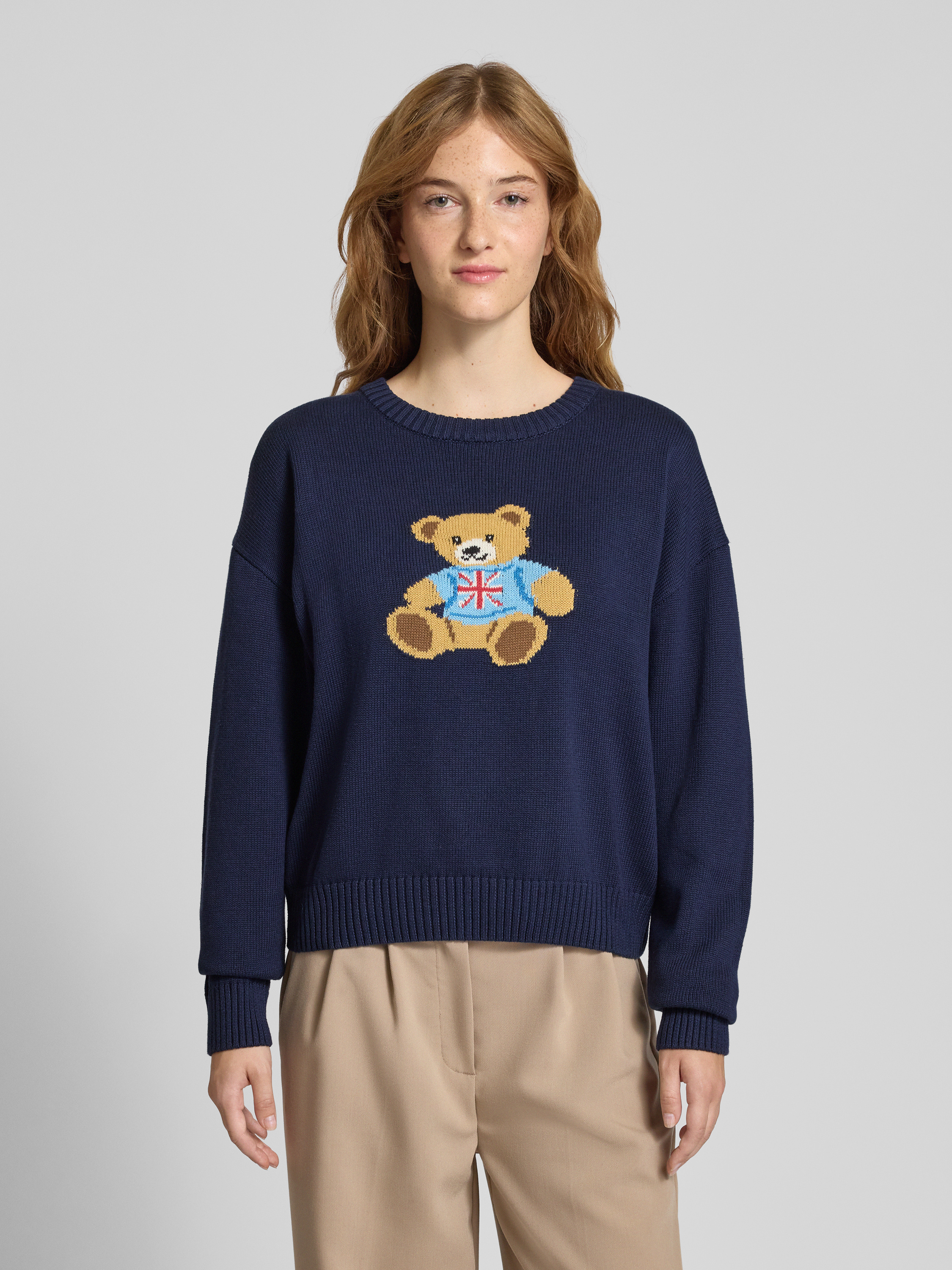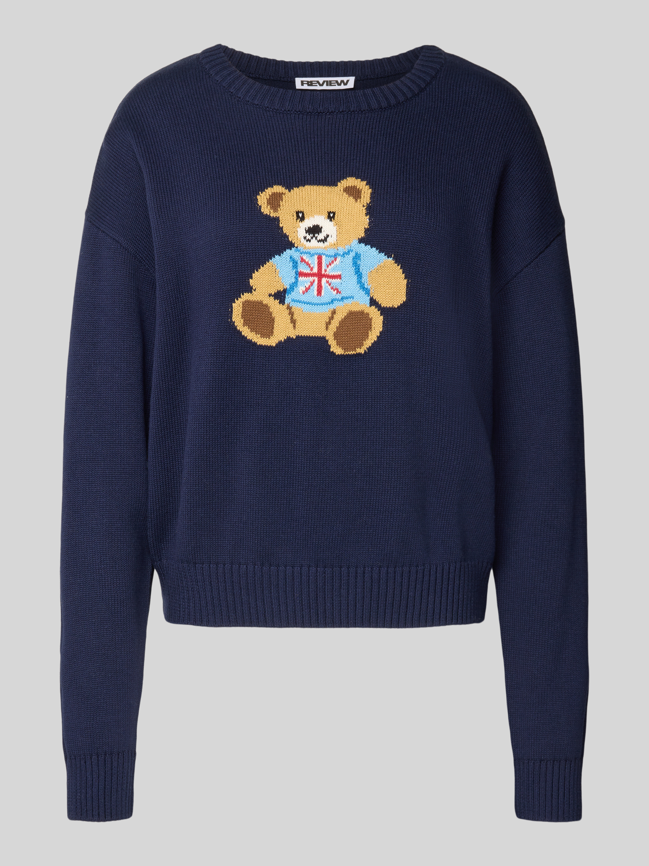 ReviewStrickpullover mit Motiv und Rundhalsausschnitt in marine