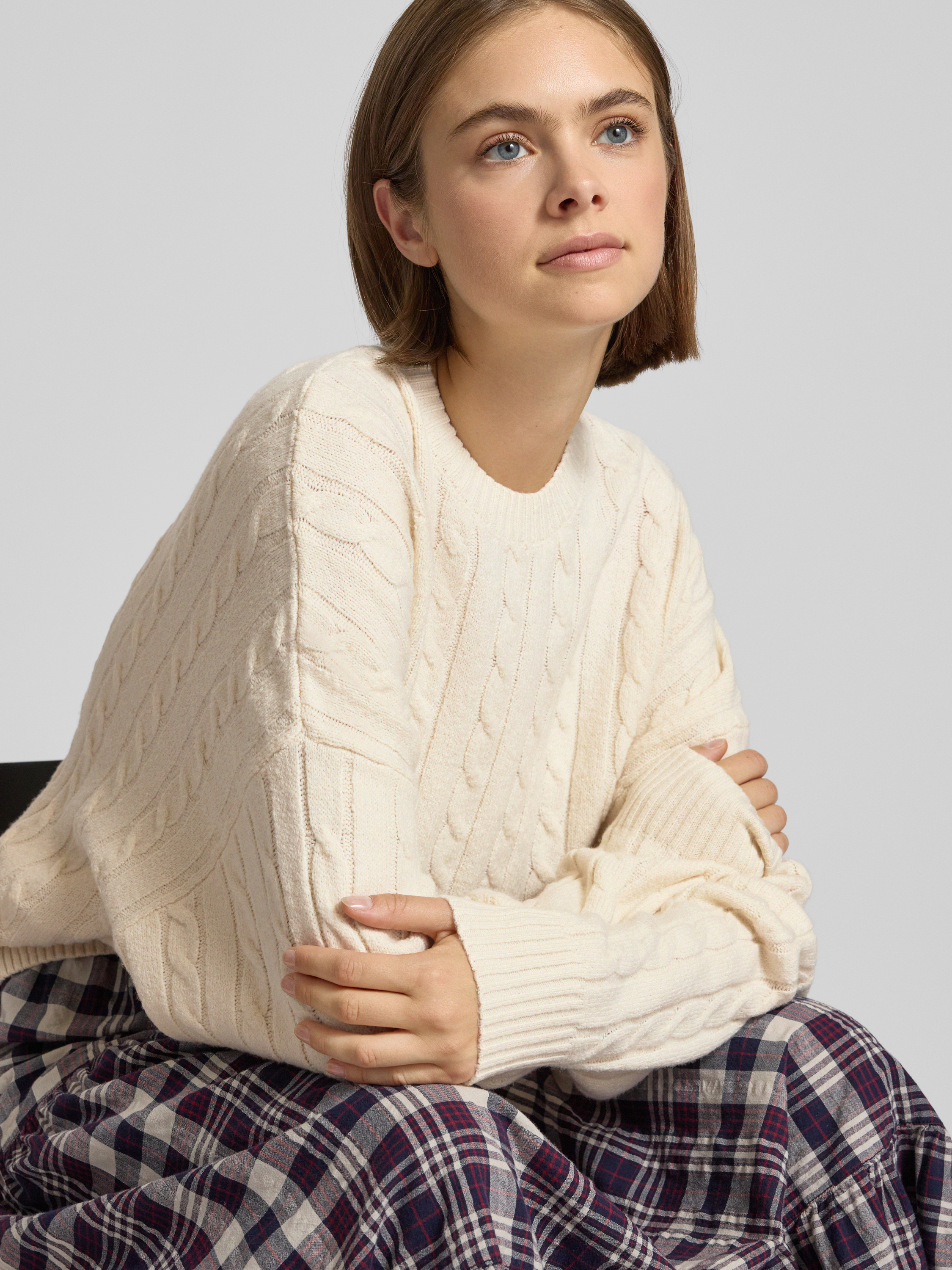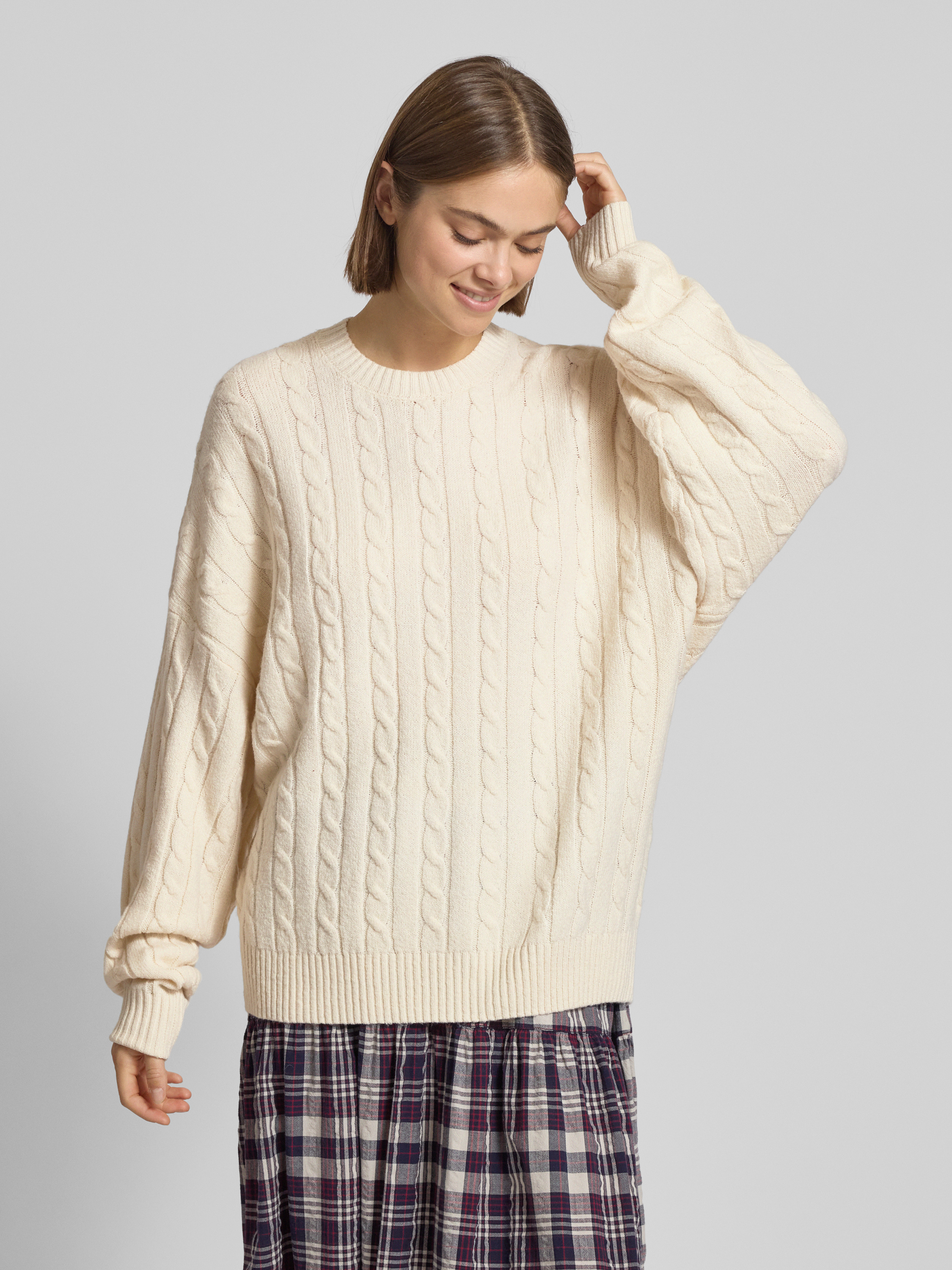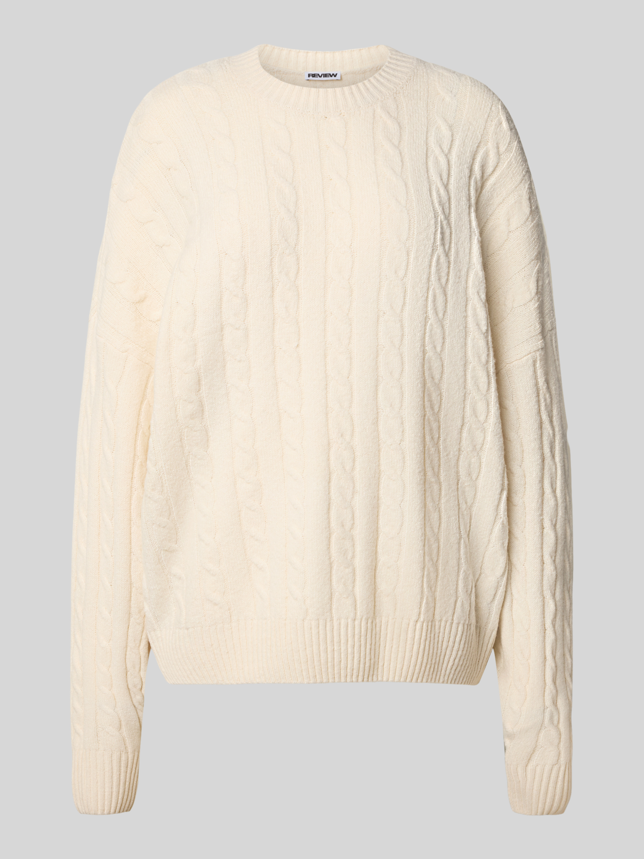 ReviewStrickpullover mit Zopfmuster in offwhite melange