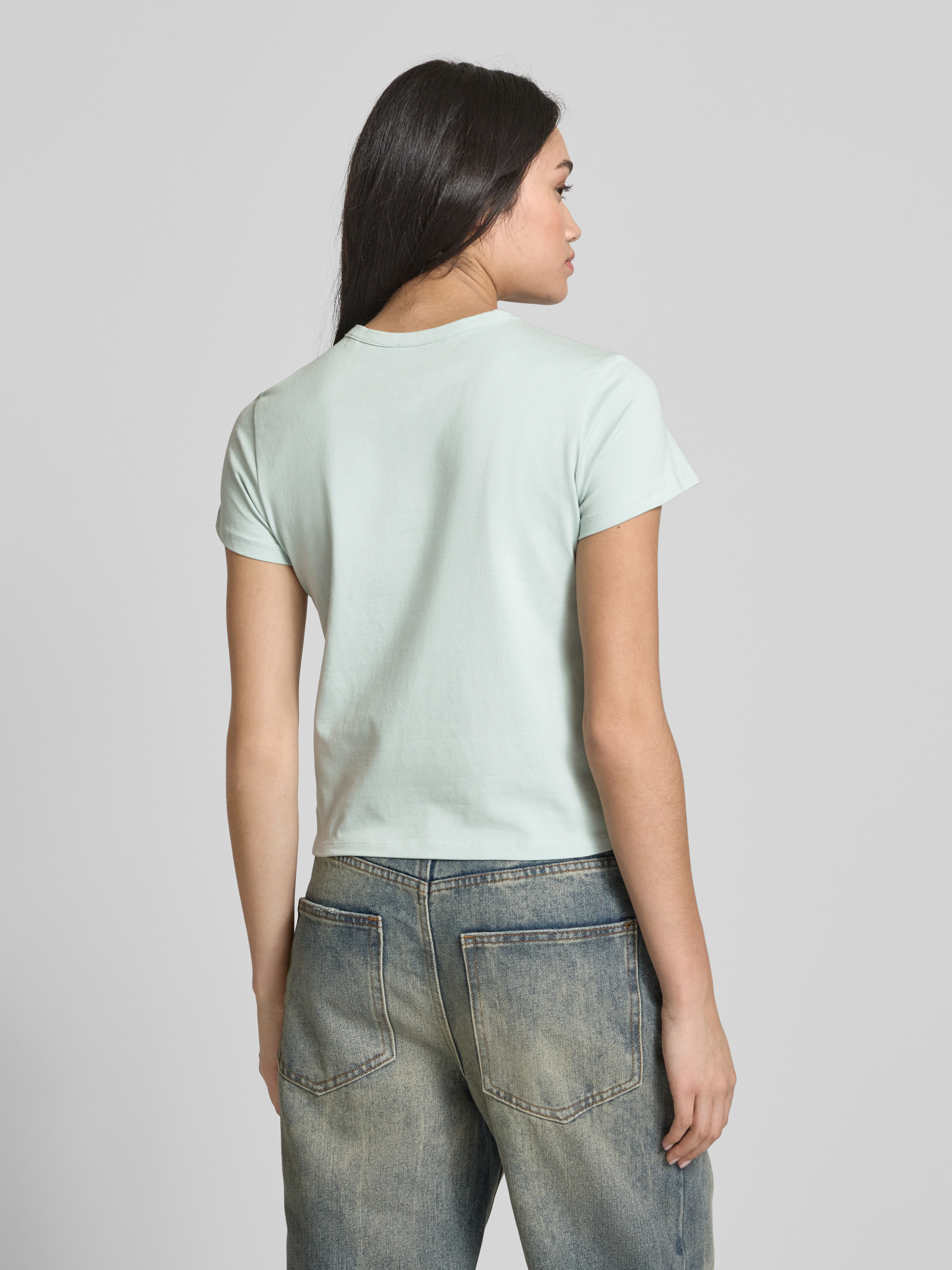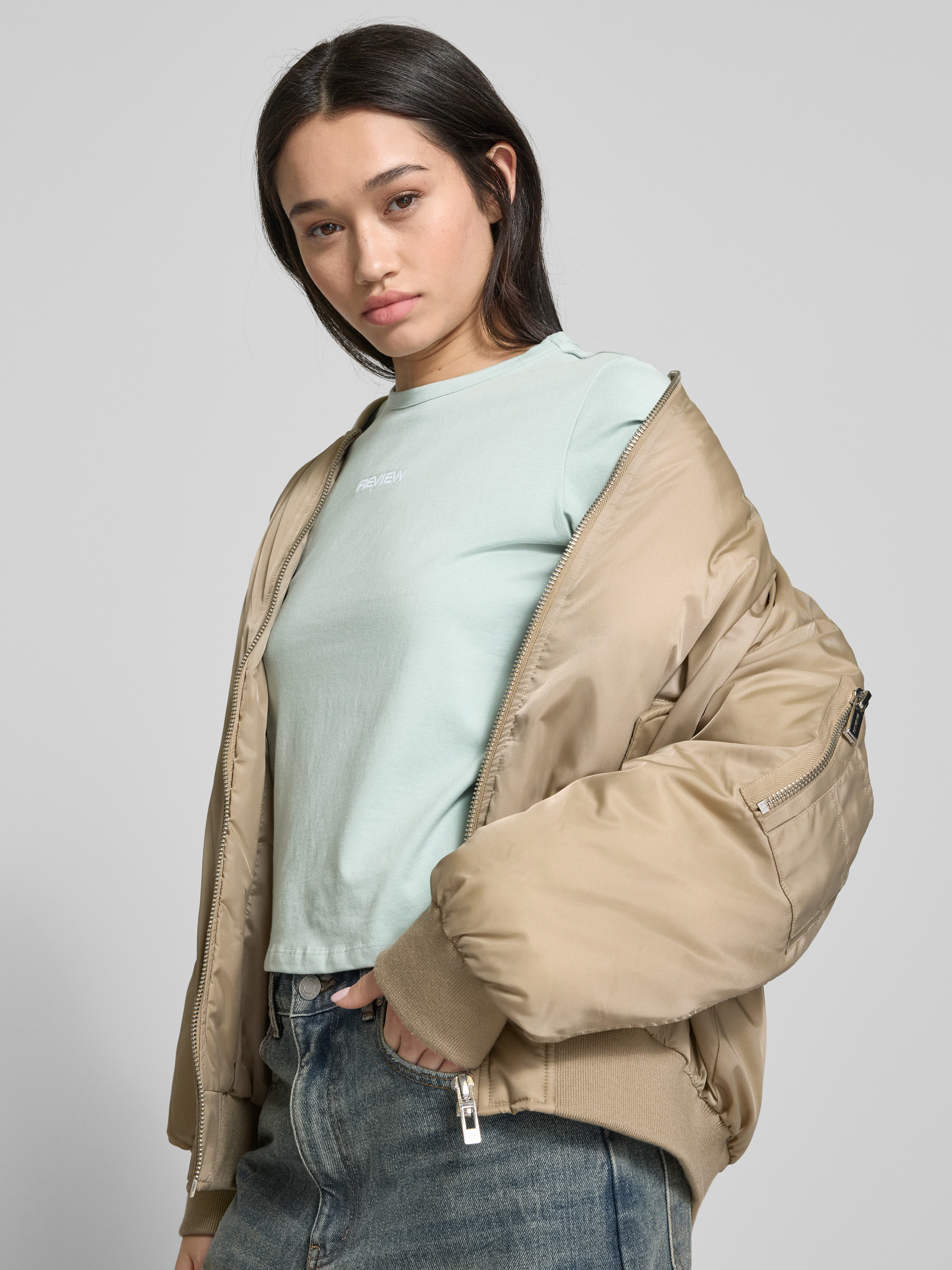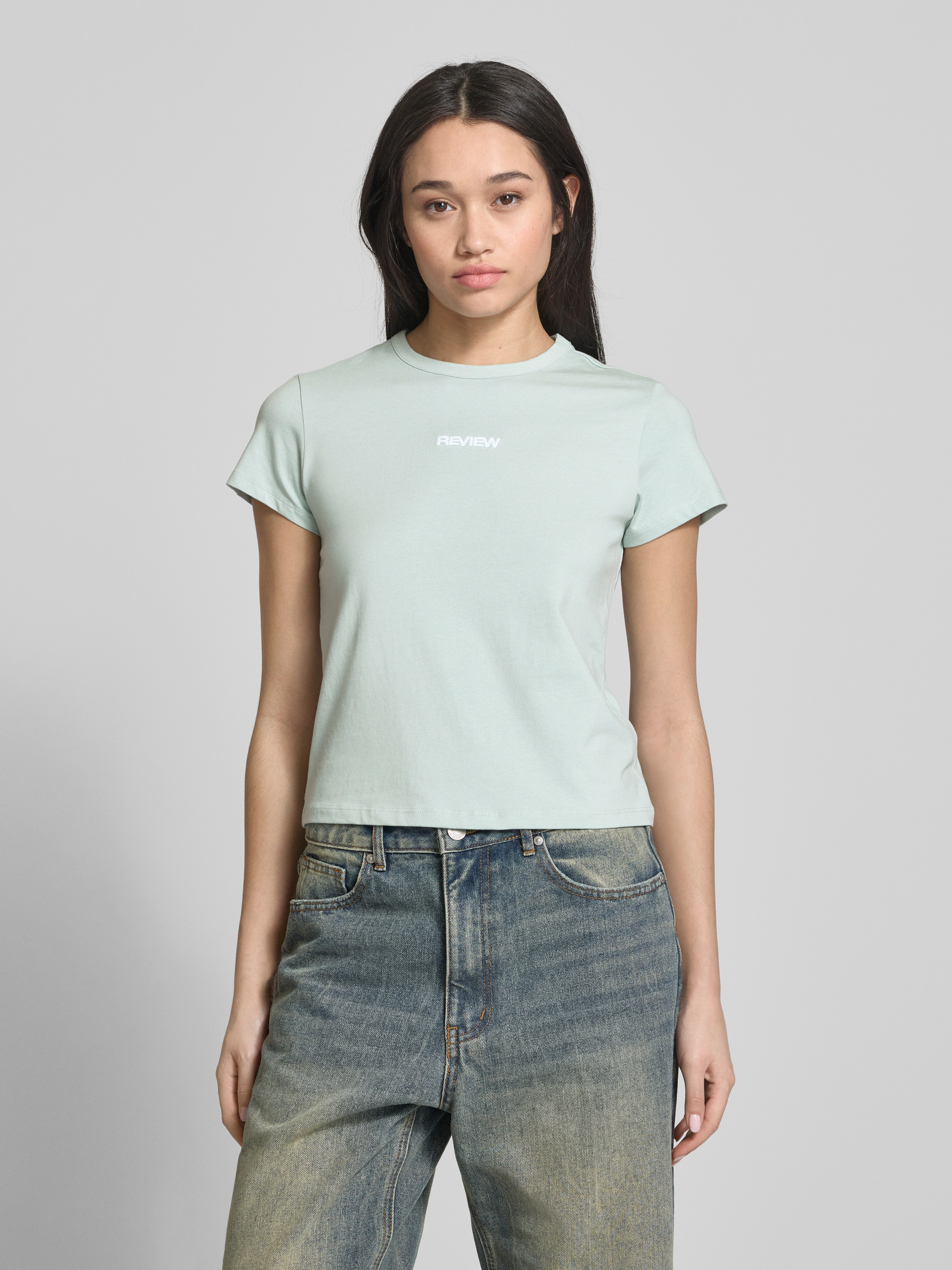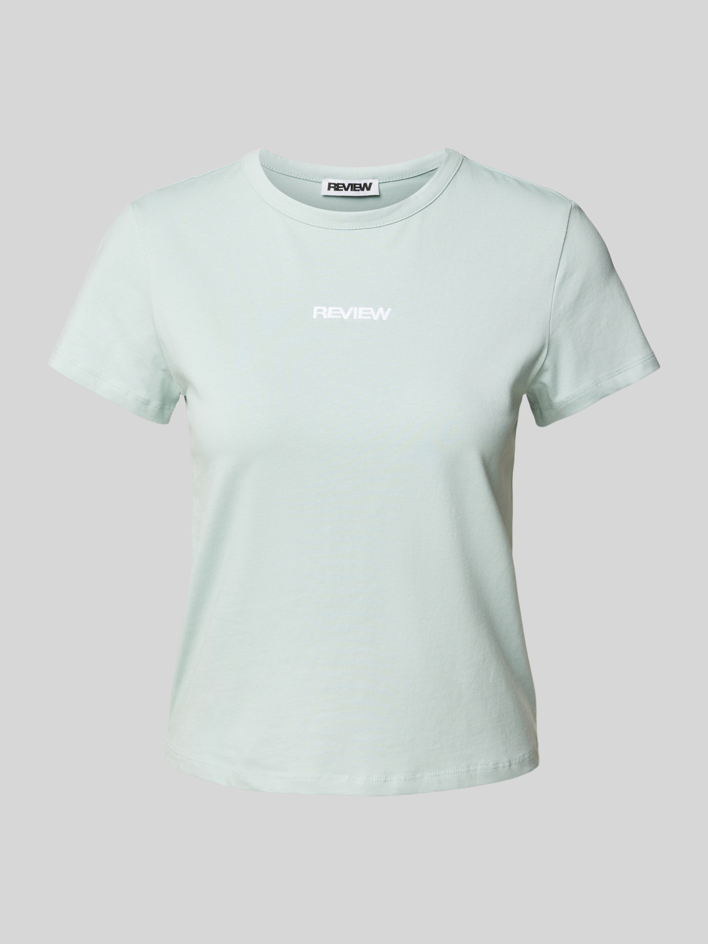 Das T-Shirt von REVIEW, gefertigt aus reiner Baumwolle, kombiniert angenehmen Tragekomfort mit einem klassischen Regular Fit. Der markante Label-Print verleiht dem Design einen modernen Akzent. Mit seinem gerippten Rundhalsausschnitt bietet es eine vielseitige Ergänzung für jede Garderobe.