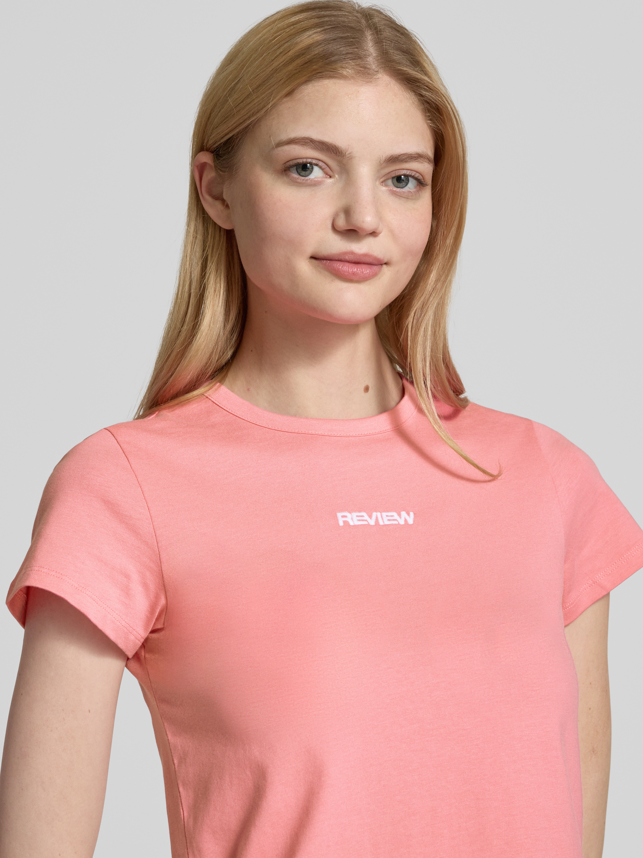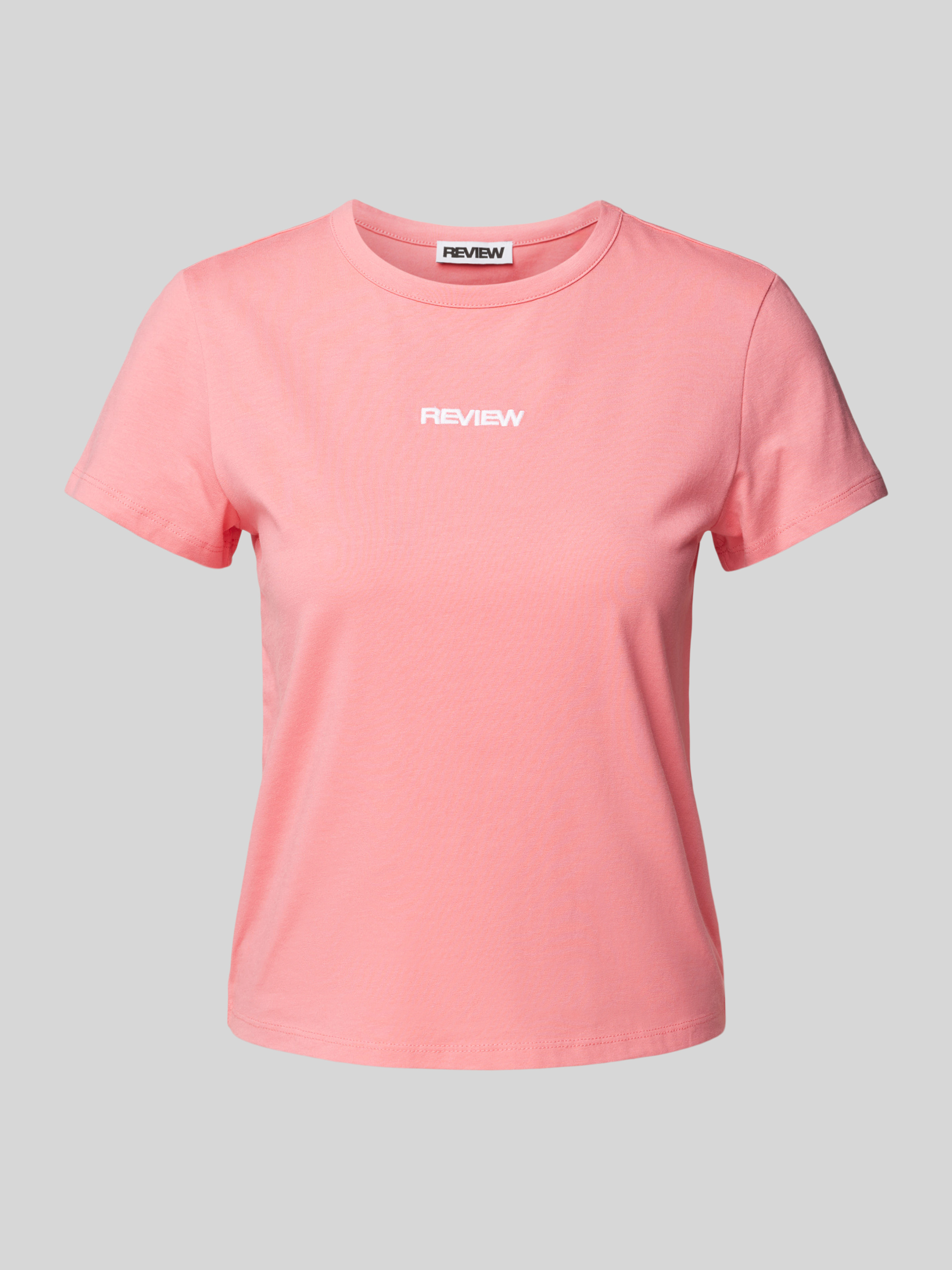 Das T-Shirt von REVIEW, gefertigt aus reiner Baumwolle, kombiniert angenehmen Tragekomfort mit einem klassischen Regular Fit. Der markante Label-Print verleiht dem Design einen modernen Akzent. Mit seinem gerippten Rundhalsausschnitt bietet es eine vielseitige Ergänzung für jede Garderobe.
