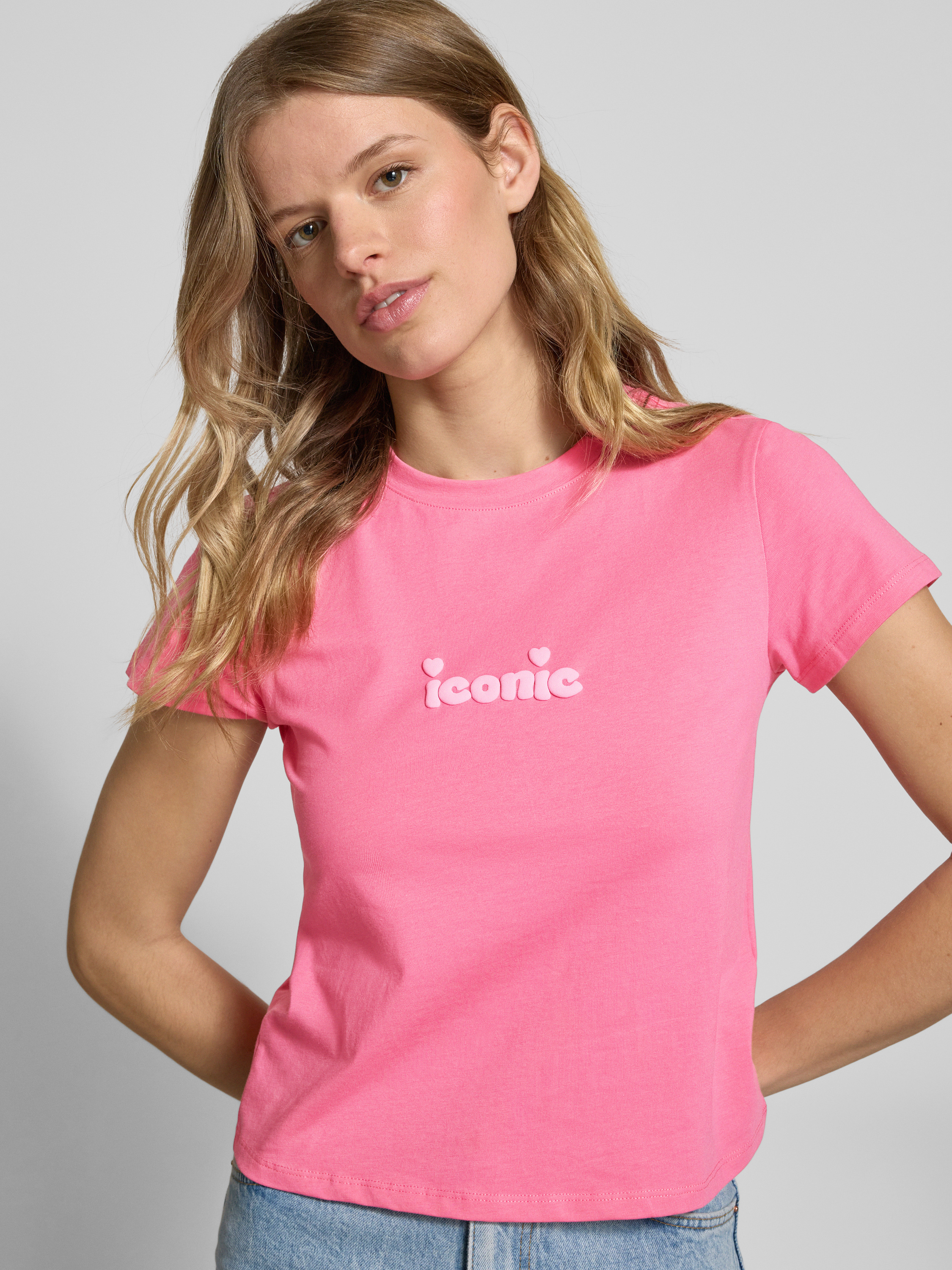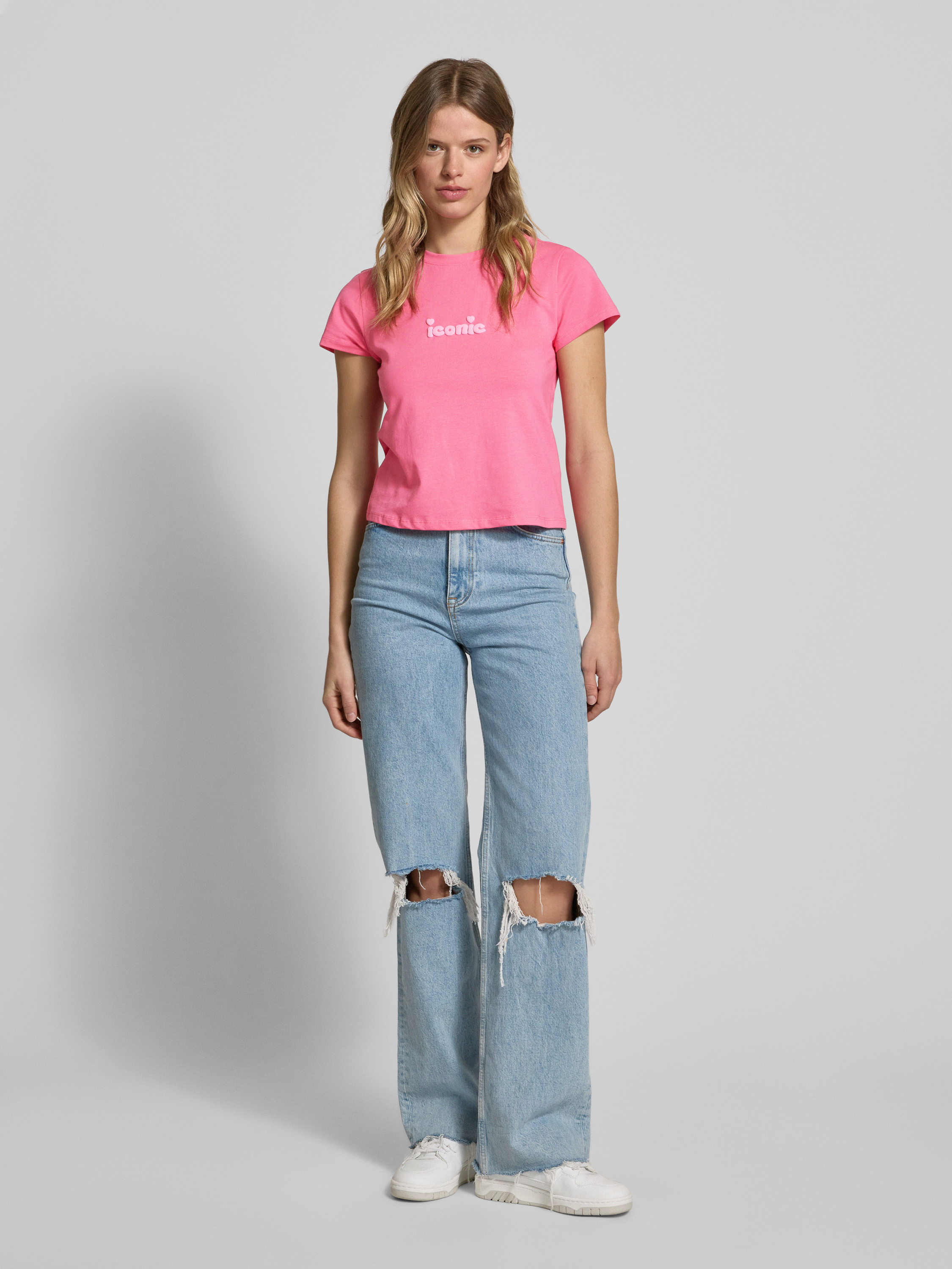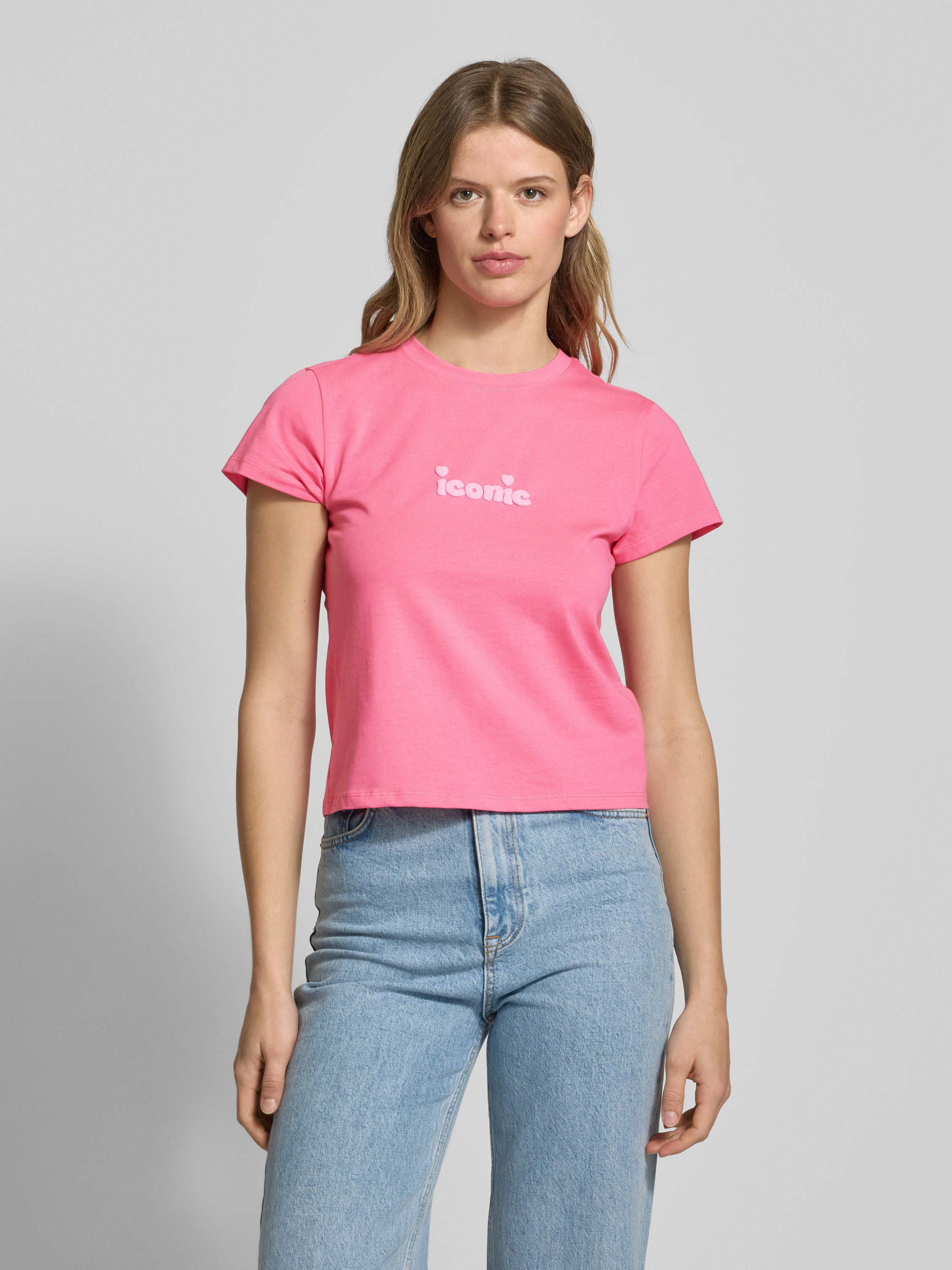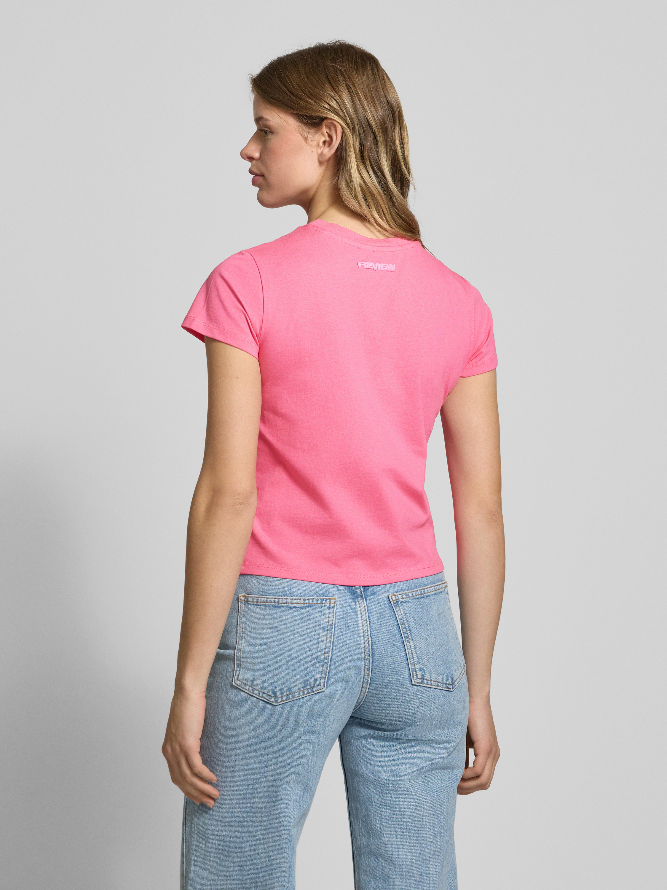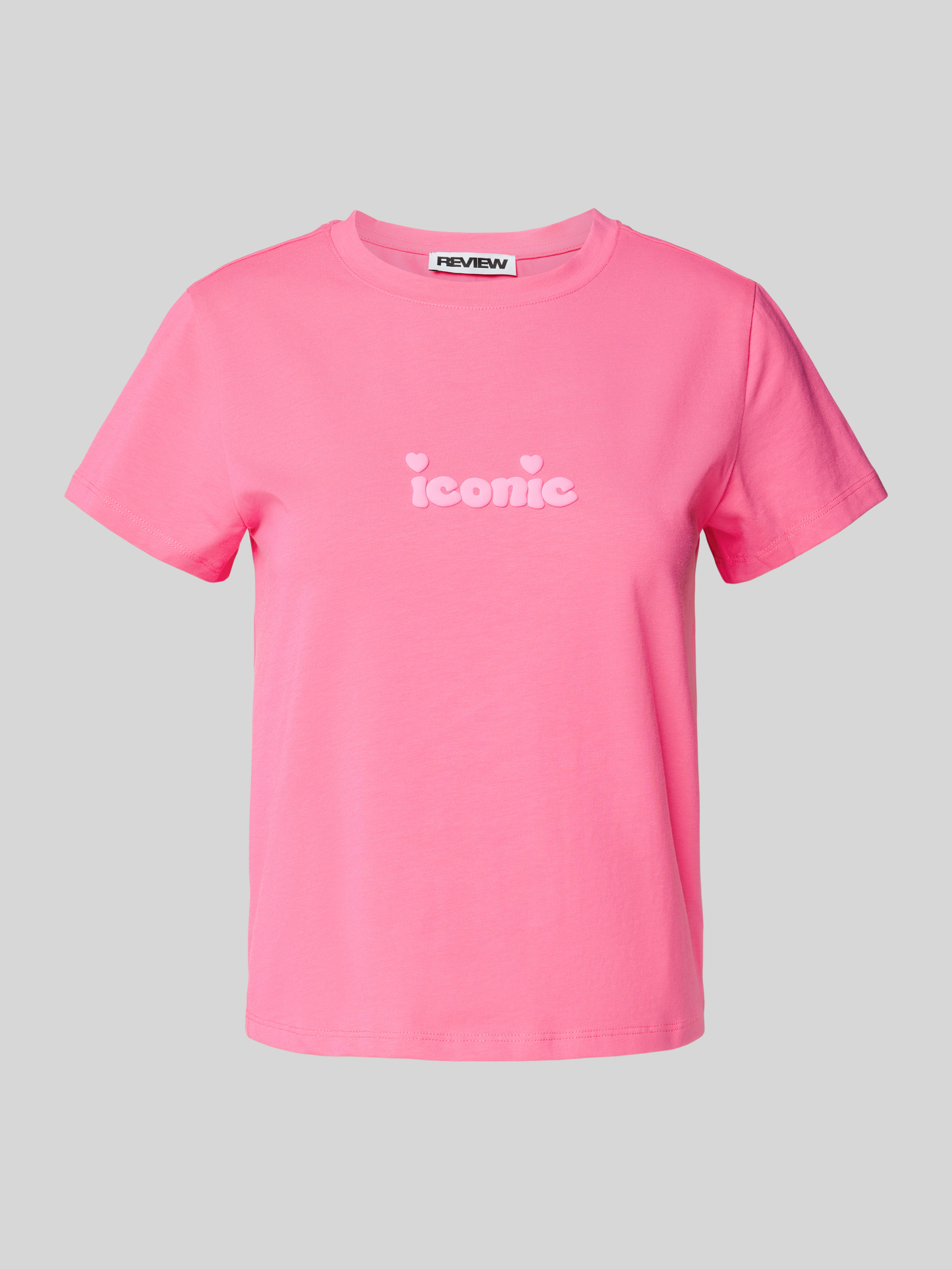 ReviewT-Shirt mit Statement-Stitching in neon pink