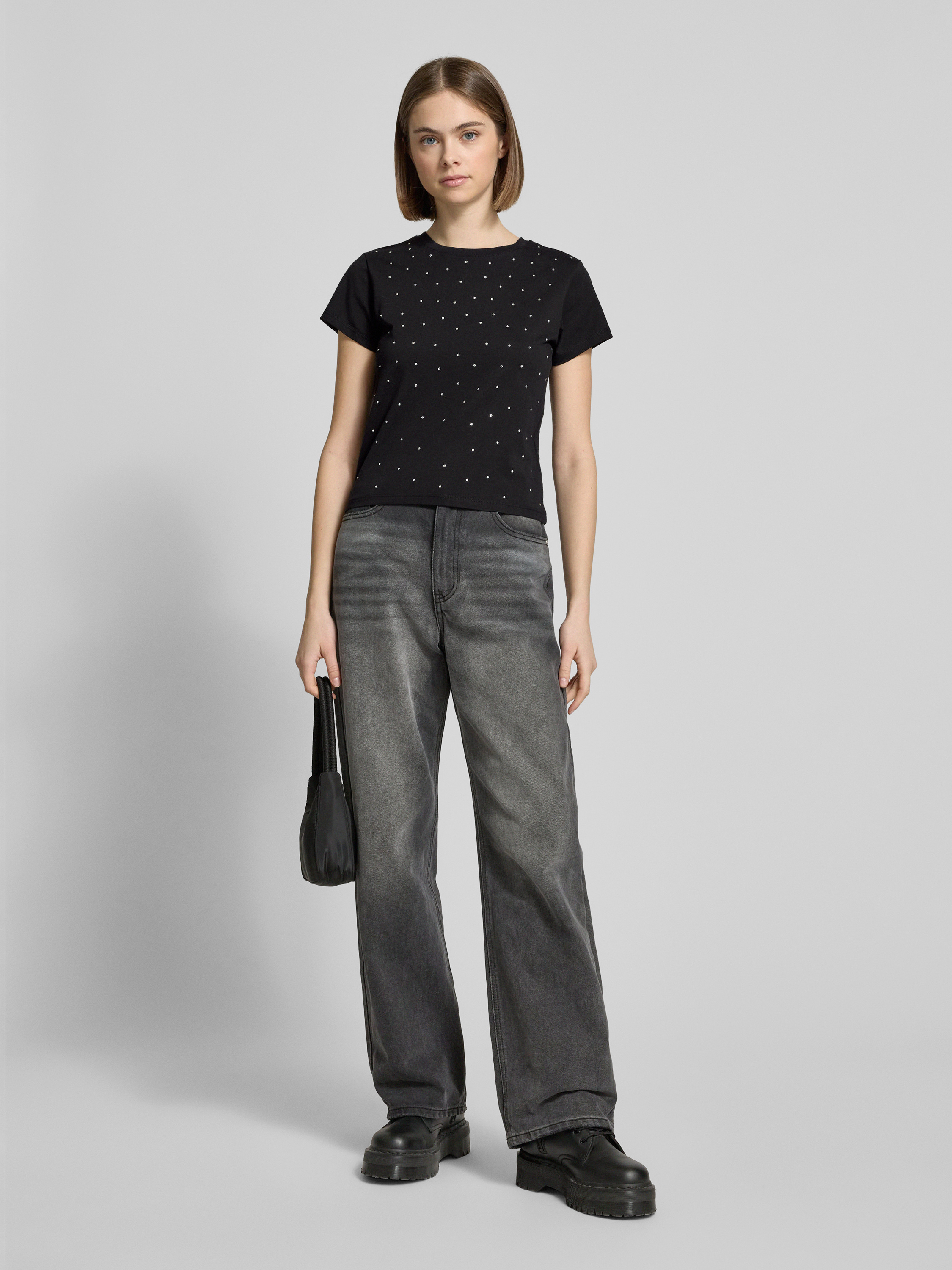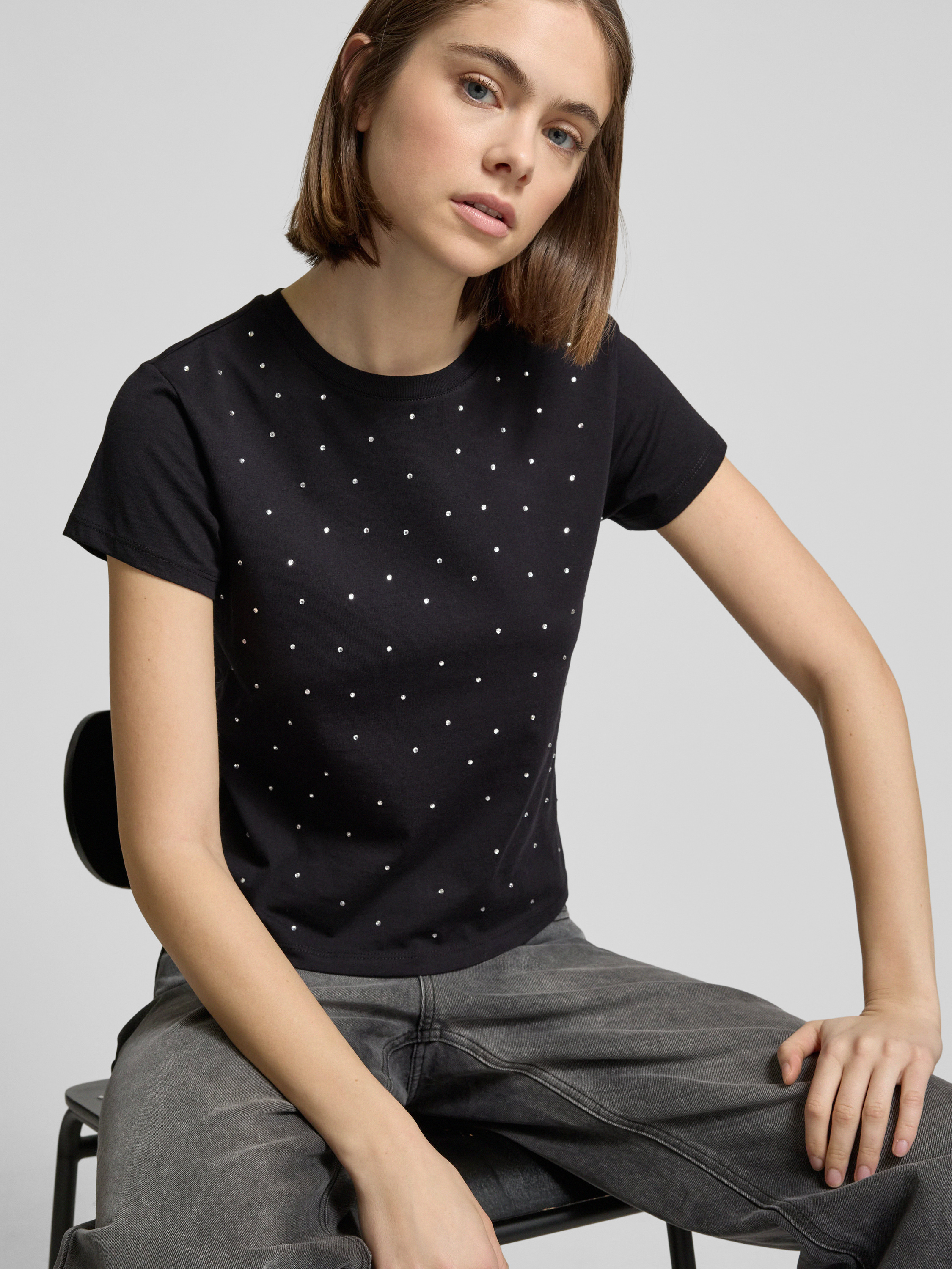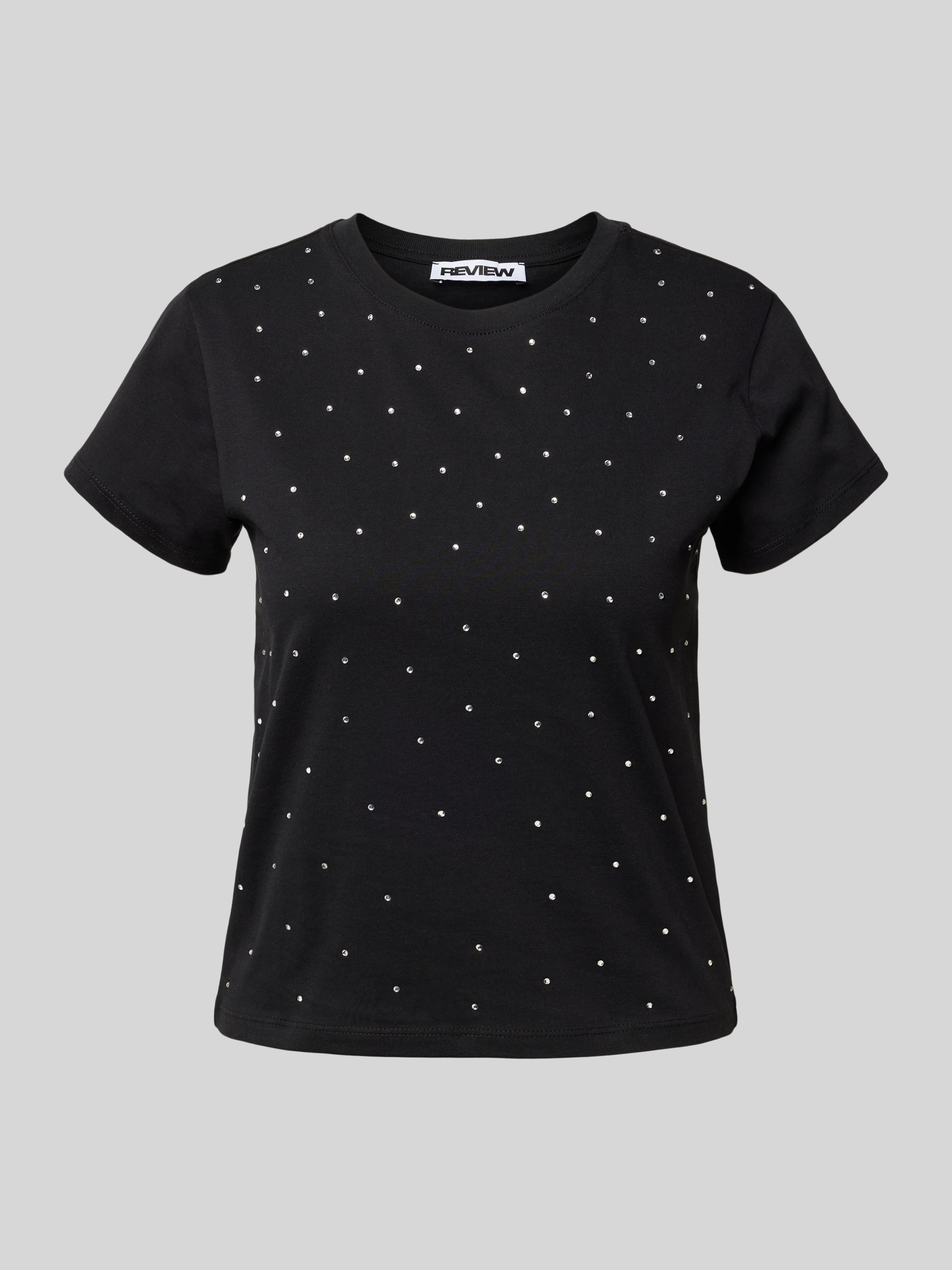 ReviewT-Shirt mit Ziersteinbesatz in black