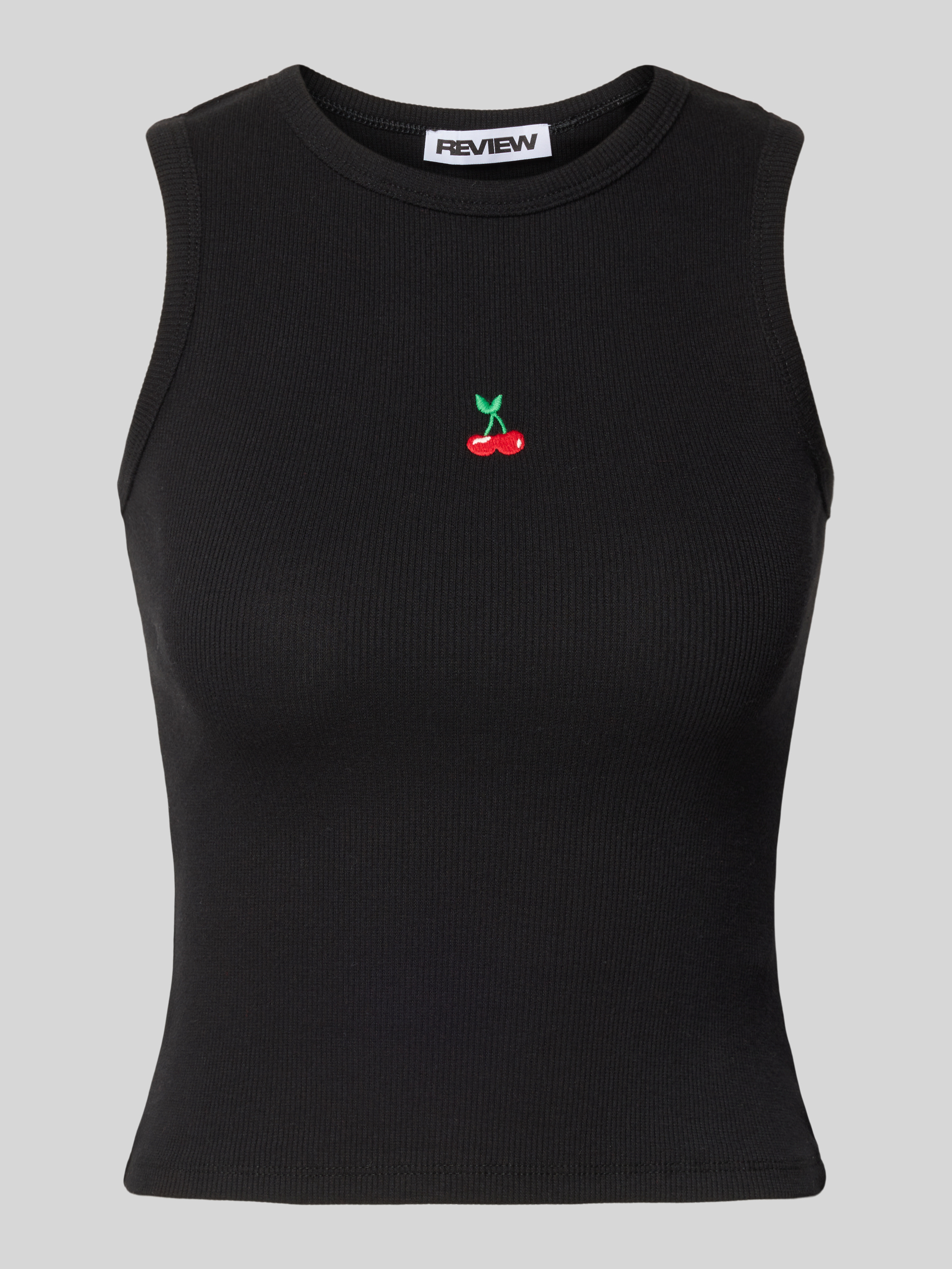Das Tanktop von REVIEW, gefertigt aus einem angenehmen Baumwoll-Mix, bietet durch seinen körpernahen Schnitt und den Rundhalsausschnitt eine bequeme Passform. Die feinen Motiv-Stitchings verleihen dem Oberteil eine besondere Note, während gerippte Abschlüsse das Design harmonisch abrunden.