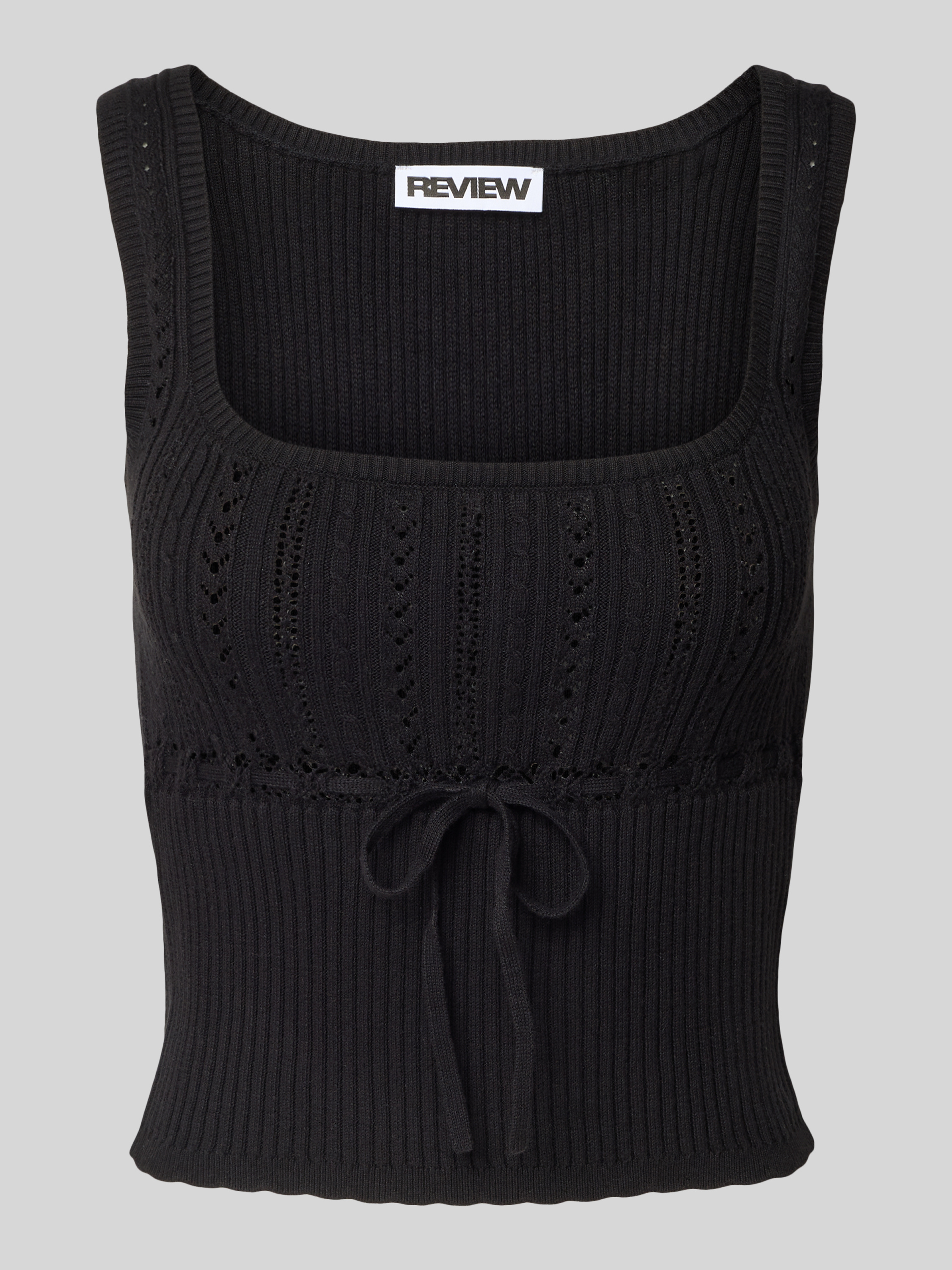 Das Tanktop von Review, gefertigt aus reiner Baumwolle, umschmeichelt durch seinen Slim Fit die Silhouette und setzt mit einem Square-Neck-Ausschnitt modische Akzente. Gerippte Abschlüsse und ein charmantes Schleifen-Detail runden das Design stilvoll ab. Ideal für vielseitige Kombinationen.
