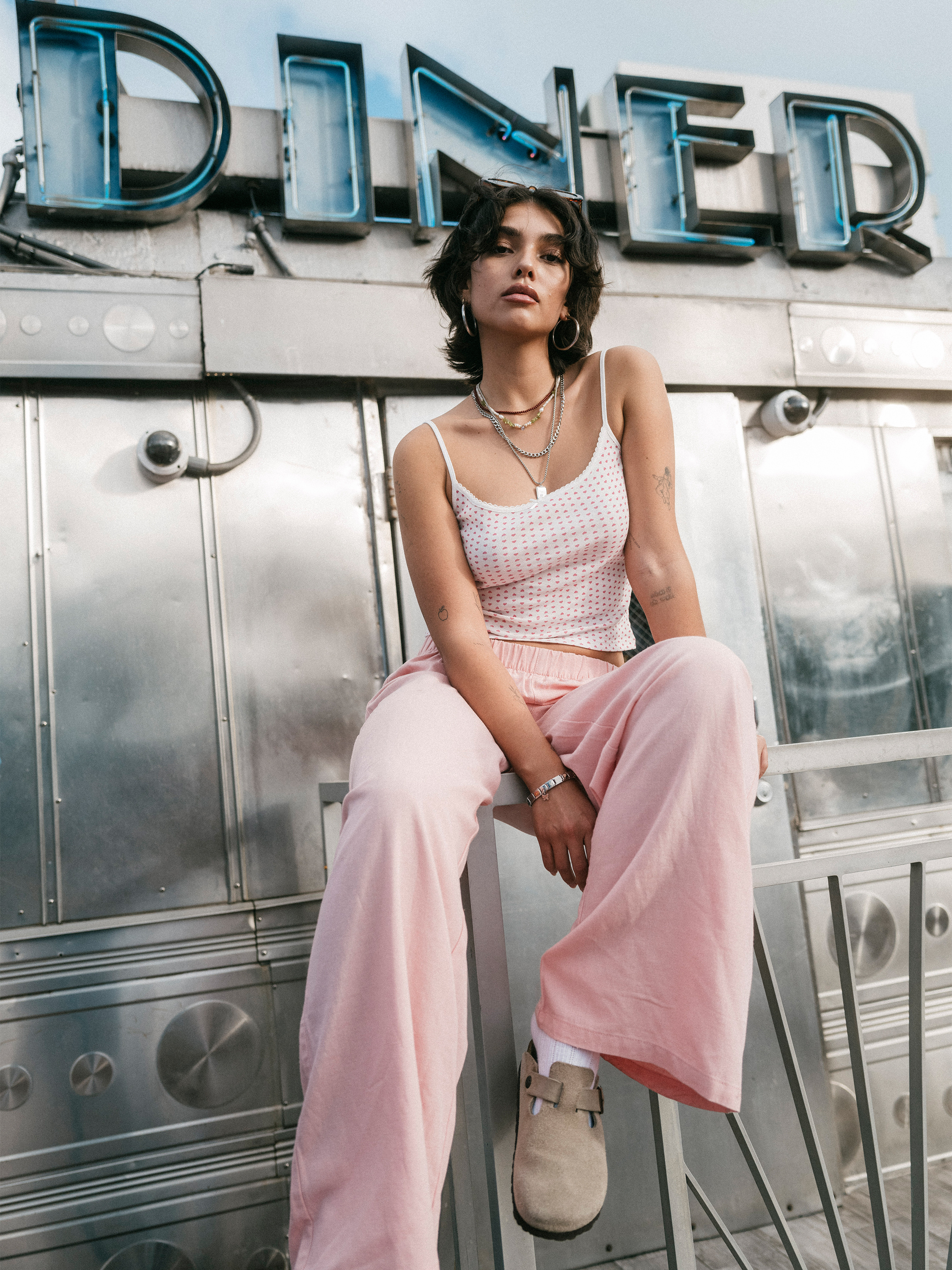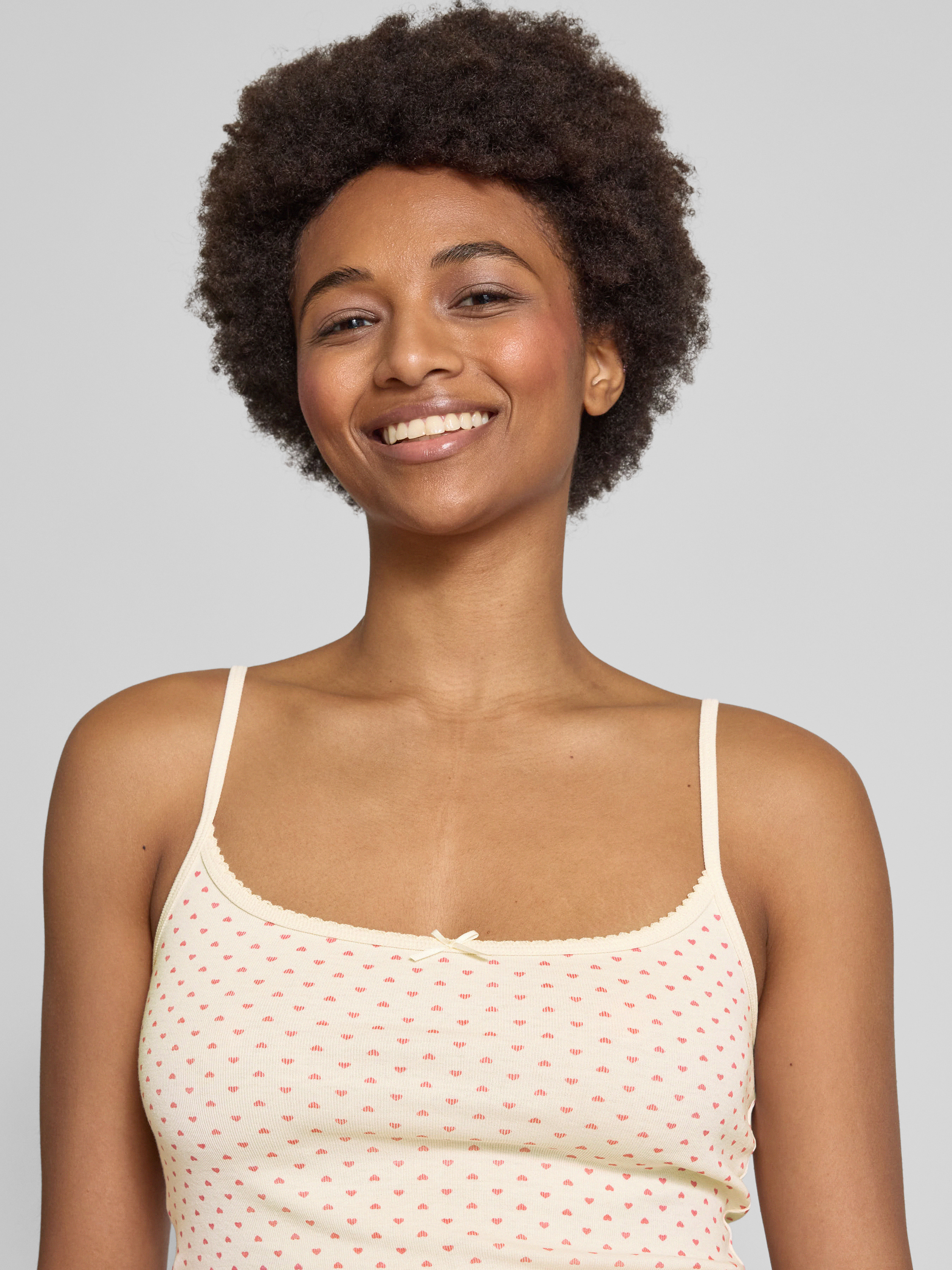 Das Trägertop von REVIEW aus reiner Baumwolle schmiegt sich durch seinen körpernahen Schnitt angenehm an. Die zarten Spaghettiträger und das Schleifen-Detail verleihen dem Oberteil eine subtile Verspieltheit. Es eignet sich hervorragend für warme Tage und vielseitige Kombinationen.
