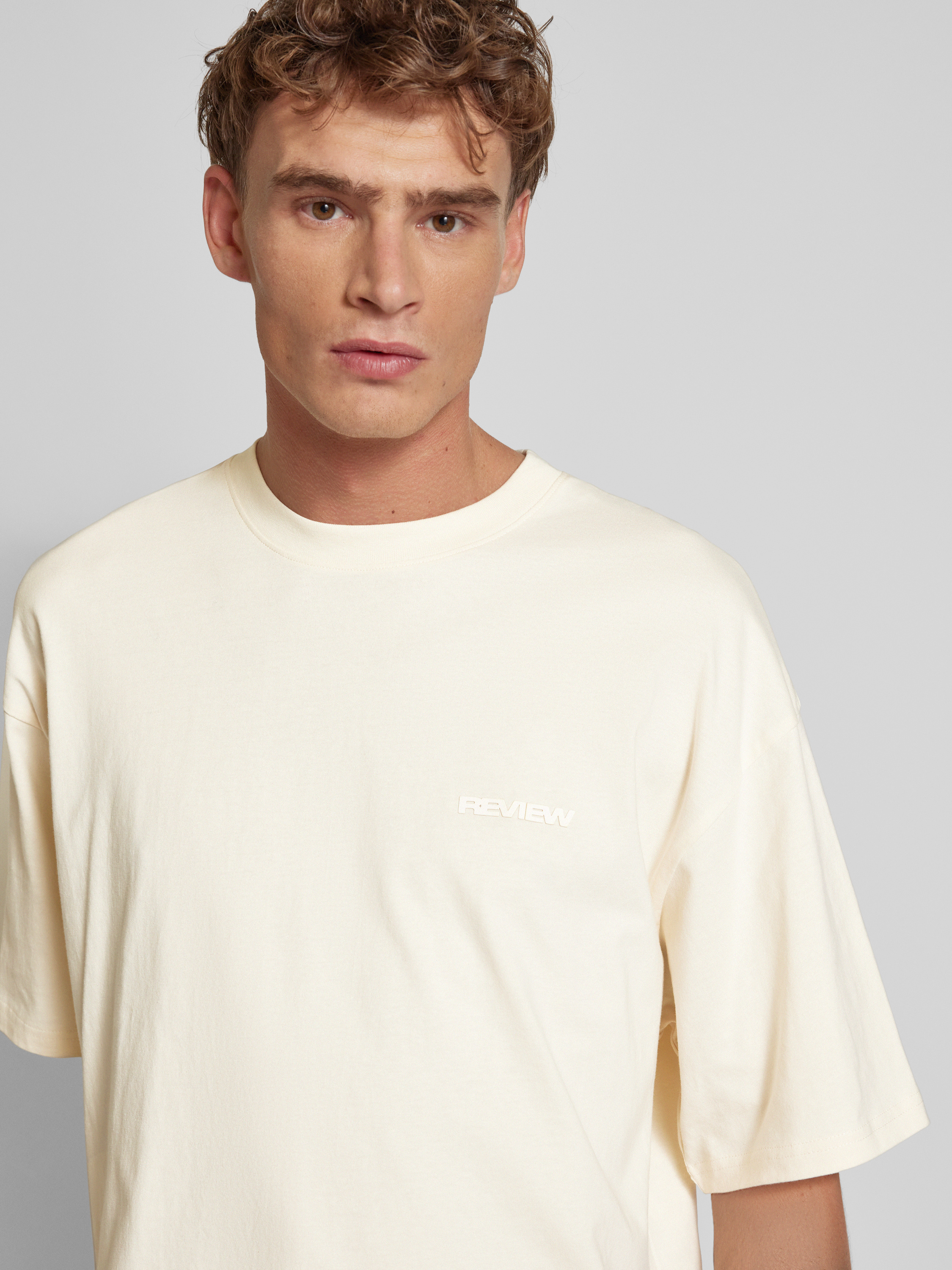 Das Oversized T-Shirt von REVIEW aus reiner Baumwolle bietet dank seines weiten Schnitts und des weichen Materials ein angenehmes Tragegefühl. Mit einem klassischen Rundhalsausschnitt kombiniert es Komfort und Stil. Der auffällige Label-Print verleiht jedem Outfit eine individuelle Note.