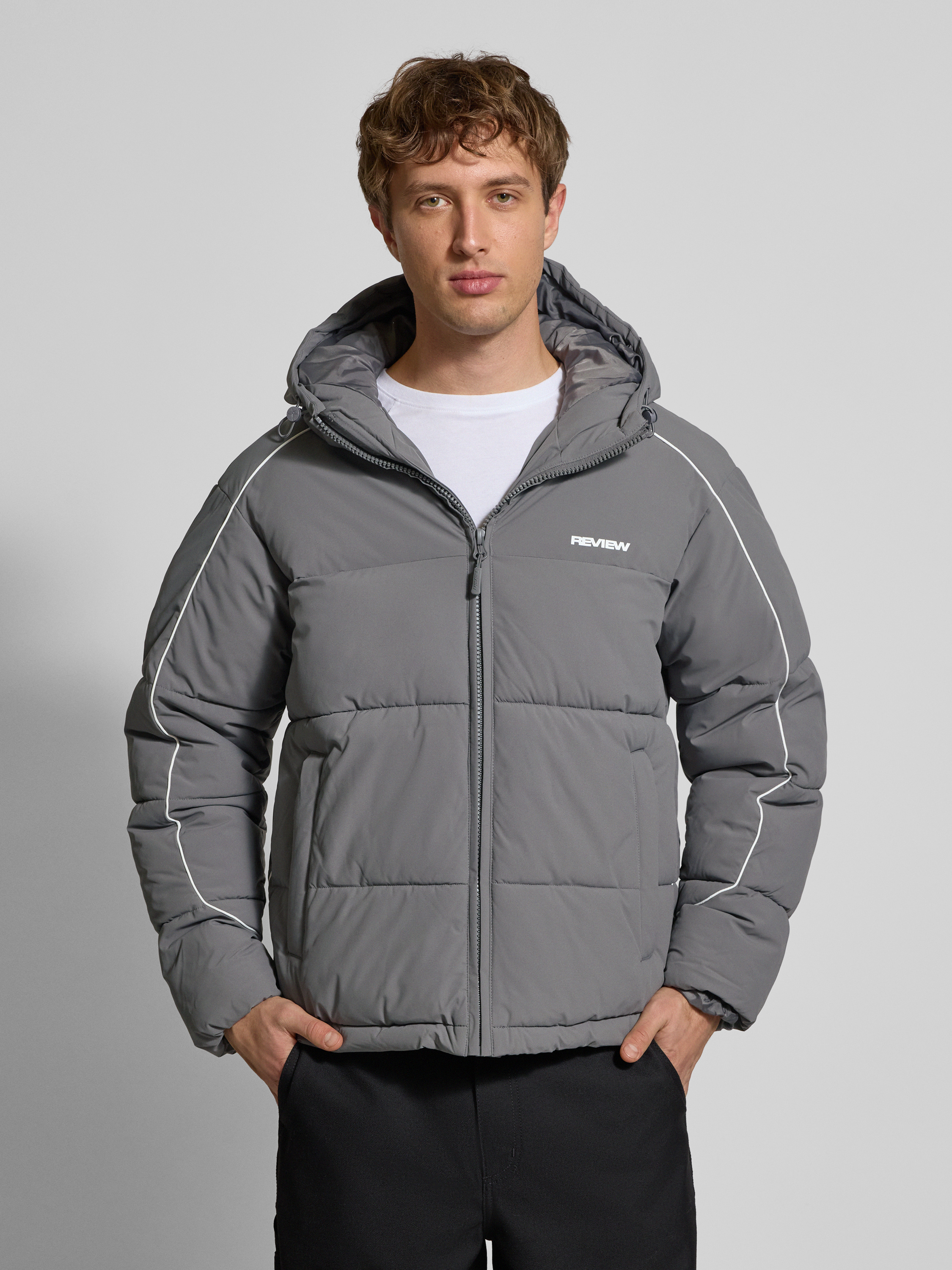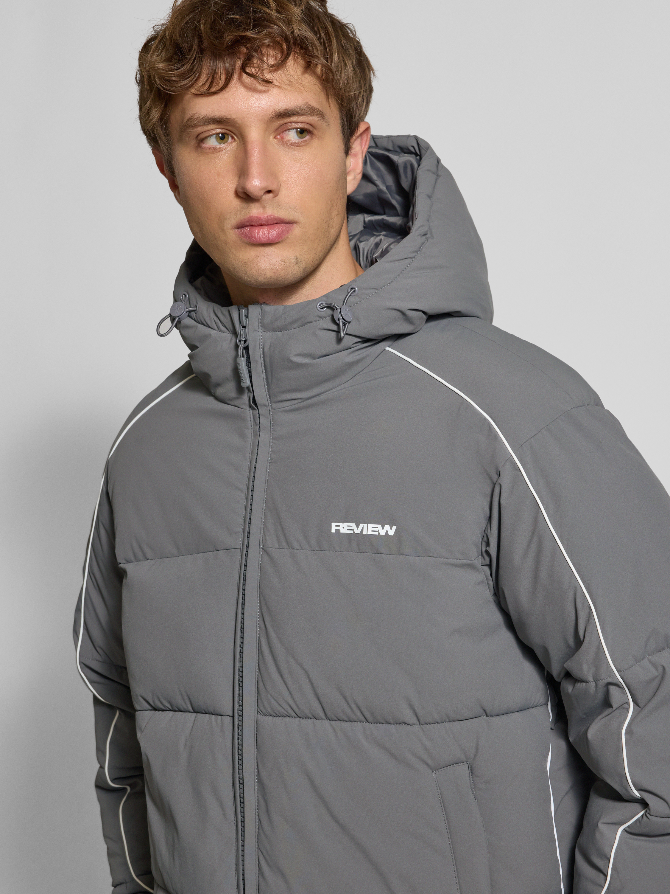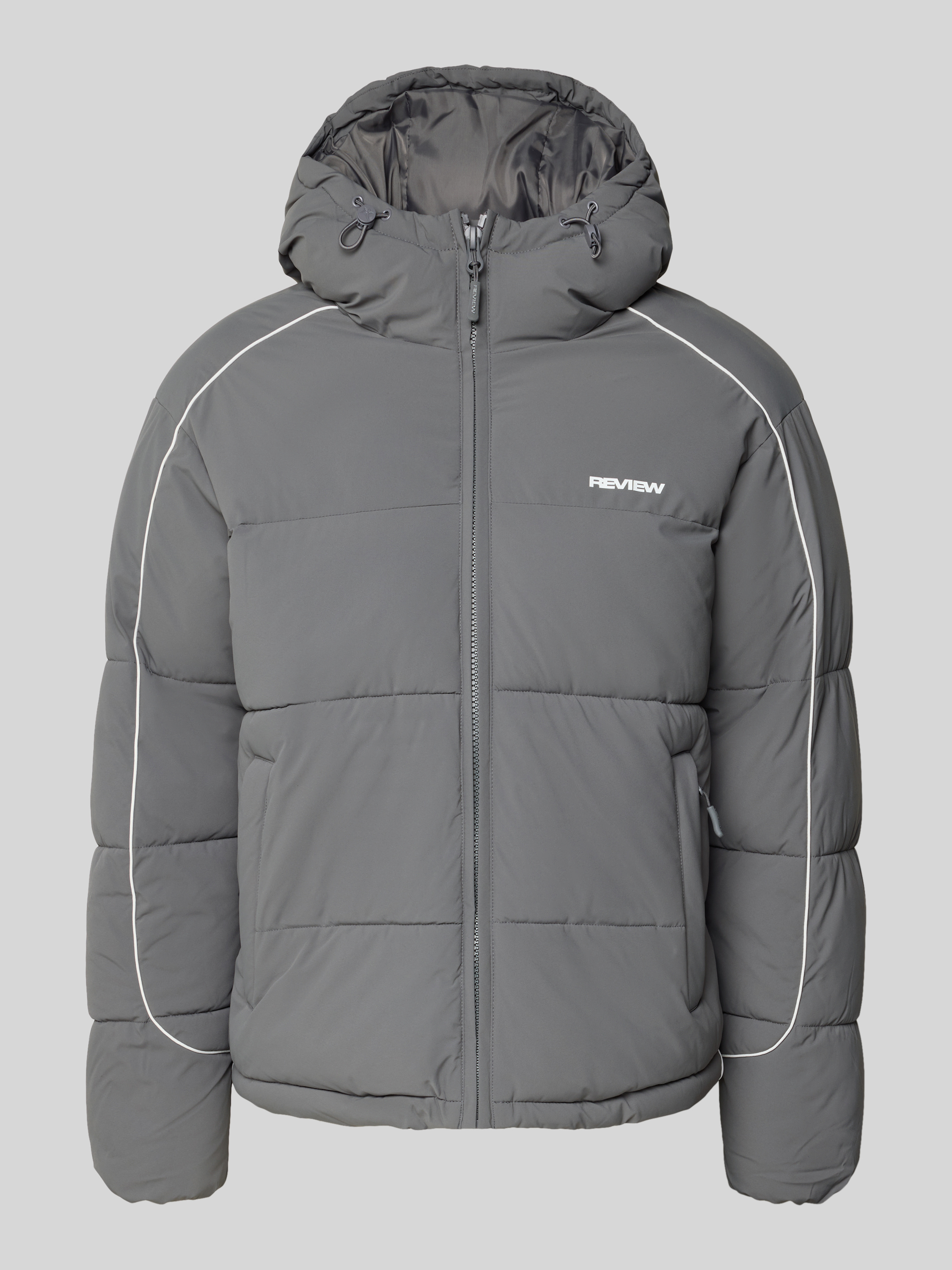 Die Herren Steppjacke von Review zeigt sich in Regular Fit und sorgt durch ihre praktische Kapuze für zusätzlichen Schutz an kühlen Tagen. Ihr moderner Schnitt verleiht Bewegungsfreiheit, während der dezente Label-Print einen sportlichen Akzent setzt. Dank ihrer durchdachten Gestaltung eignet sich diese Jacke besonders für wechselhaftes Wetter.