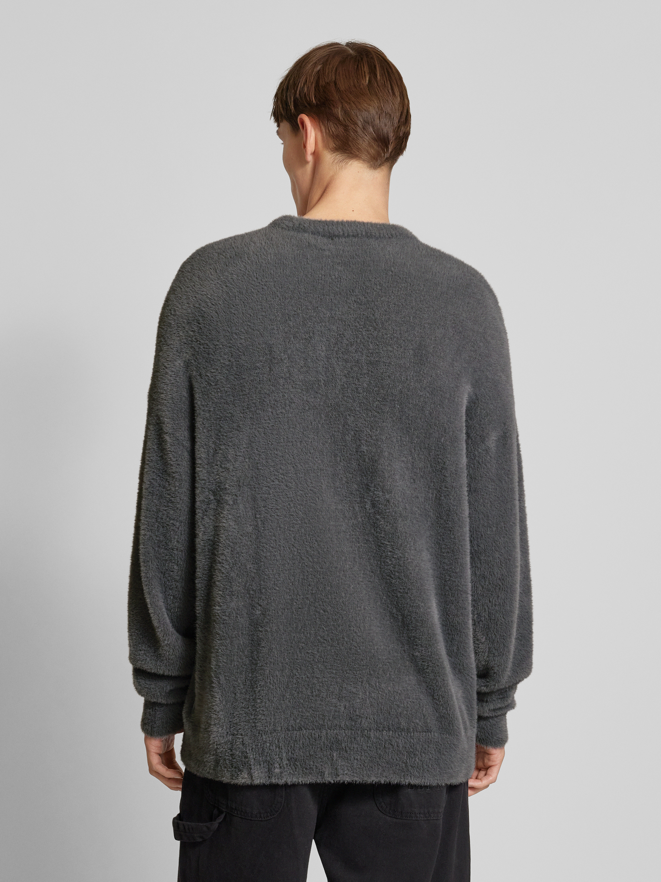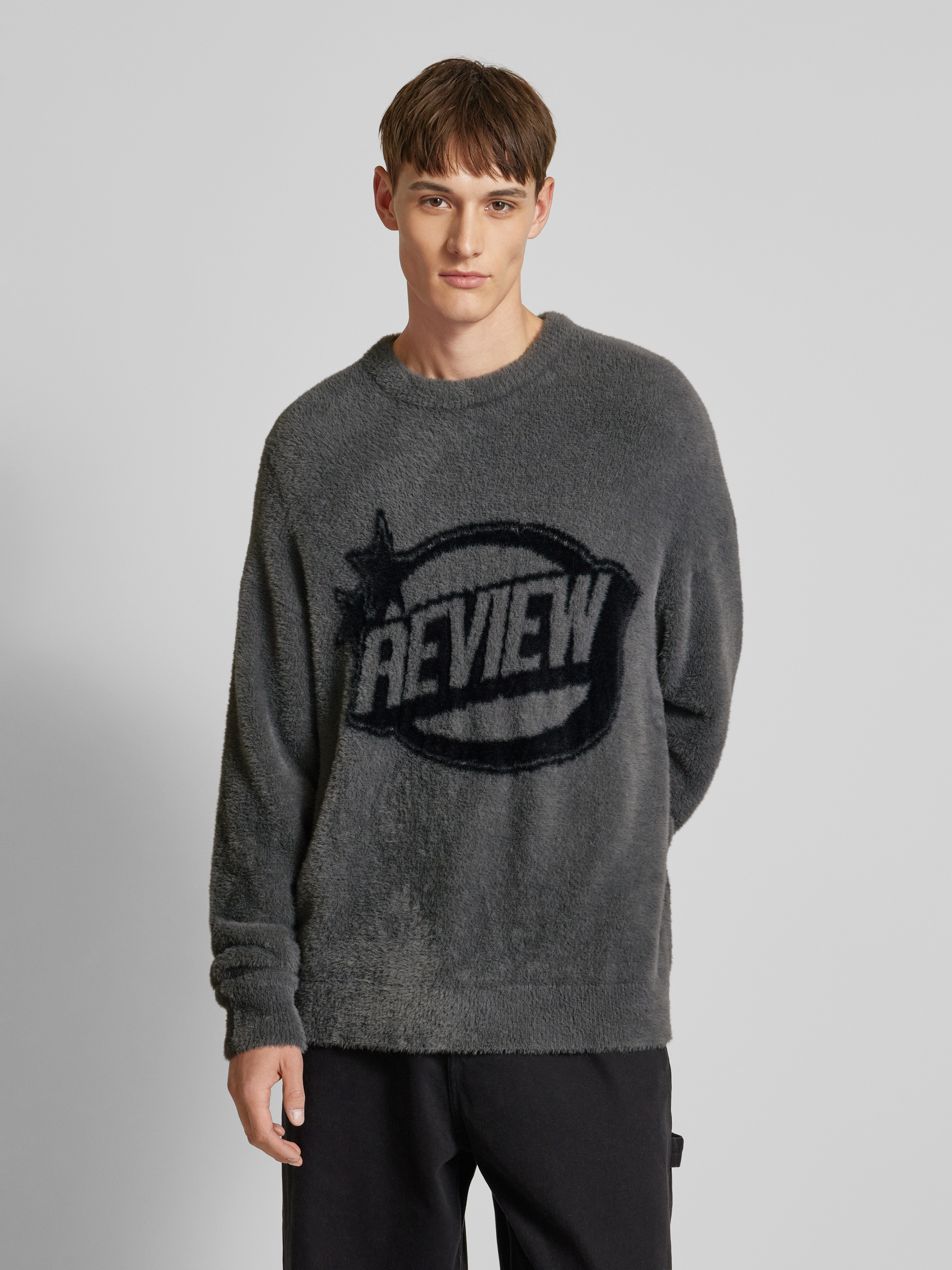 REVIEWStrickpullover in Kunstfell-Optik in dunkelgrau