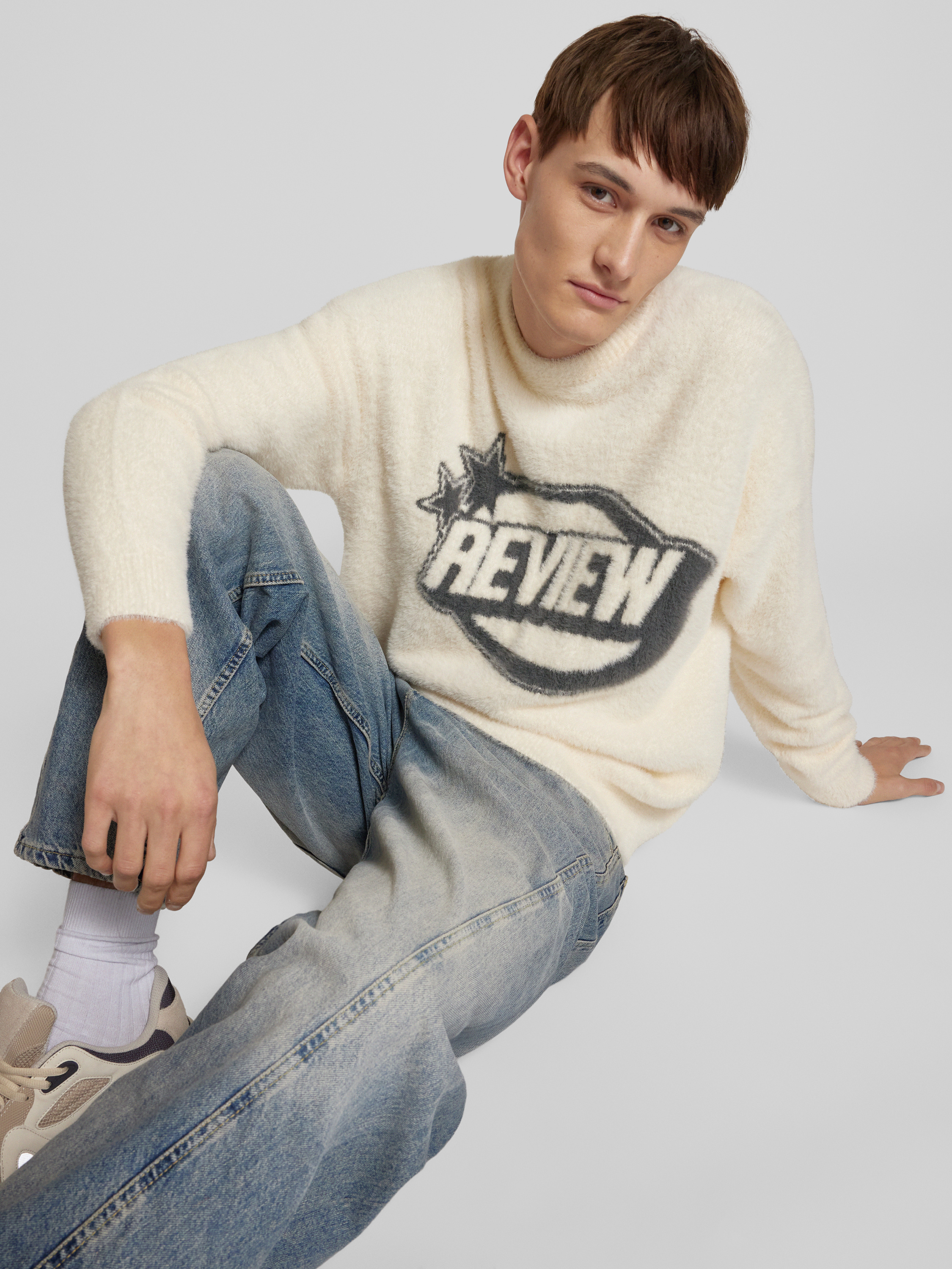 Der Strickpullover von REVIEW vereint stilvolle Kunstfell-Optik mit einem geraden Schnitt und einem klassischen Rundhalsausschnitt, was für angenehmen Tragekomfort sorgt. Dank der gerippten Abschlüsse bleibt die Form erhalten, während das dezente Label-Stitching dem Design eine besondere Note verleiht.