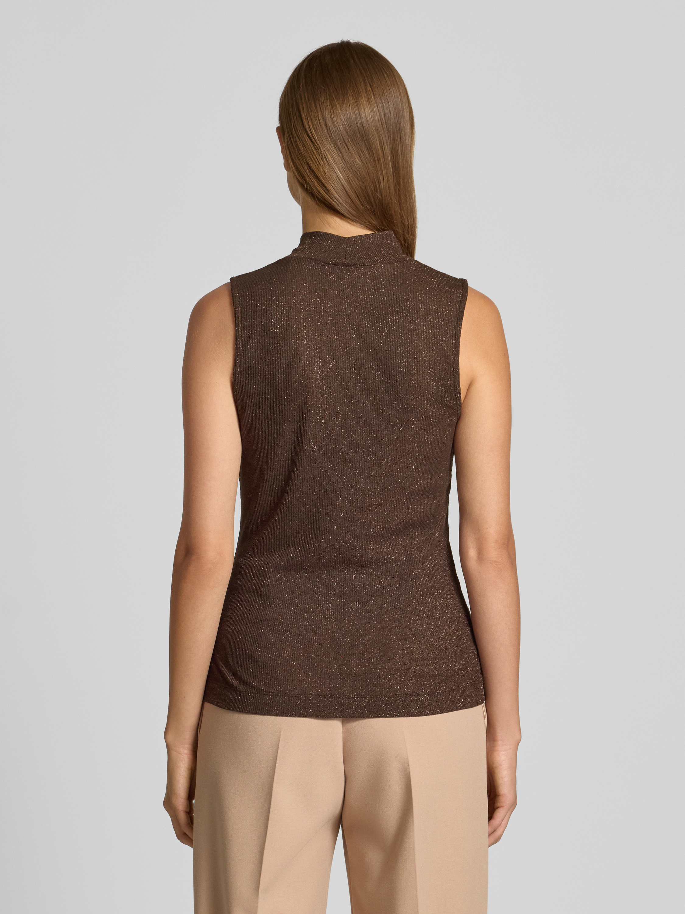 Rich & RoyalSchimmerndes Top aus Viskose-Mix mit Stehkragen in dunkelbraun