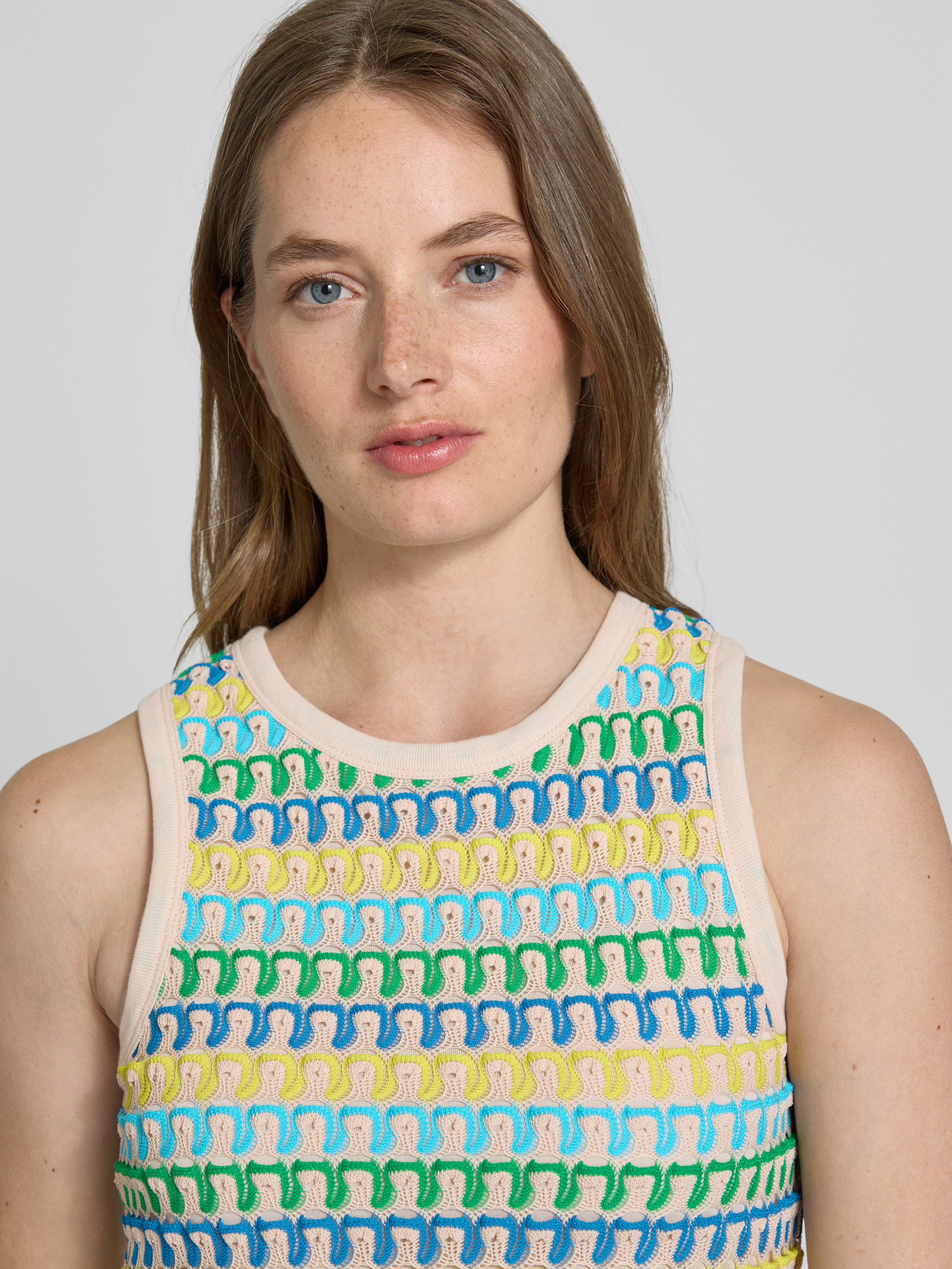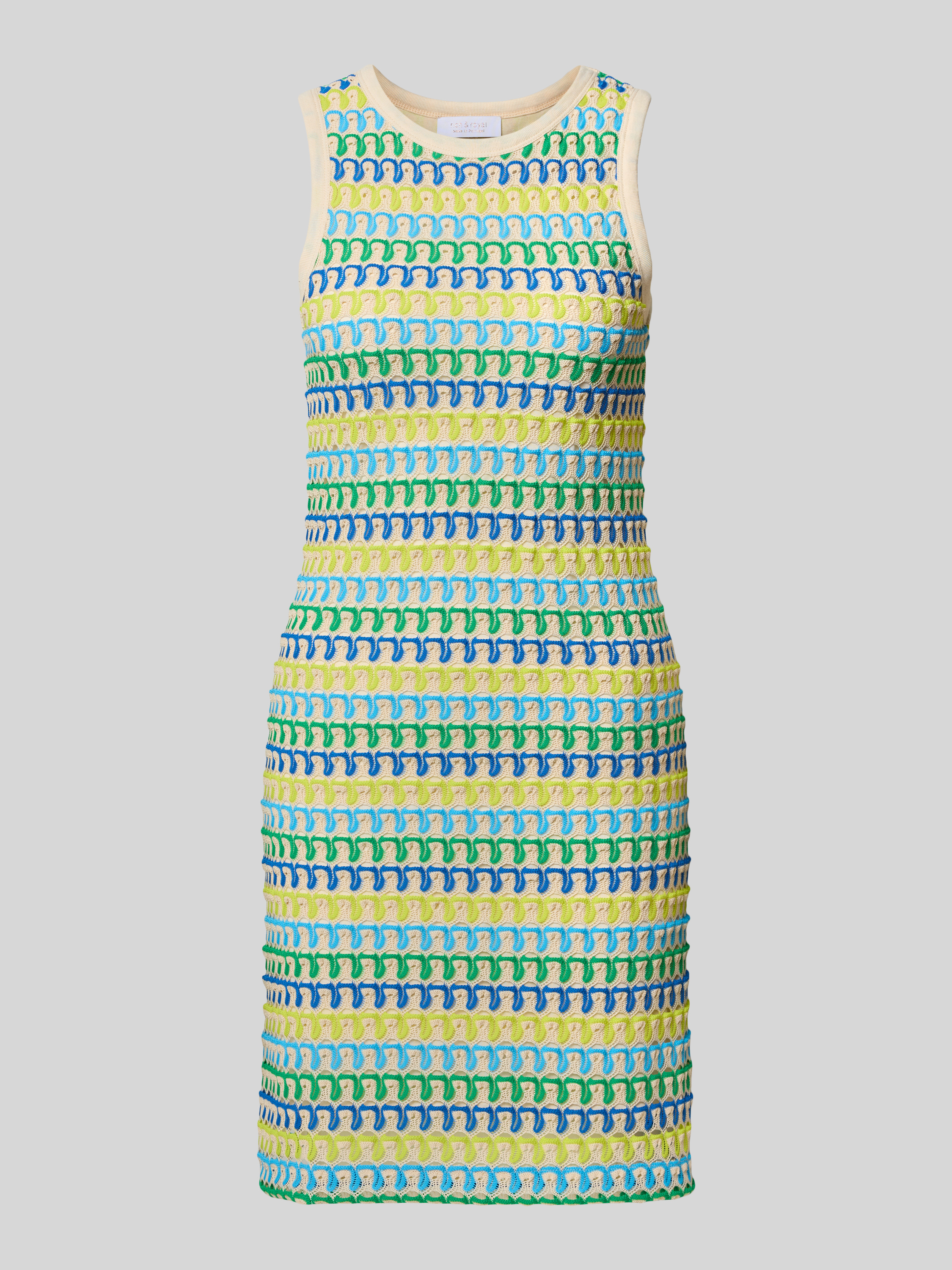Das Strickkleid von Rich & Royal umschmeichelt die Figur mit seinem körpernahen Schnitt und schafft durch das ärmellose Design eine leichte und luftige Silhouette. Der Rundhalsausschnitt verleiht dem Minikleid eine zeitlose Eleganz, während die feine Strickqualität angenehmen Tragekomfort bietet. Ideal für viele Anlässe.