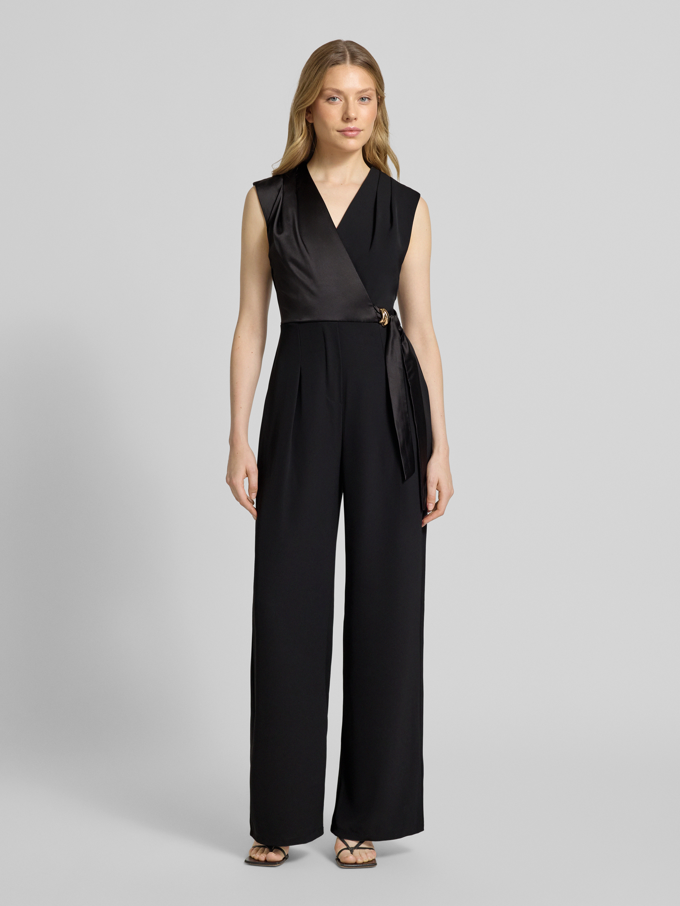 Der Damen Jumpsuit von Rinascimento aus Satin schmiegt sich durch die körpernahe Passform angenehm an und lässt Bewegungsfreiheit zu. Die Wickel-Optik mit V-Ausschnitt sorgt für eine moderne Silhouette, während eine dezente Zier-Applikation das Design abwechslungsreich akzentuiert. Besonders geeignet für vielfältige Anlässe.