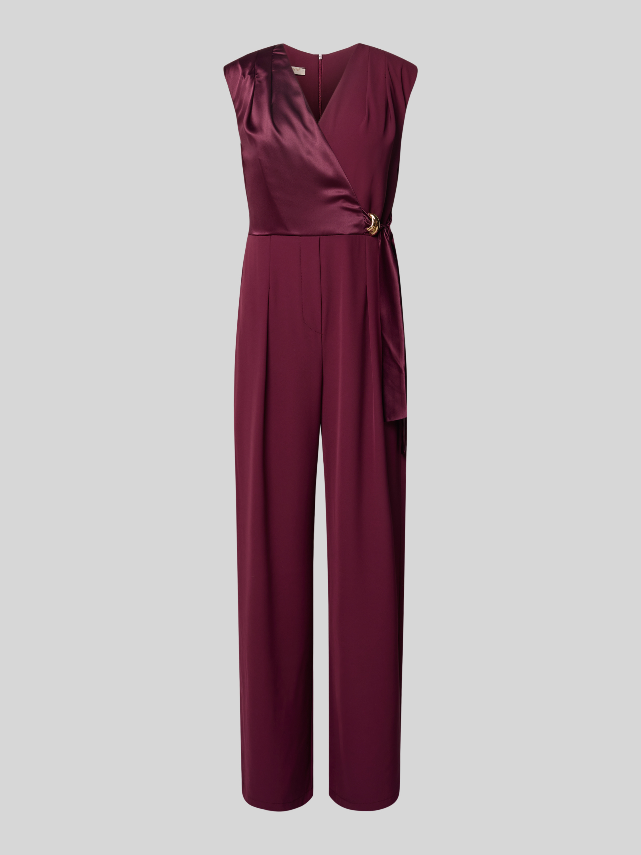 Der Damen Jumpsuit von Rinascimento aus Satin schmiegt sich durch die körpernahe Passform angenehm an und lässt Bewegungsfreiheit zu. Die Wickel-Optik mit V-Ausschnitt sorgt für eine moderne Silhouette, während eine dezente Zier-Applikation das Design abwechslungsreich akzentuiert. Besonders geeignet für vielfältige Anlässe.
