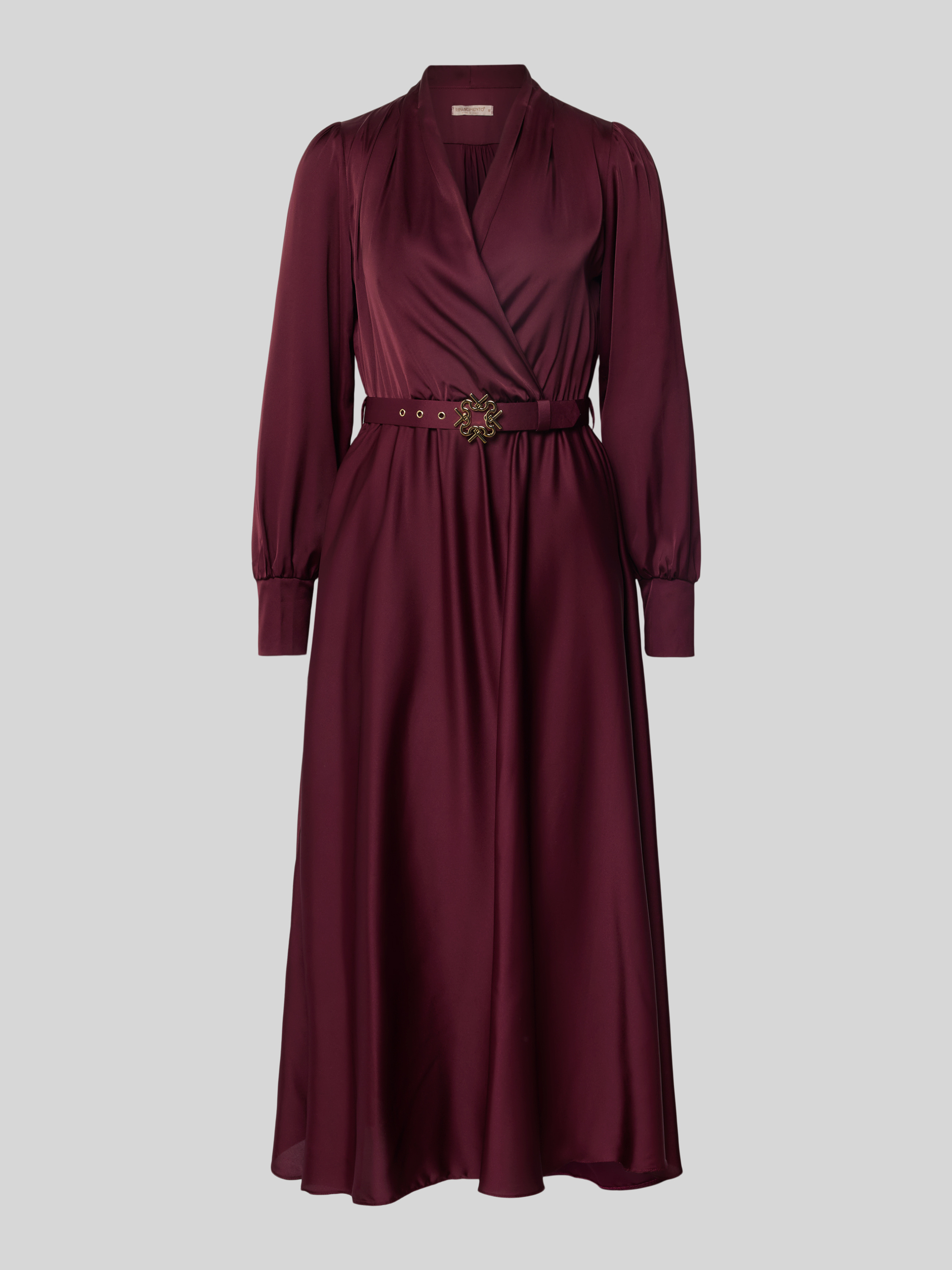 Das Rinascimento Regular Fit Cocktailkleid zeigt sich in Wickel-Optik mit langem Arm und breiten Abschlüssen. Satin verleiht dem Modell einen dezenten Glanz, während der abnehmbare Gürtel vielseitige Stylingmöglichkeiten eröffnet. Durch den V-Ausschnitt entsteht eine feminine, angenehm fallende Silhouette.