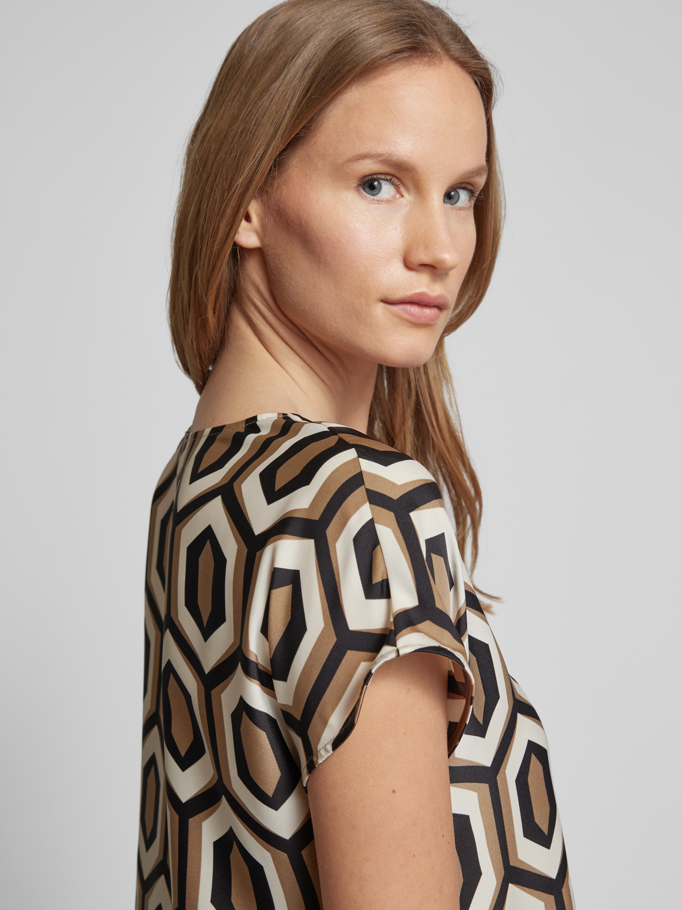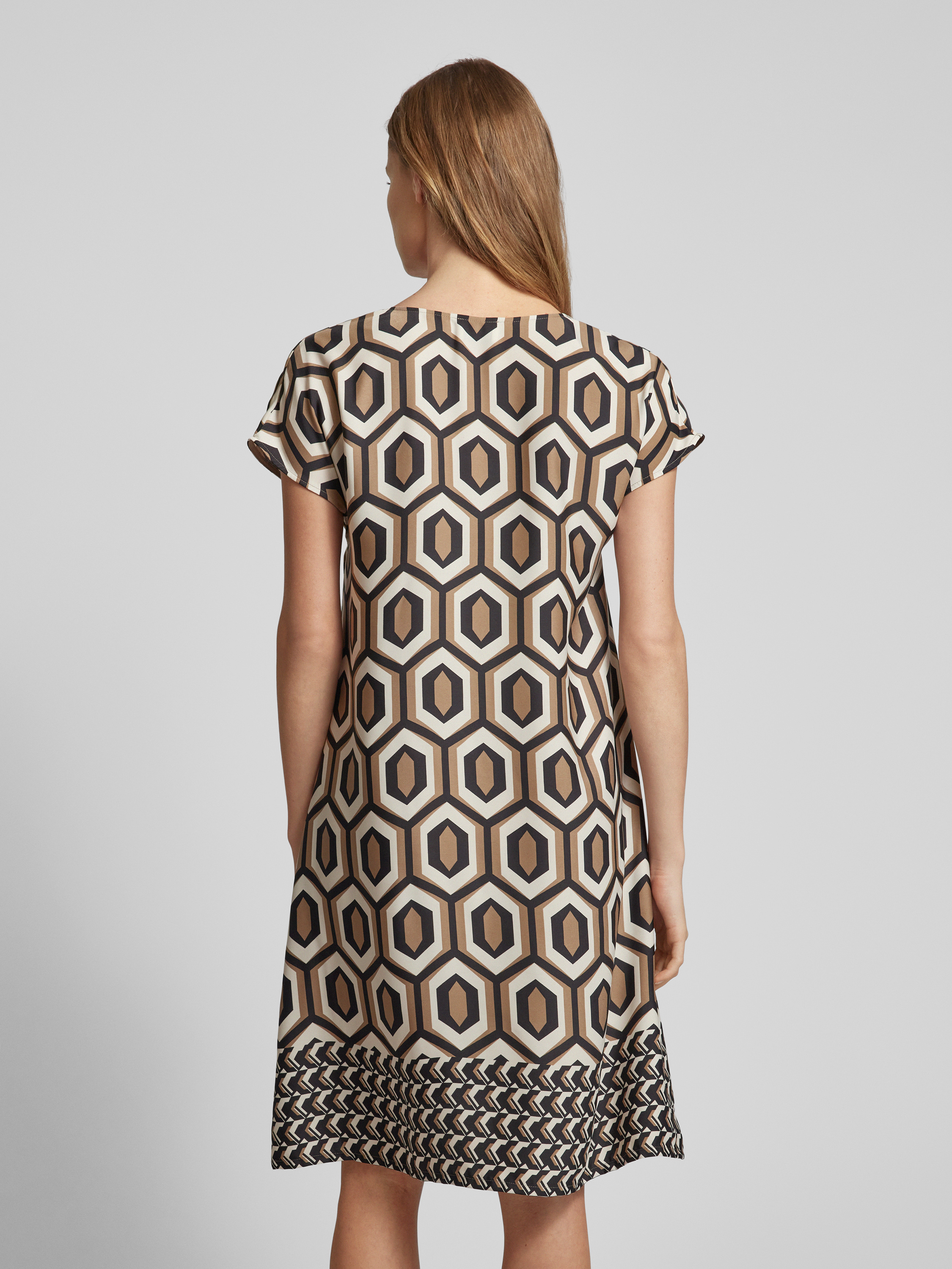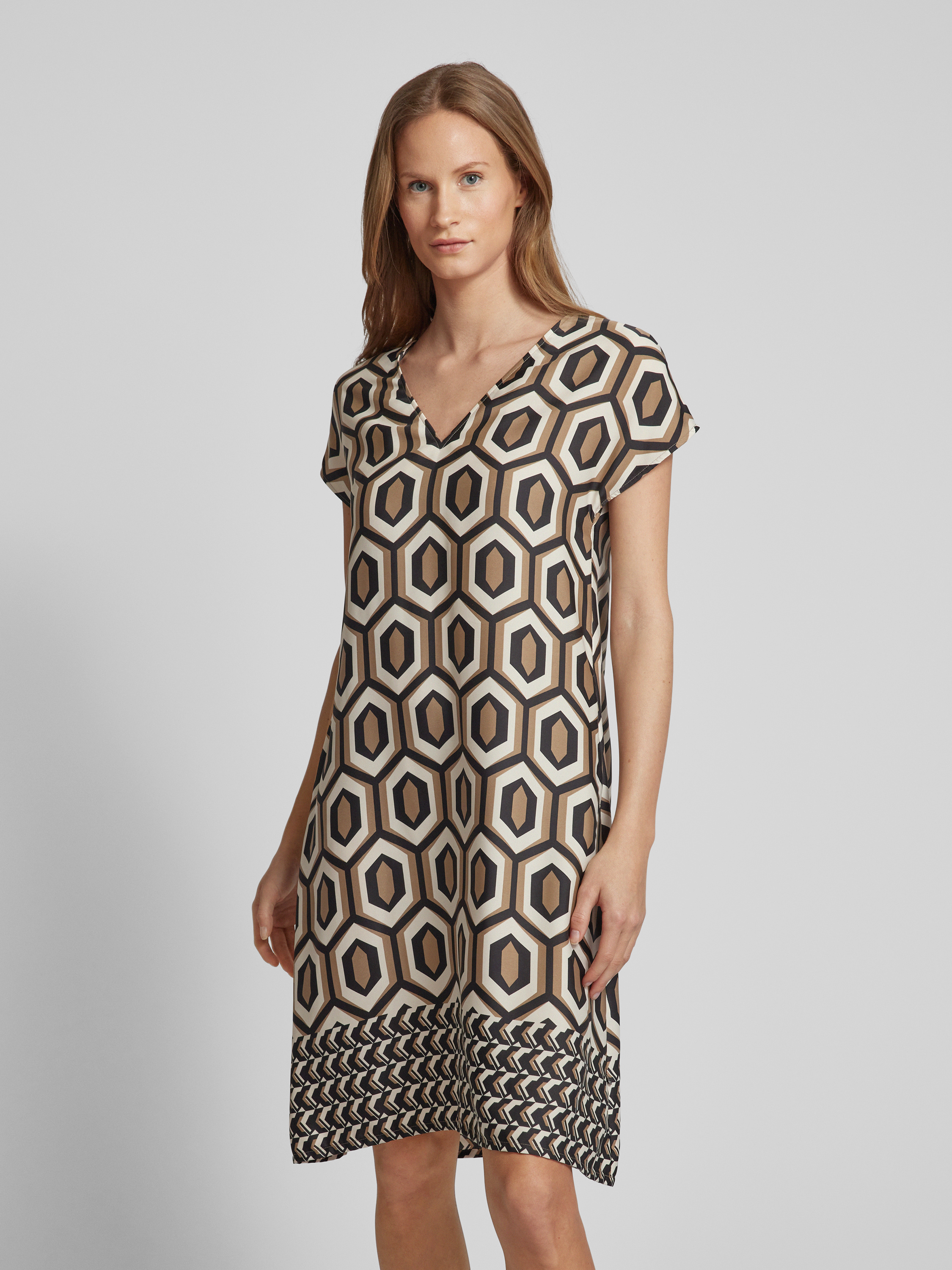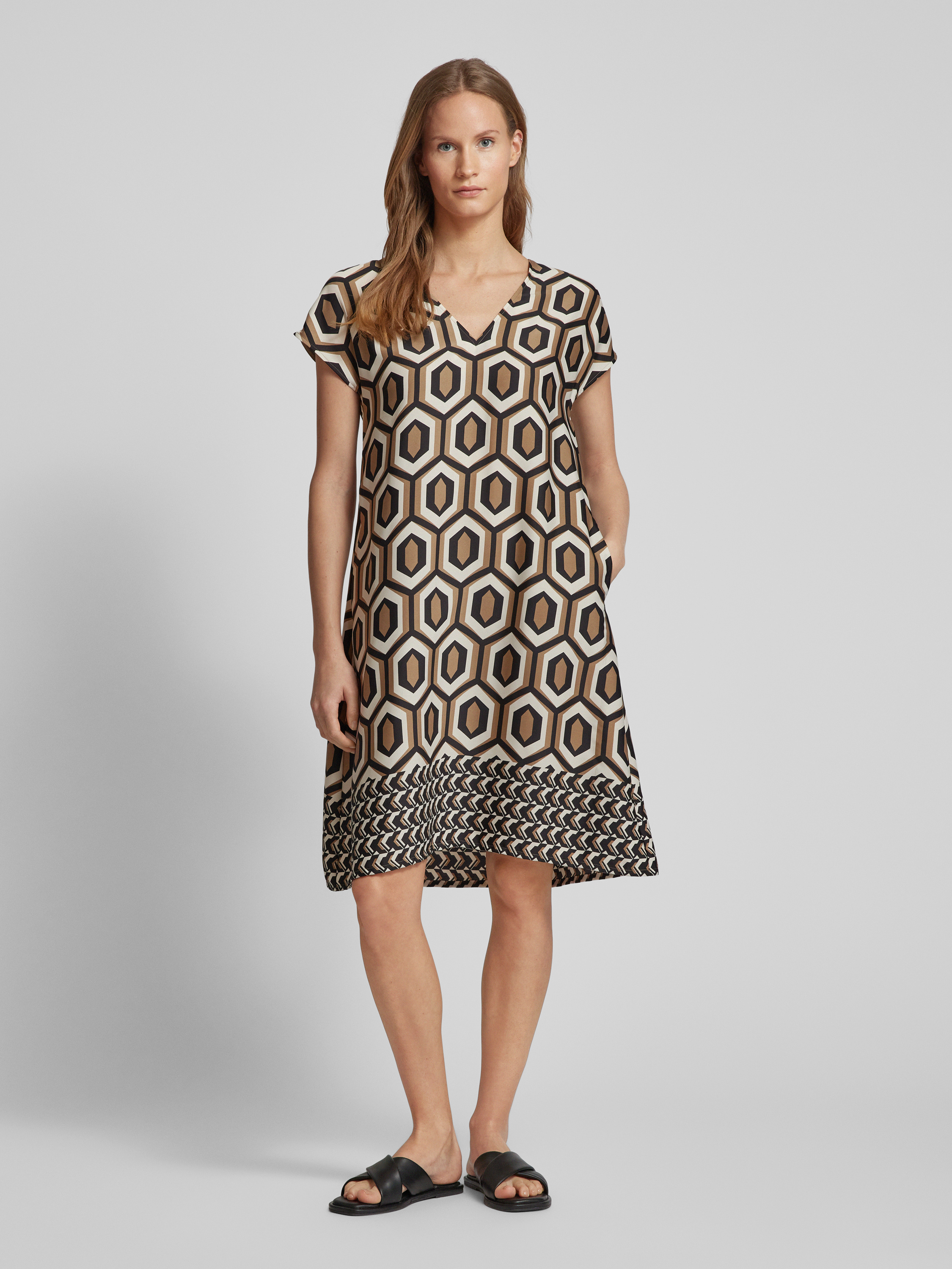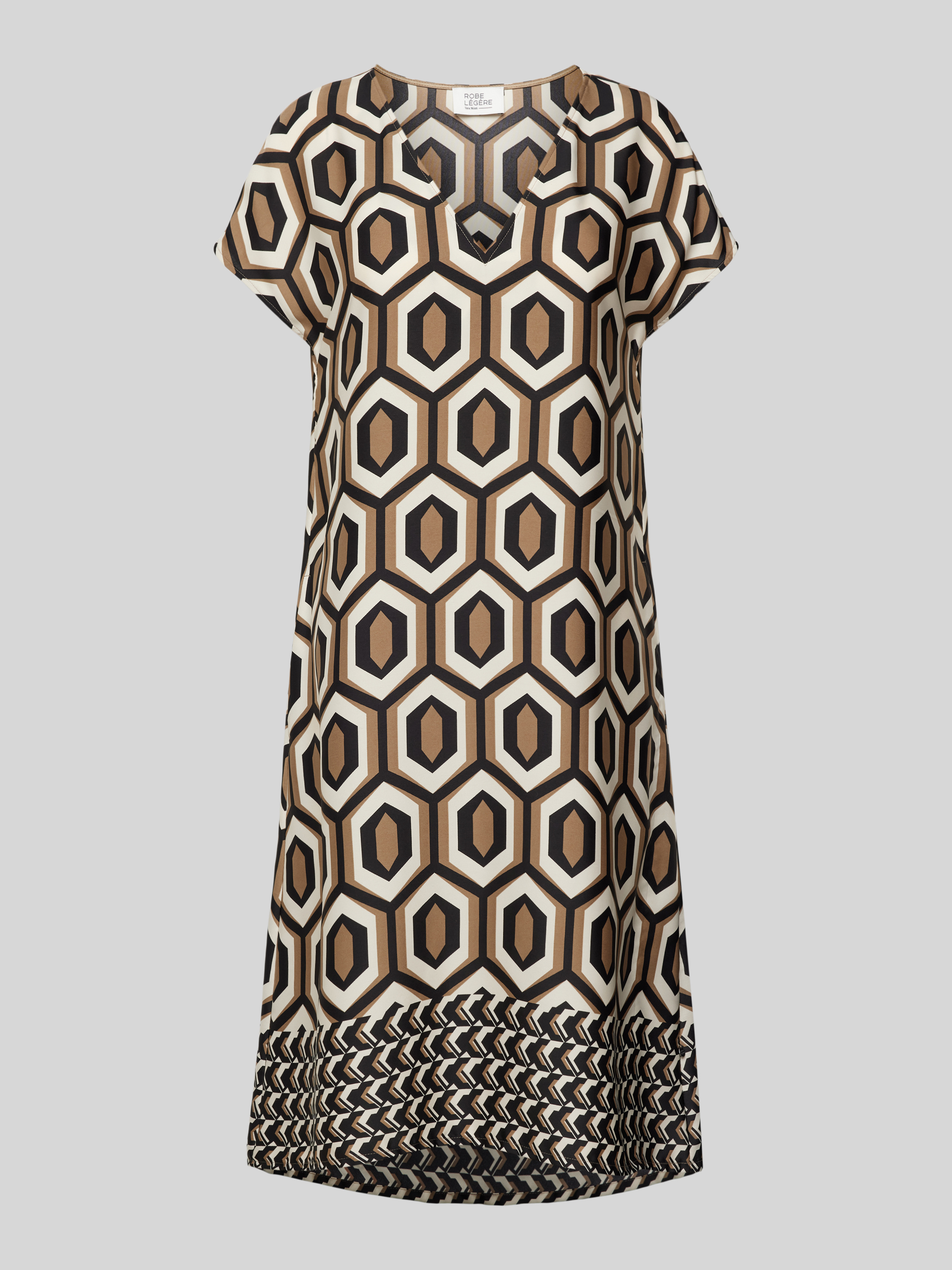 ROBE LÉGÈREKnielanges Kleid mit grafischem Muster in camel