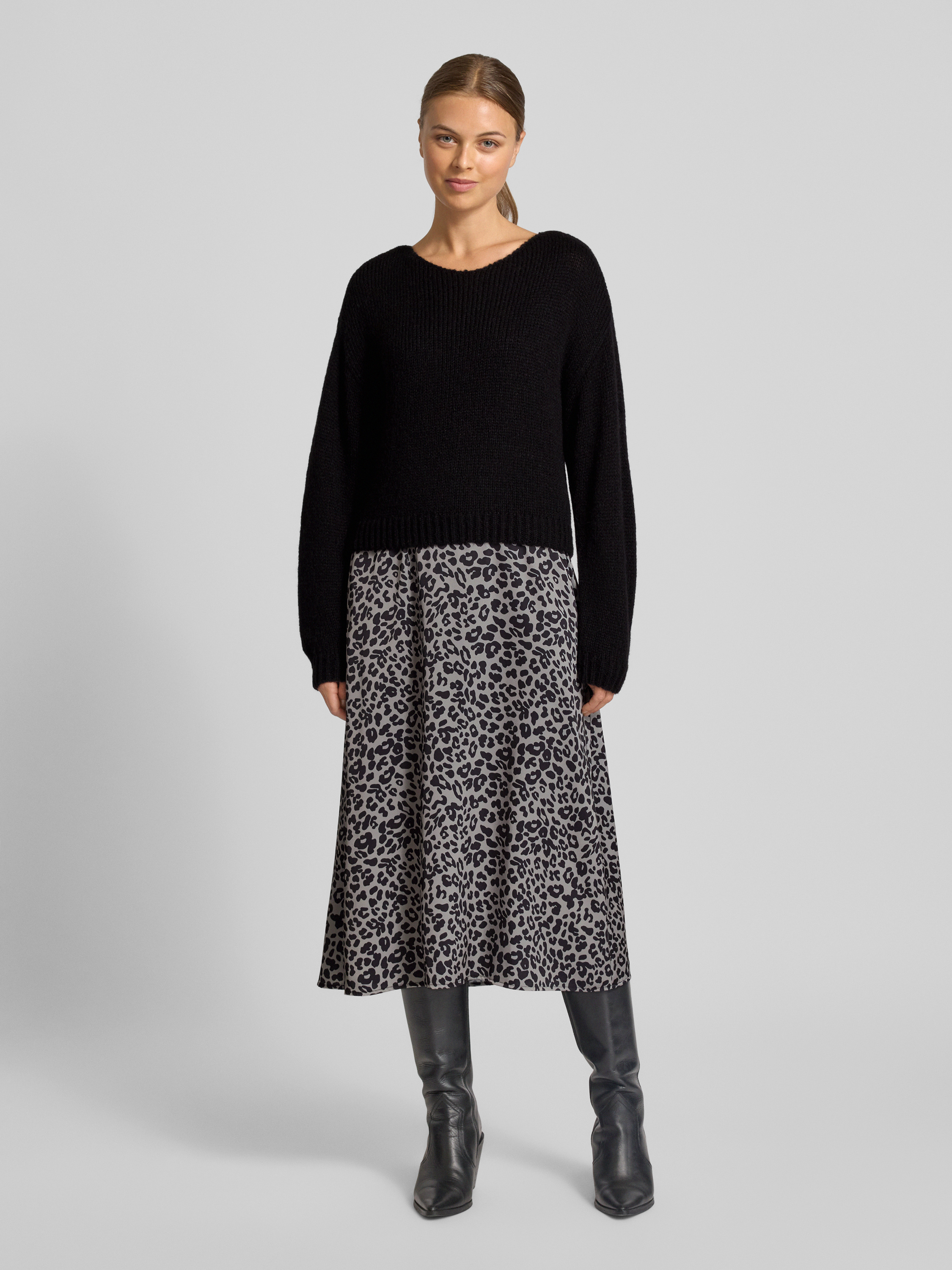Das taillierte Strickkleid mit Rundhalsausschnitt von ROBE LÉGÈRE bringt durch die ausgestellte Rockpartie angenehme Bewegungsfreiheit in den Alltag. Die Midilänge sorgt für eine ausgewogene Silhouette, während gerippte Abschlüsse das Gesamtbild dezent abrunden. So eignet es sich vielseitig für verschiedene Anlässe.