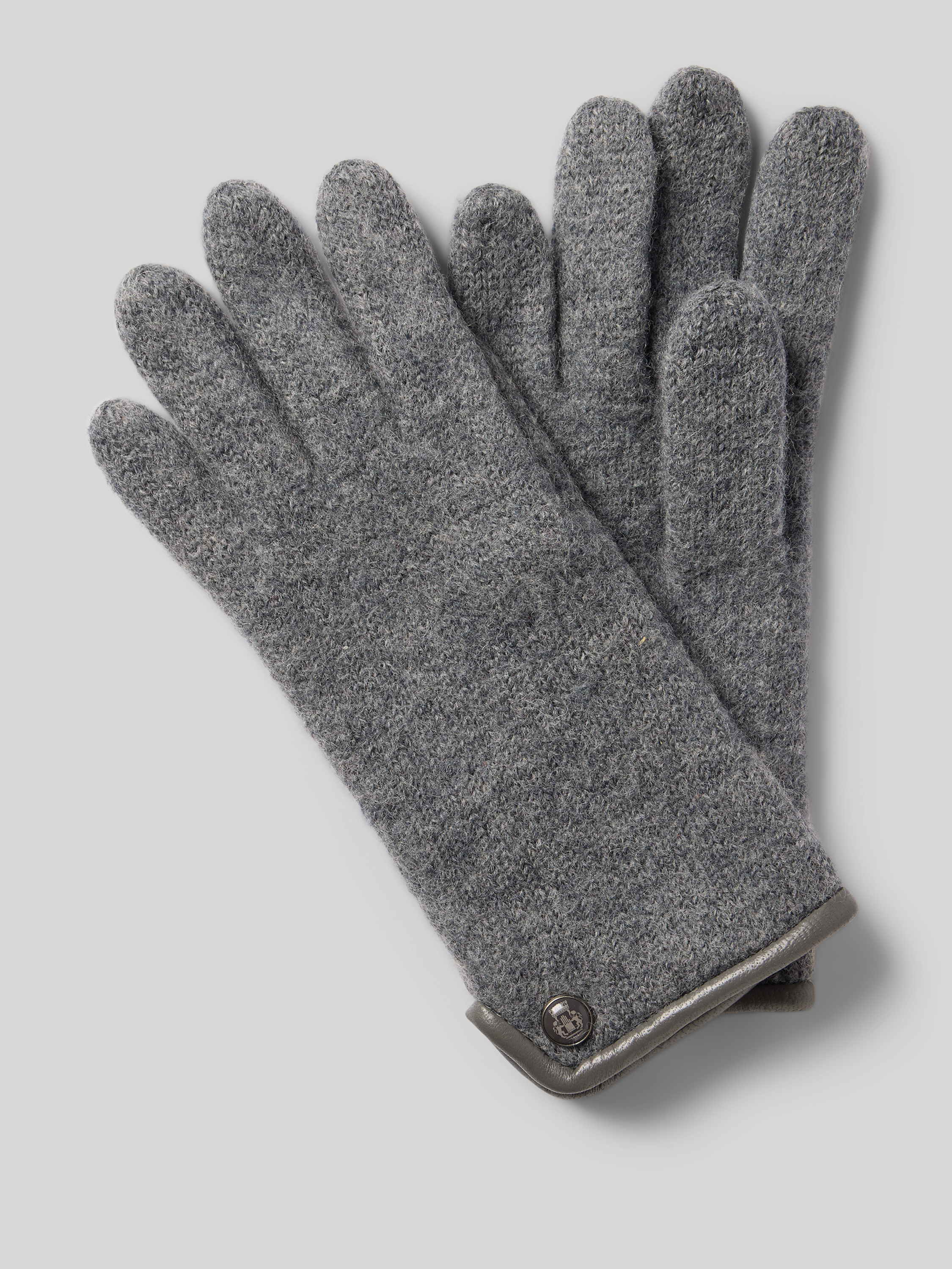 RoecklWalkhandschuhe aus Schurwolle mit Wappen Emblem in mittelgrau melange