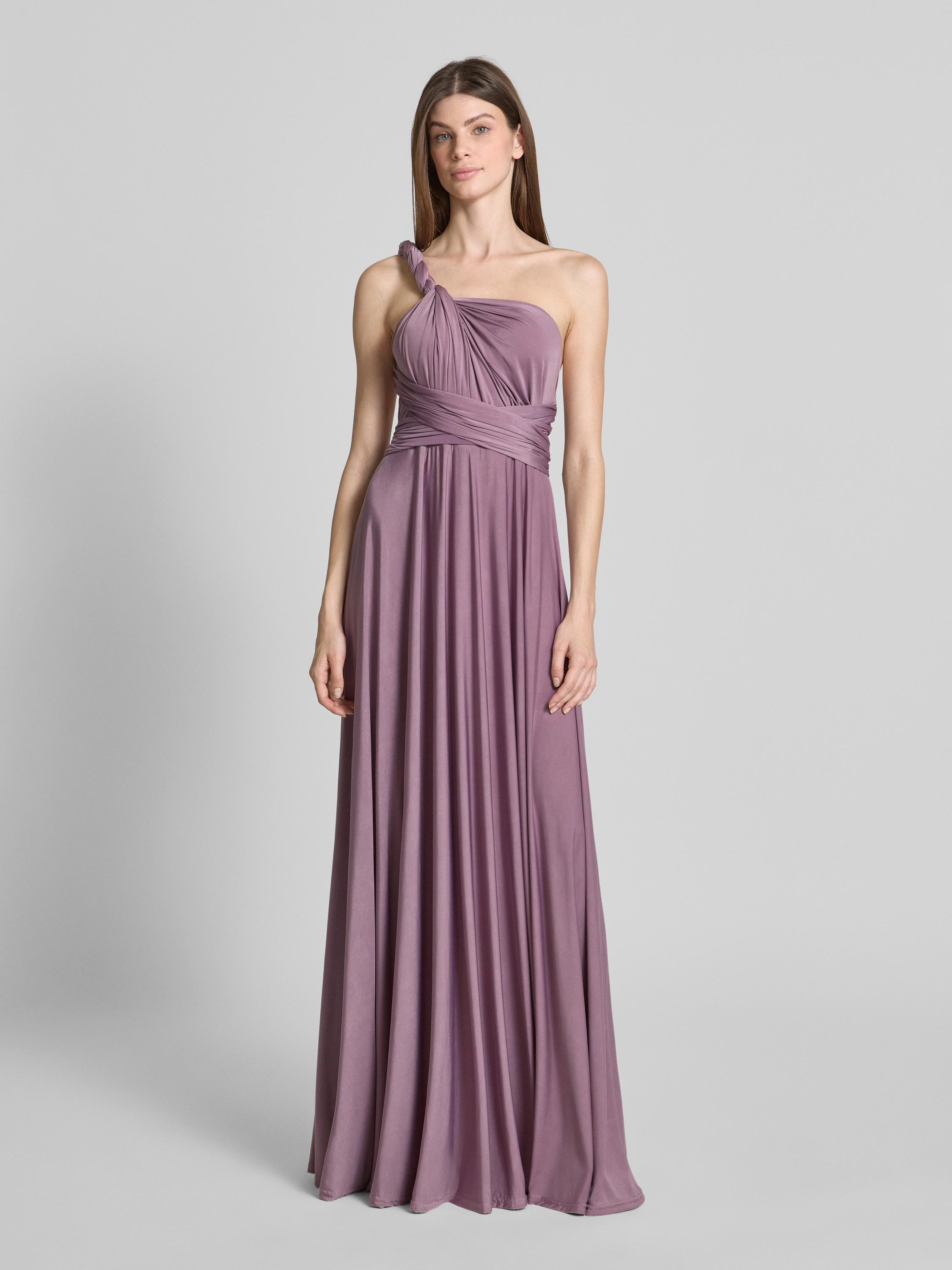 Rose AvenueAbendkleid mit V-Ausschnitt und Taillenband in pflaume
