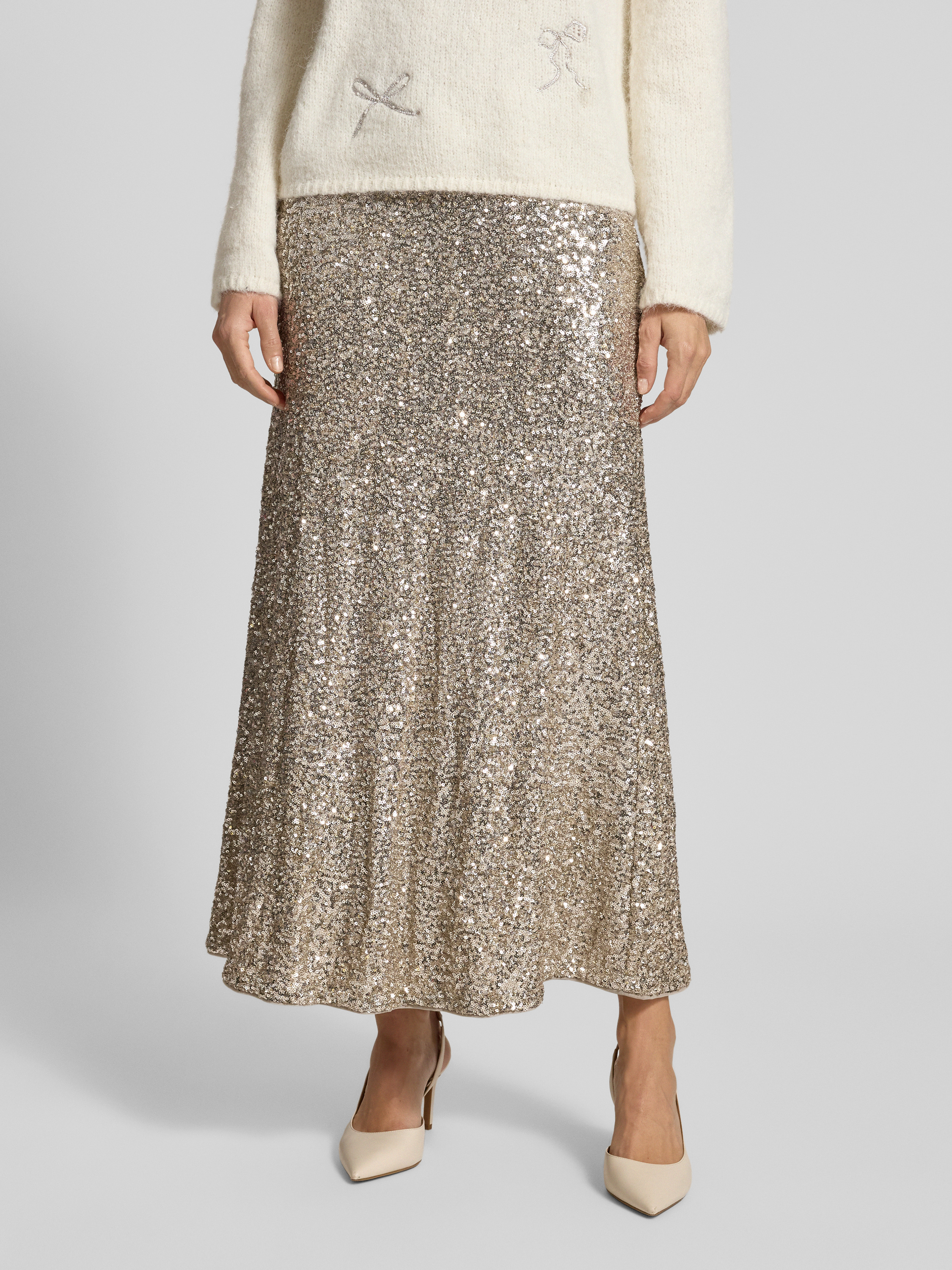 Der Damen Midi-Rock von s.Oliver BLACK LABEL fällt durch seine ausgestellte Passform und die elegante Optik: unifarben, glänzend auf. Ein blickdichter Unterrock sorgt für angenehmen Tragekomfort, während der dezente Paillettenbesatz dem Viskose-Mix eine besondere Note verleiht. So eignet sich der Midi-Rock vielseitig für unterschiedliche Anlässe.