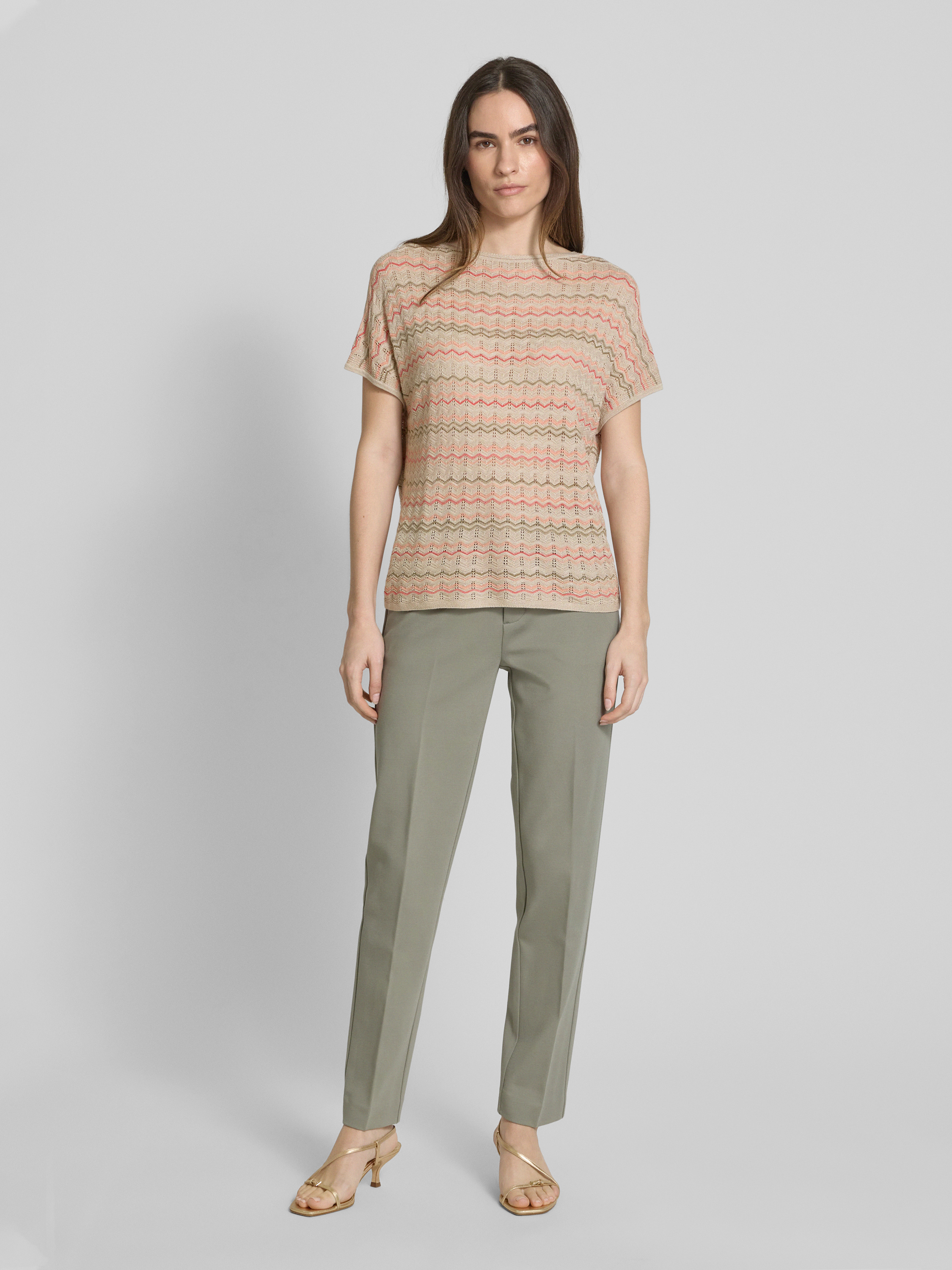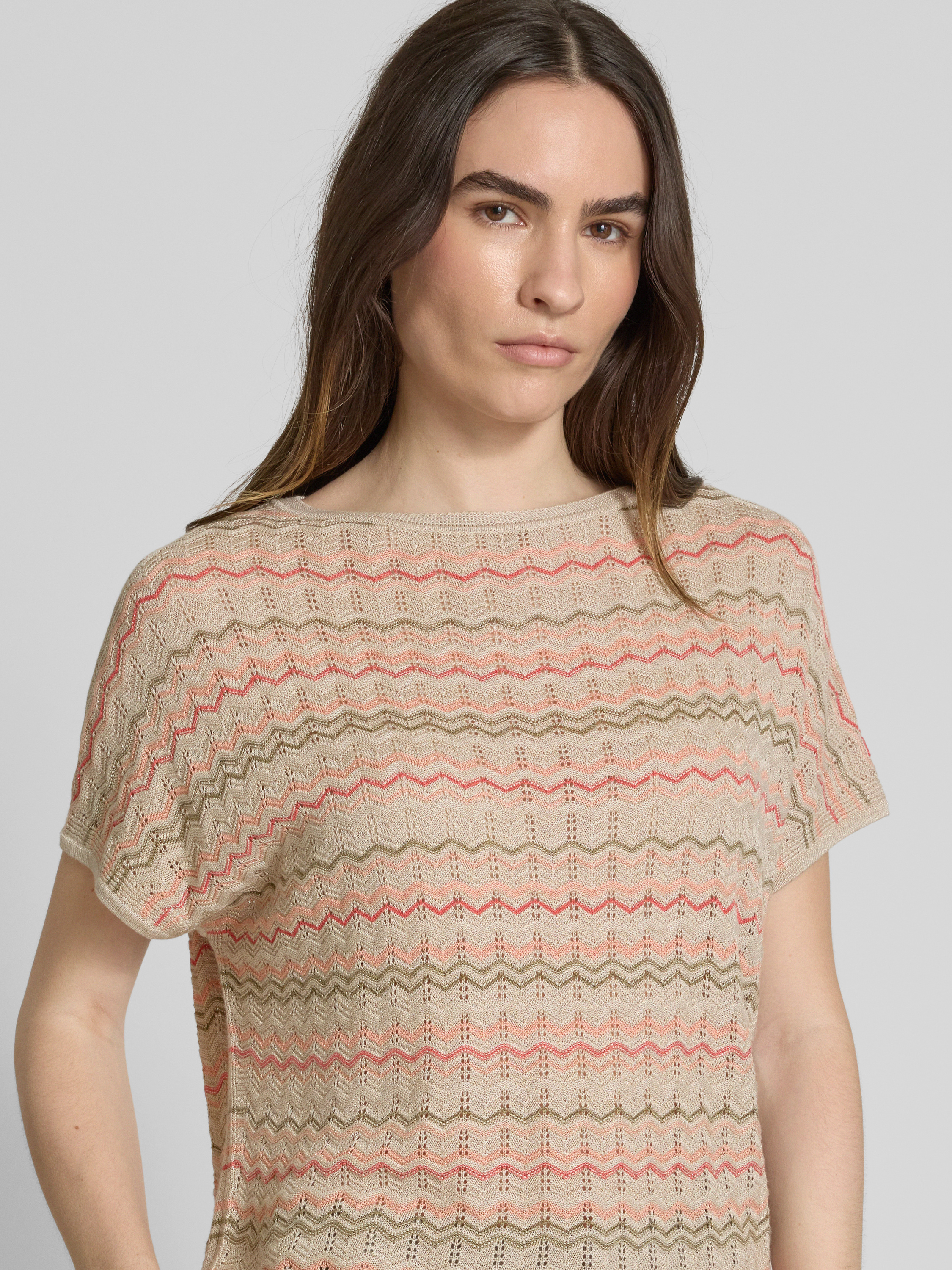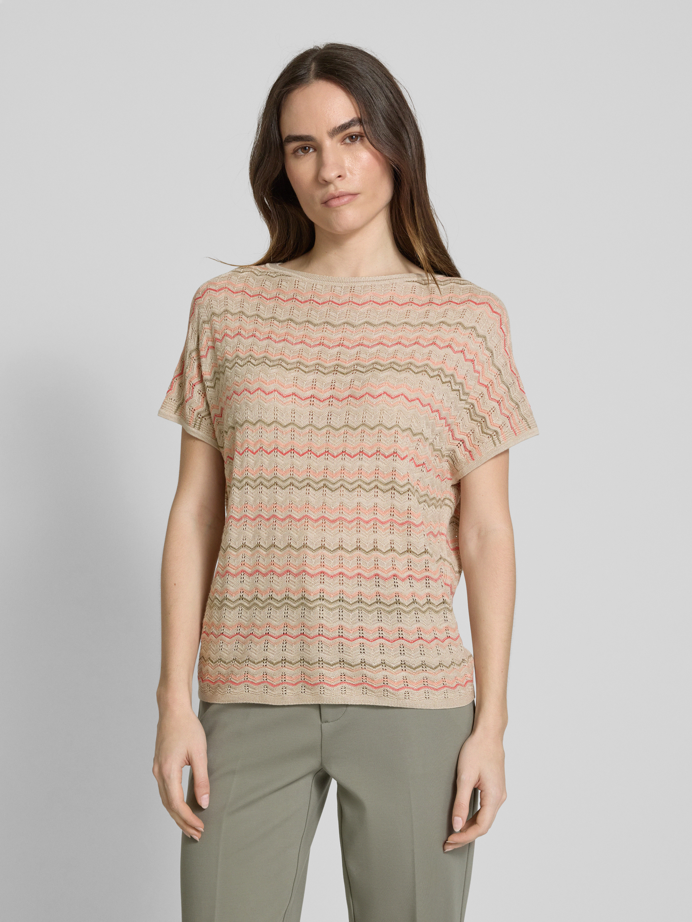 s.Oliver BLACK LABELLoose Fit Stricktop aus Viskose-Mix mit Zackenmuster in sand
