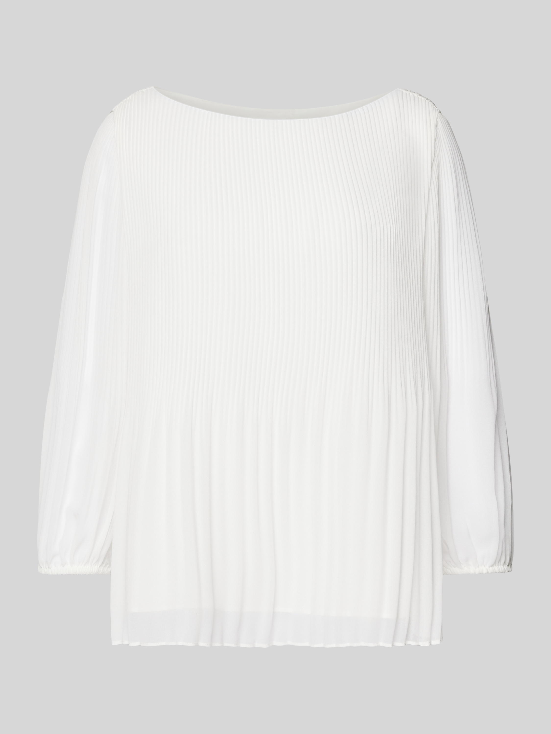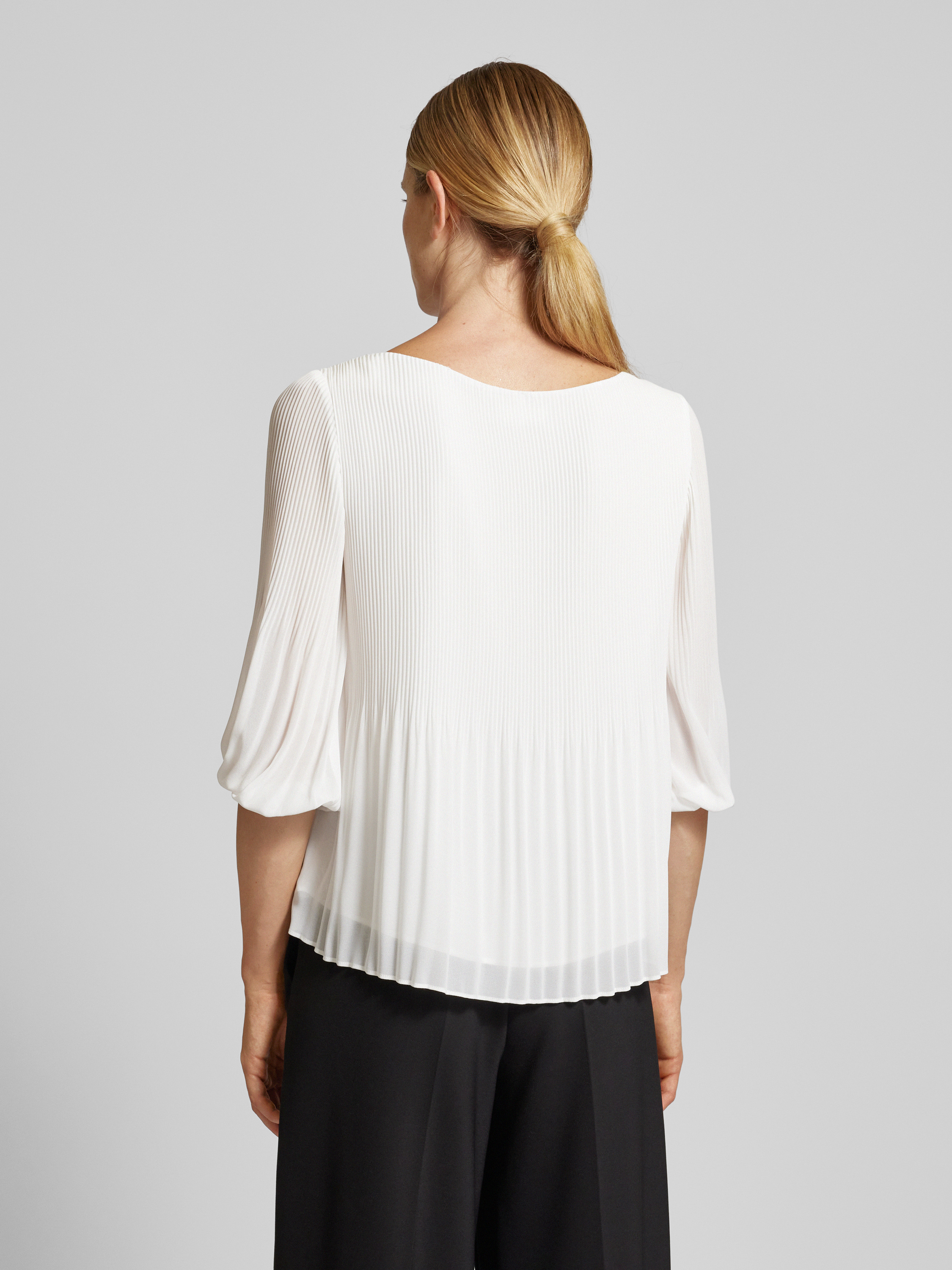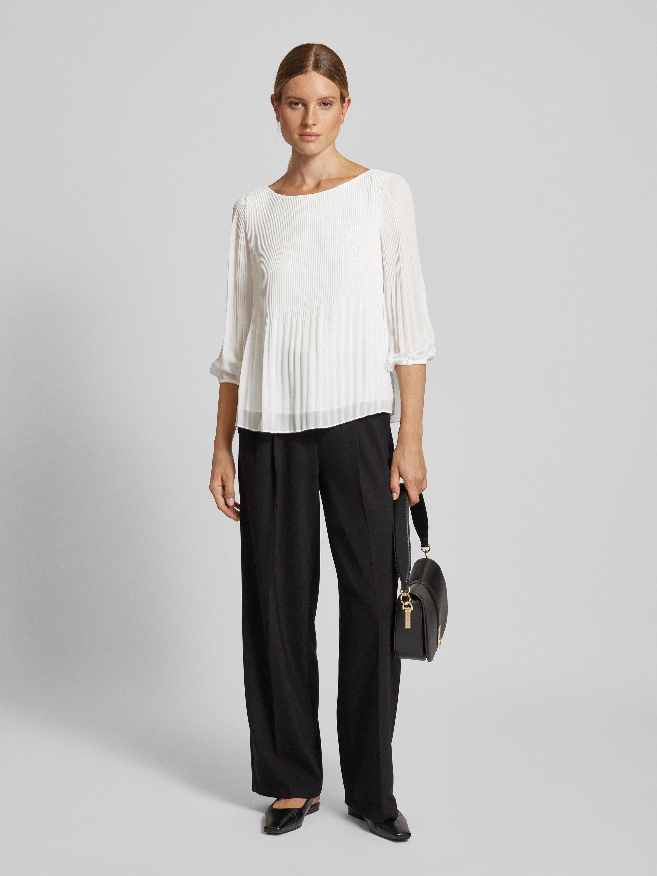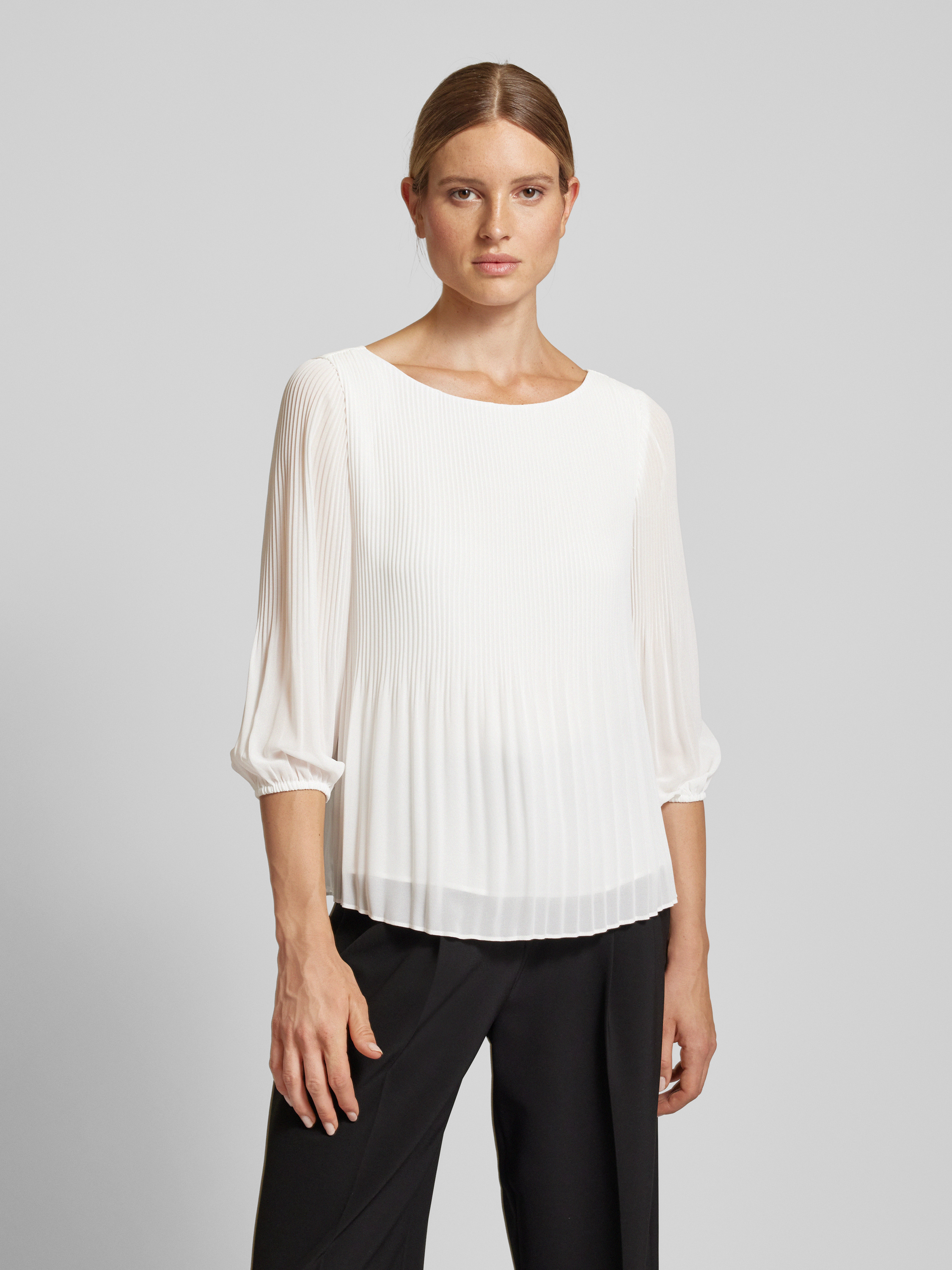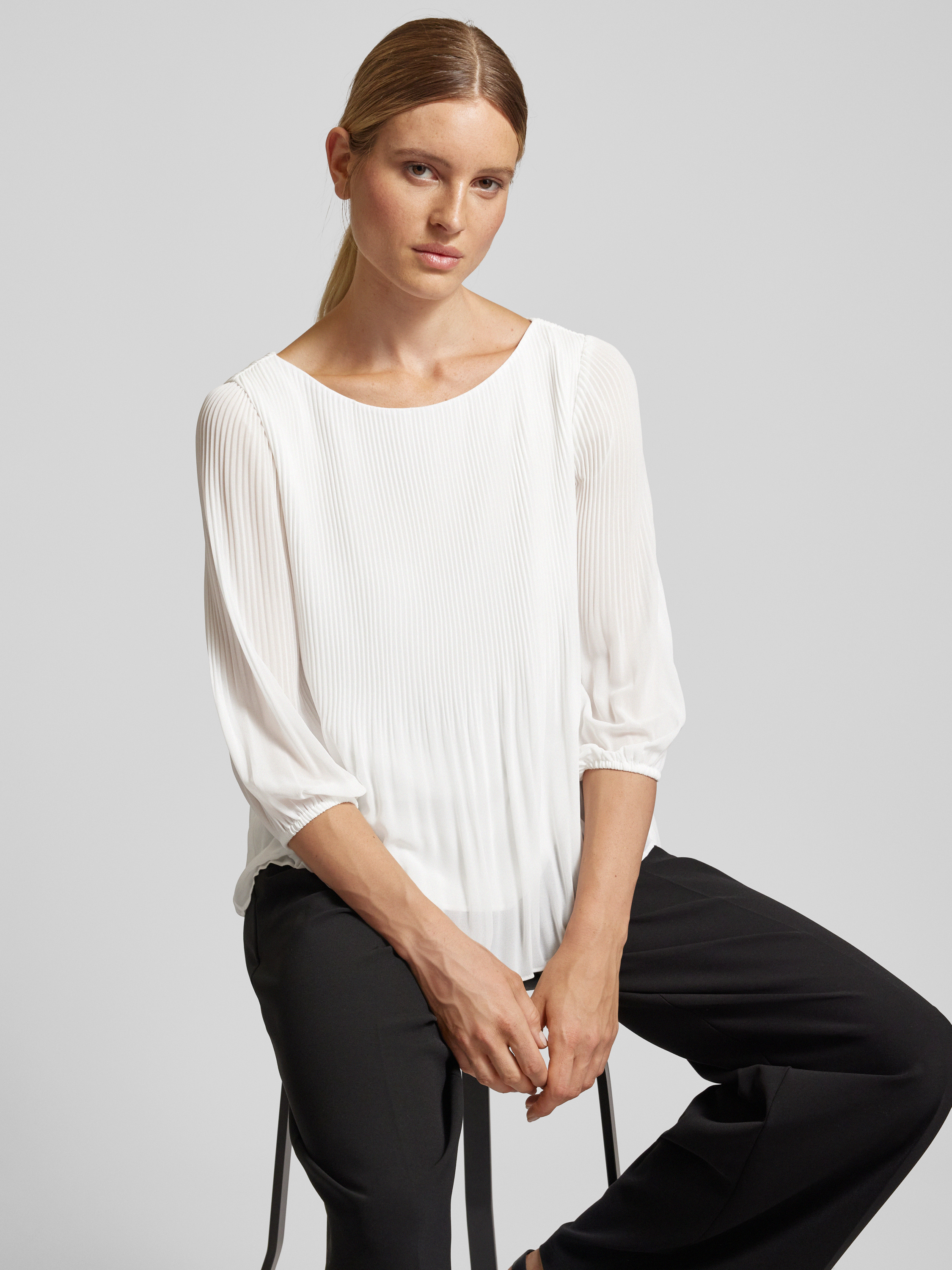 Die Regular Fit Bluse von s.Oliver BLACK LABEL vereint Komfort und Eleganz durch ihren fließenden Polyester-Viskose-Mix. Der kragenlose Rundhalsausschnitt und die dezenten Plisseefalten verleihen dem Modell eine zeitlose Note, während der elastische 3/4-Arm Bewegungsfreiheit ermöglicht. Ein vielseitiges Stück für verschiedenste Anlässe.
