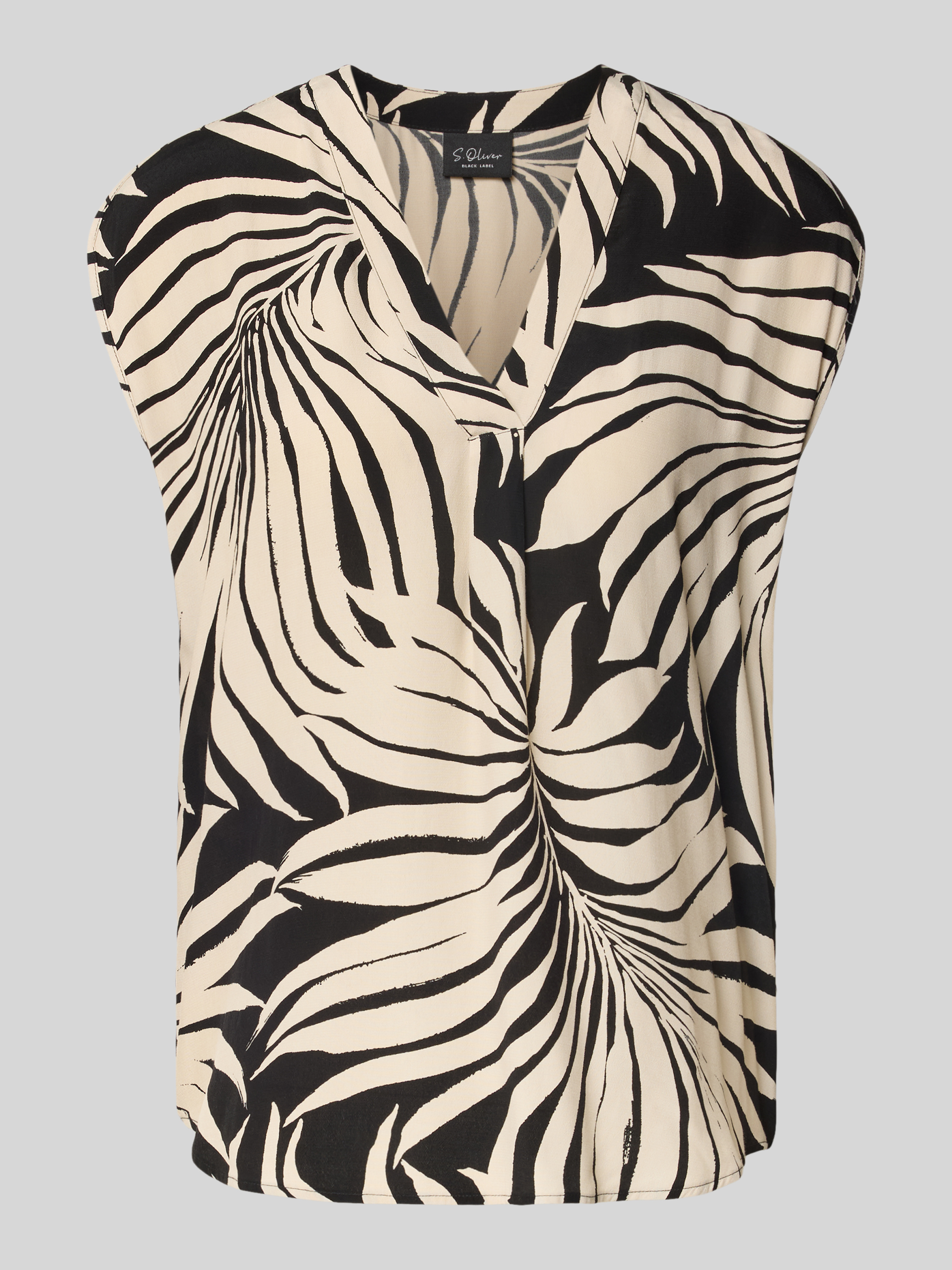 Das Blusenshirt von s.Oliver BLACK LABEL vereint einen lässigen Regular Fit mit einem charmanten Allover-Muster. Die Tunika-Kragenform und der V-Ausschnitt sorgen für eine elegante Note. Durch die reine Viskose fühlt es sich angenehm leicht an und eignet sich ideal für Freizeit oder Business.
