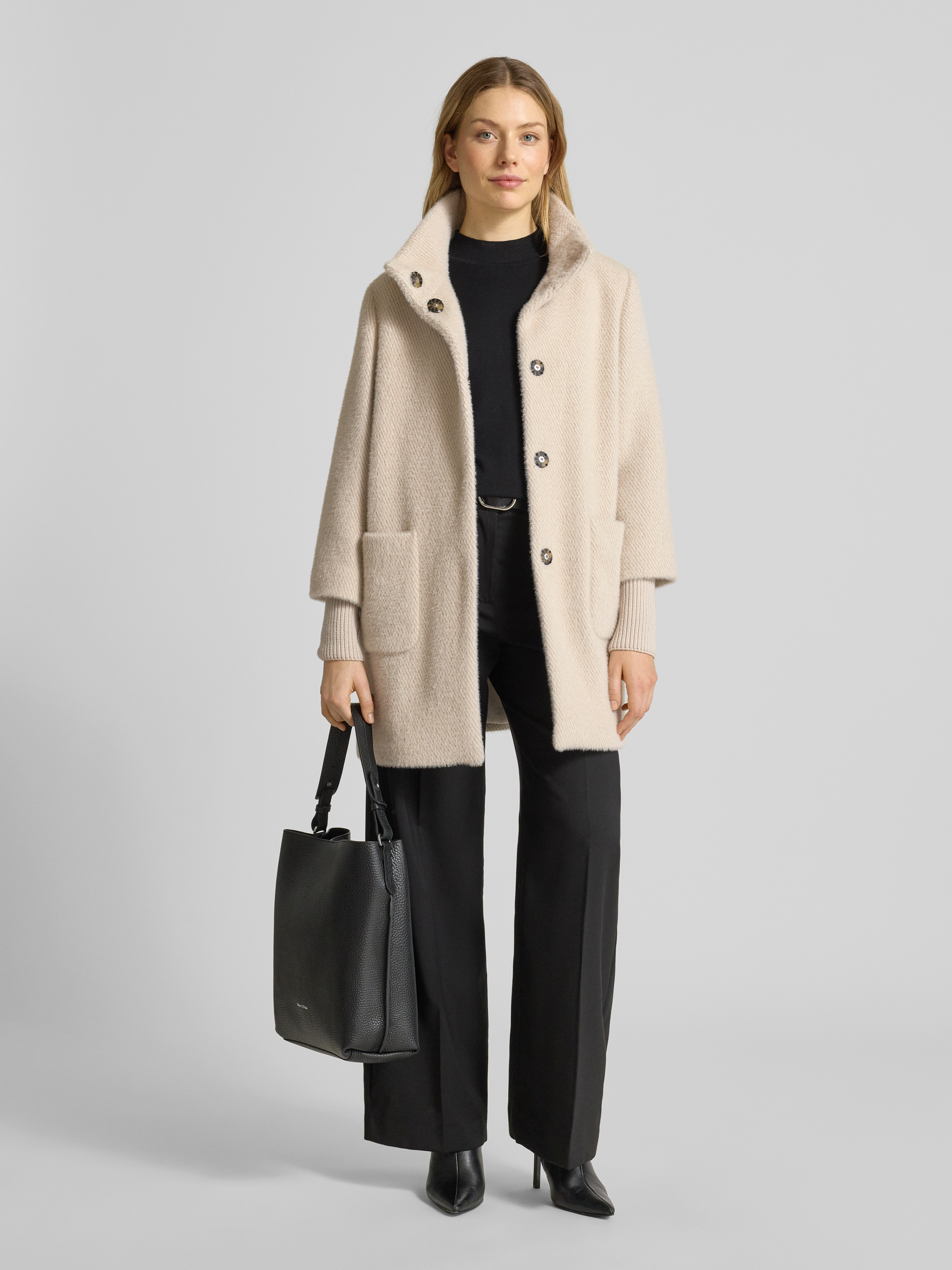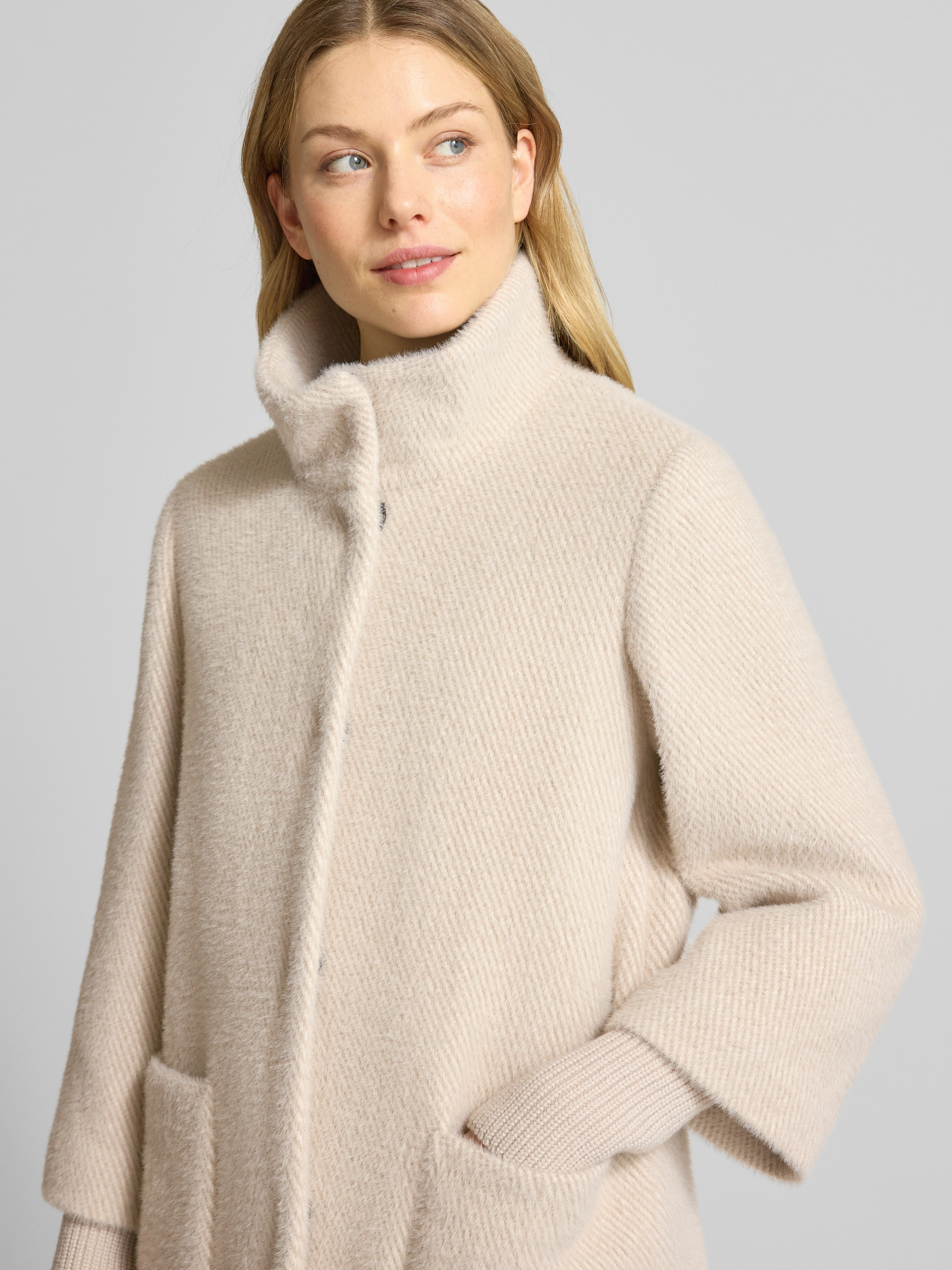 Der Damen Regular Fit Mantel von s.Oliver BLACK LABEL fällt durch die melierte Optik und das gestreifte Muster angenehm ins Auge. Durch das flauschige Material bleibt es auch an kühleren Tagen behaglich. Der Stehkragen sorgt für einen modernen Akzent, während praktische Taschen Platz bieten.