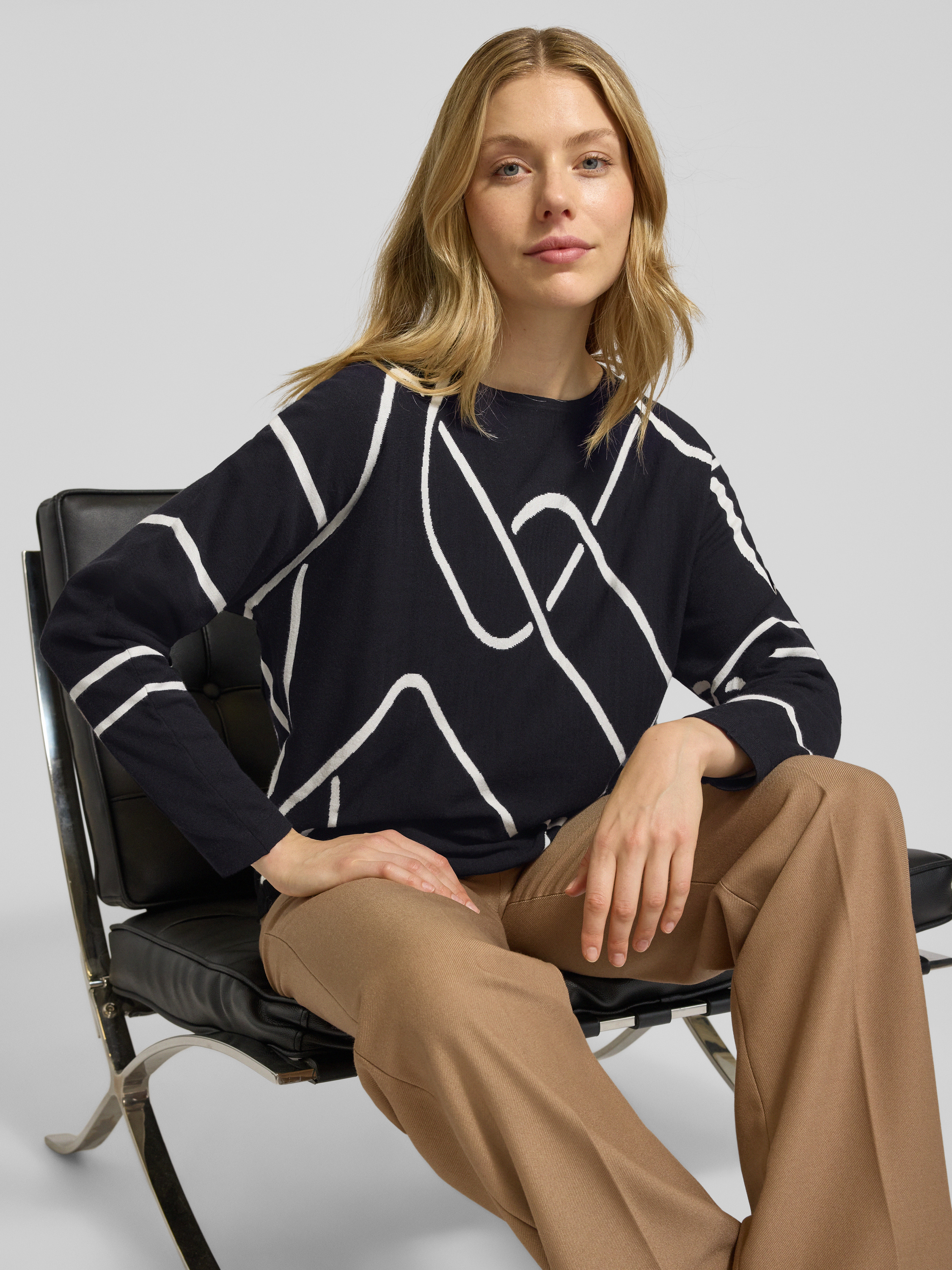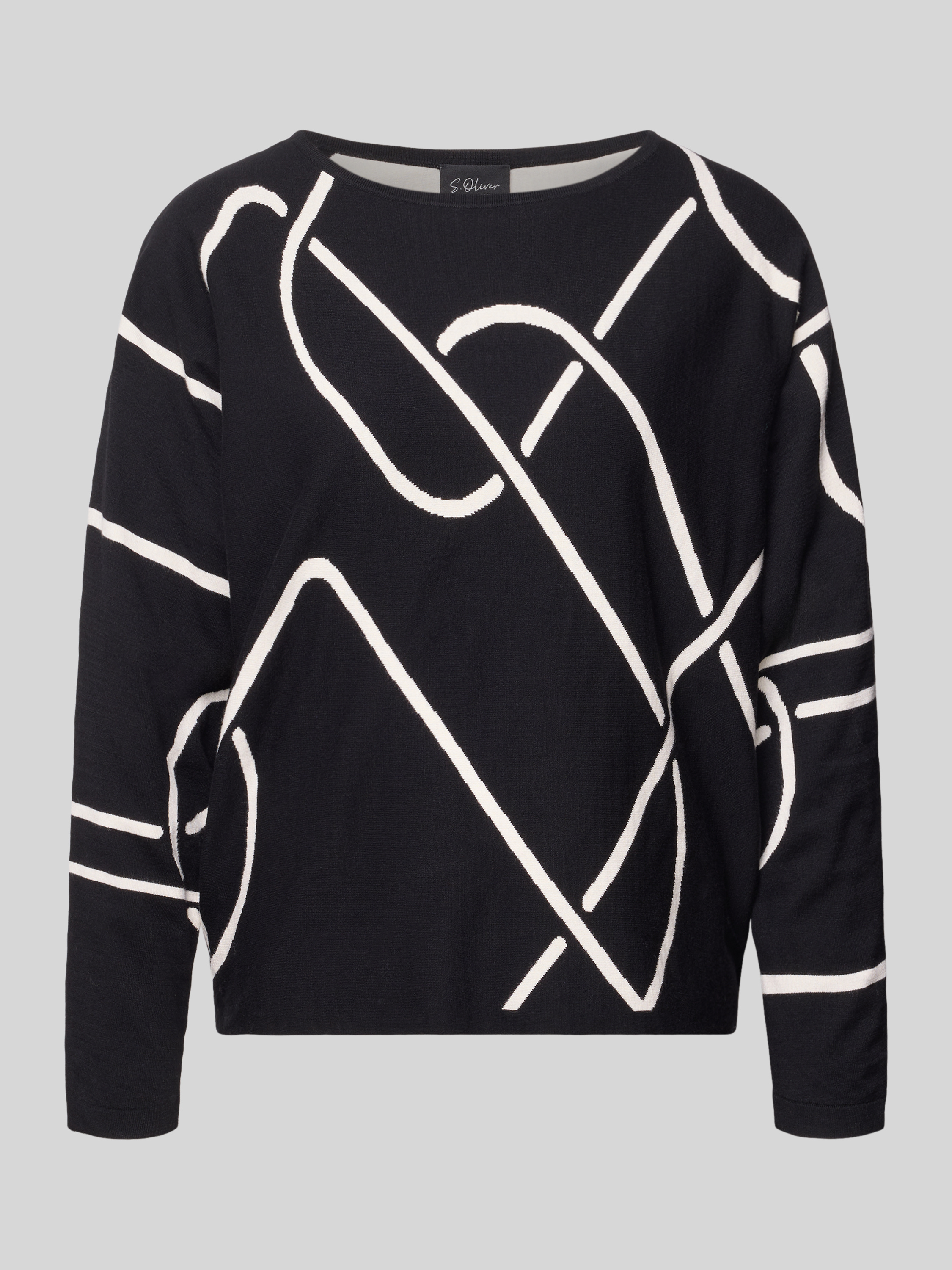 Der Damen Regular Fit Pullover von s.Oliver BLACK LABEL fällt durch das abstrakte Allover-Muster und die Fledermausärmel ins Auge. Dank der lockeren Passform und dem angenehm leichten Feinstrick aus Viskose-Mix fühlt man sich beim Tragen rundum wohl. Ein Rundhals und Bündchen runden das Design funktional ab.