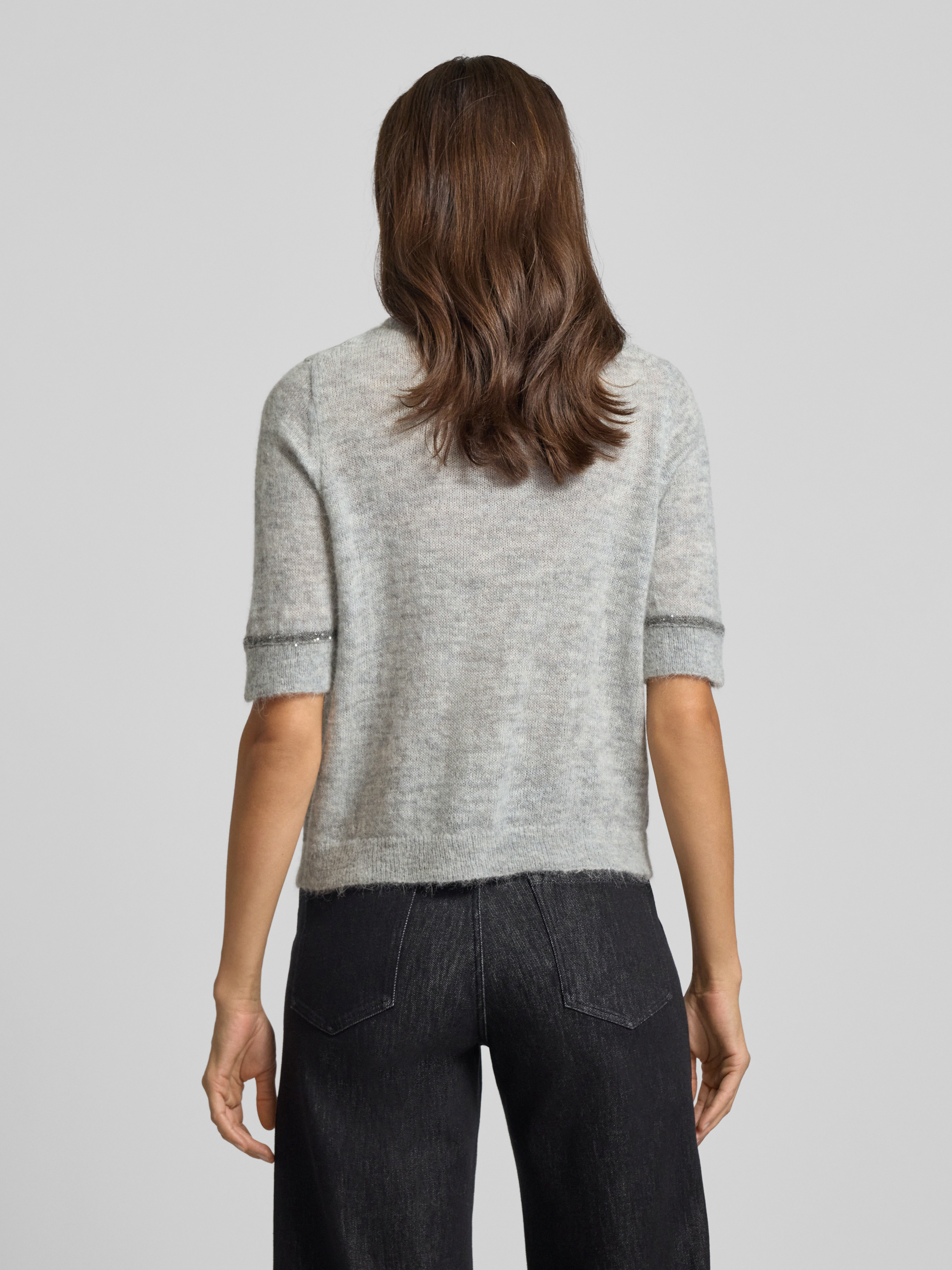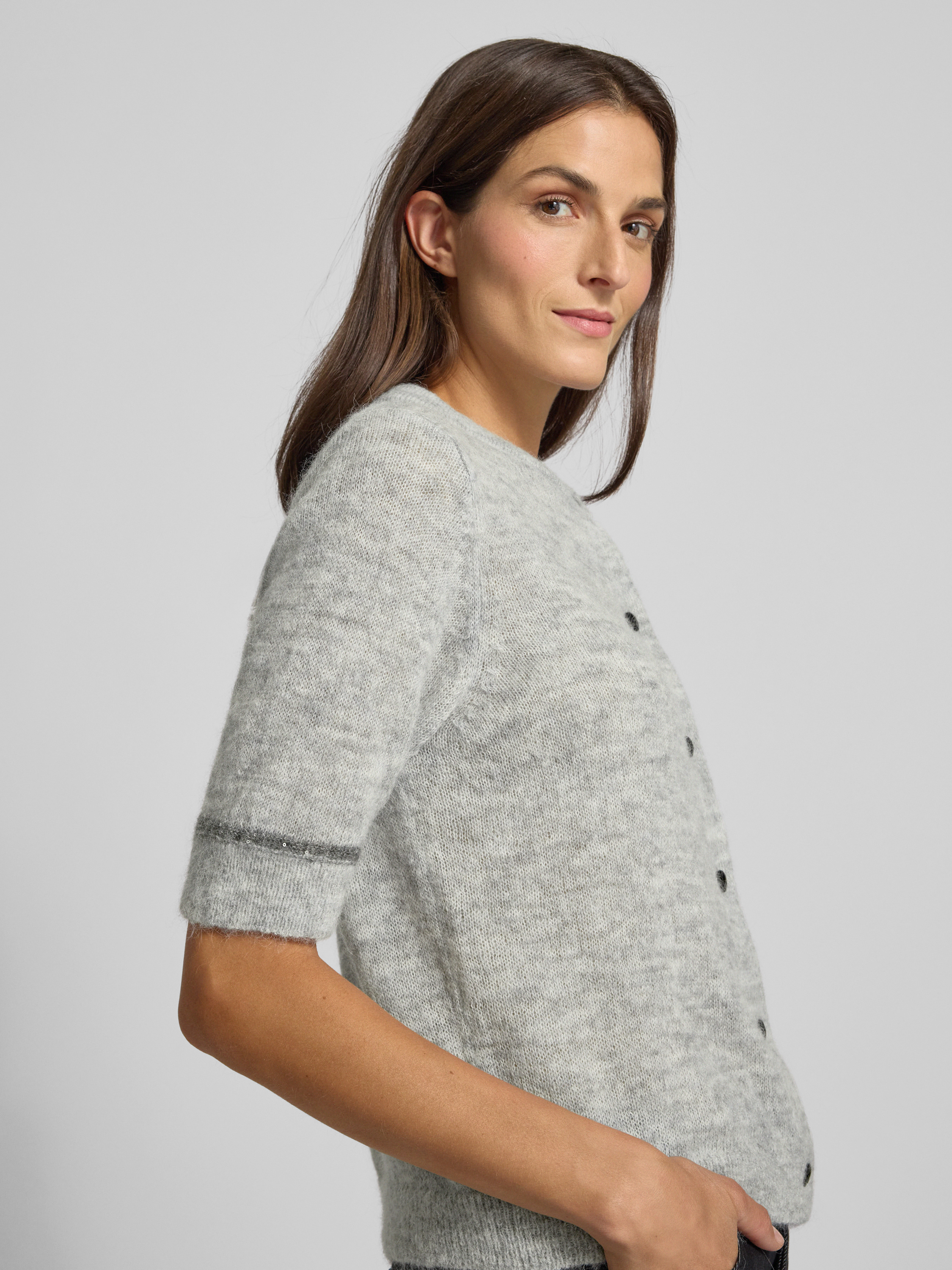 Die Damen Strickjacke von s.Oliver BLACK LABEL fällt durch ein Allover-Muster und den Regular Fit auf, wodurch sie vielseitig kombinierbar ist. Dank des Alpaka-Woll-Anteils fühlt sich das Strickmaterial angenehm weich an und sorgt für ein komfortables Tragegefühl im Alltag. Dezente Mini-Pailletten und Effektgarn setzen feine Akzente, während der Crew Neck und die kurzen Ärmel einen entspannten, modernen Look unterstützen.
