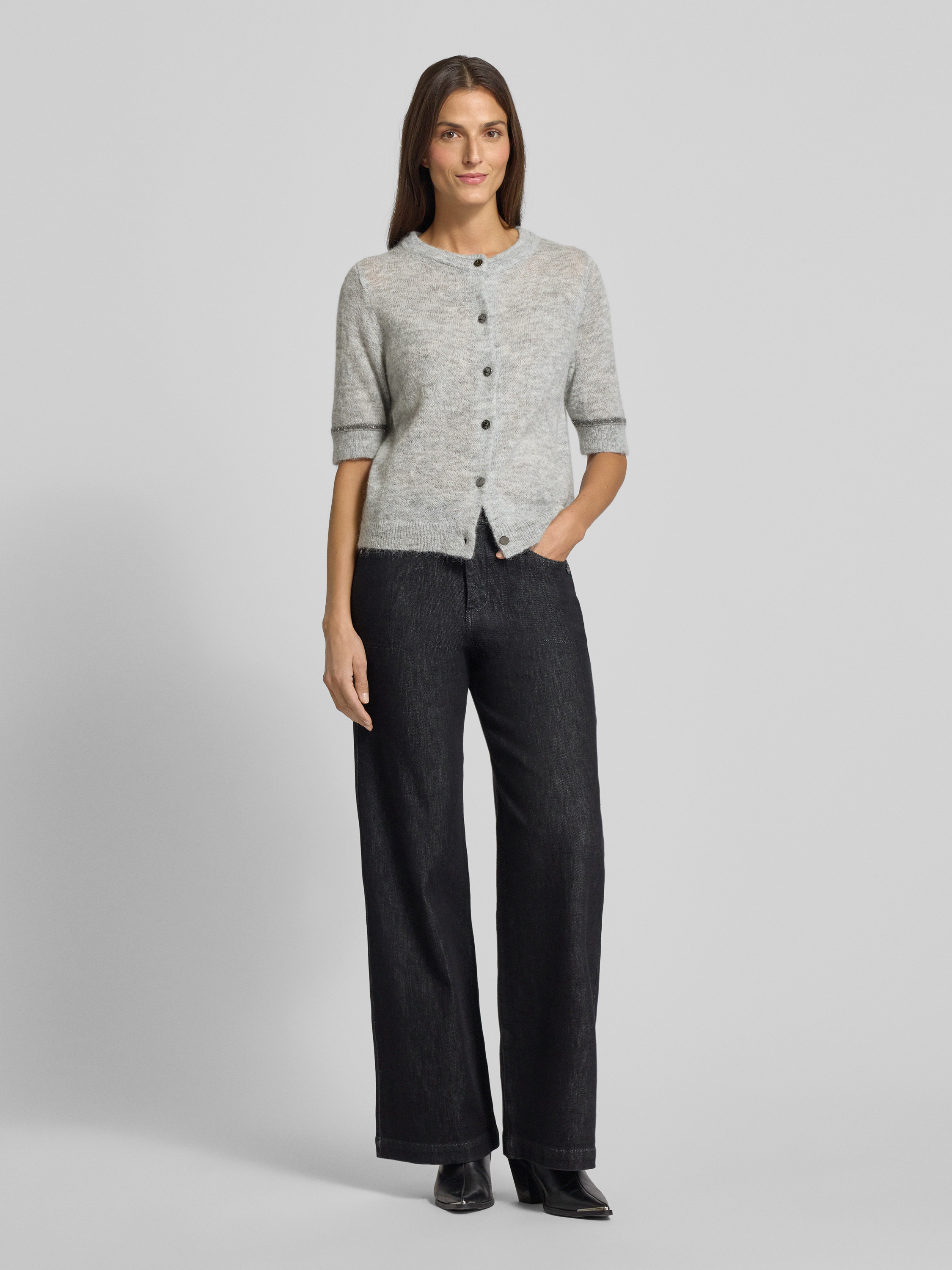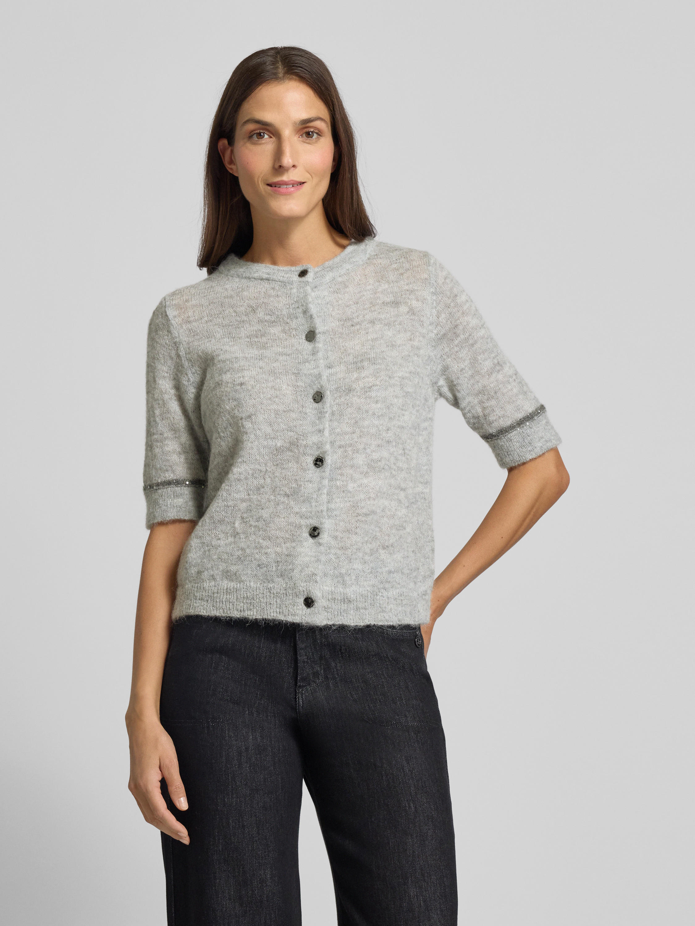 s.Oliver BLACK LABELRegular Fit Strickjacke mit Alpaka-Woll-Anteil in hellgrau