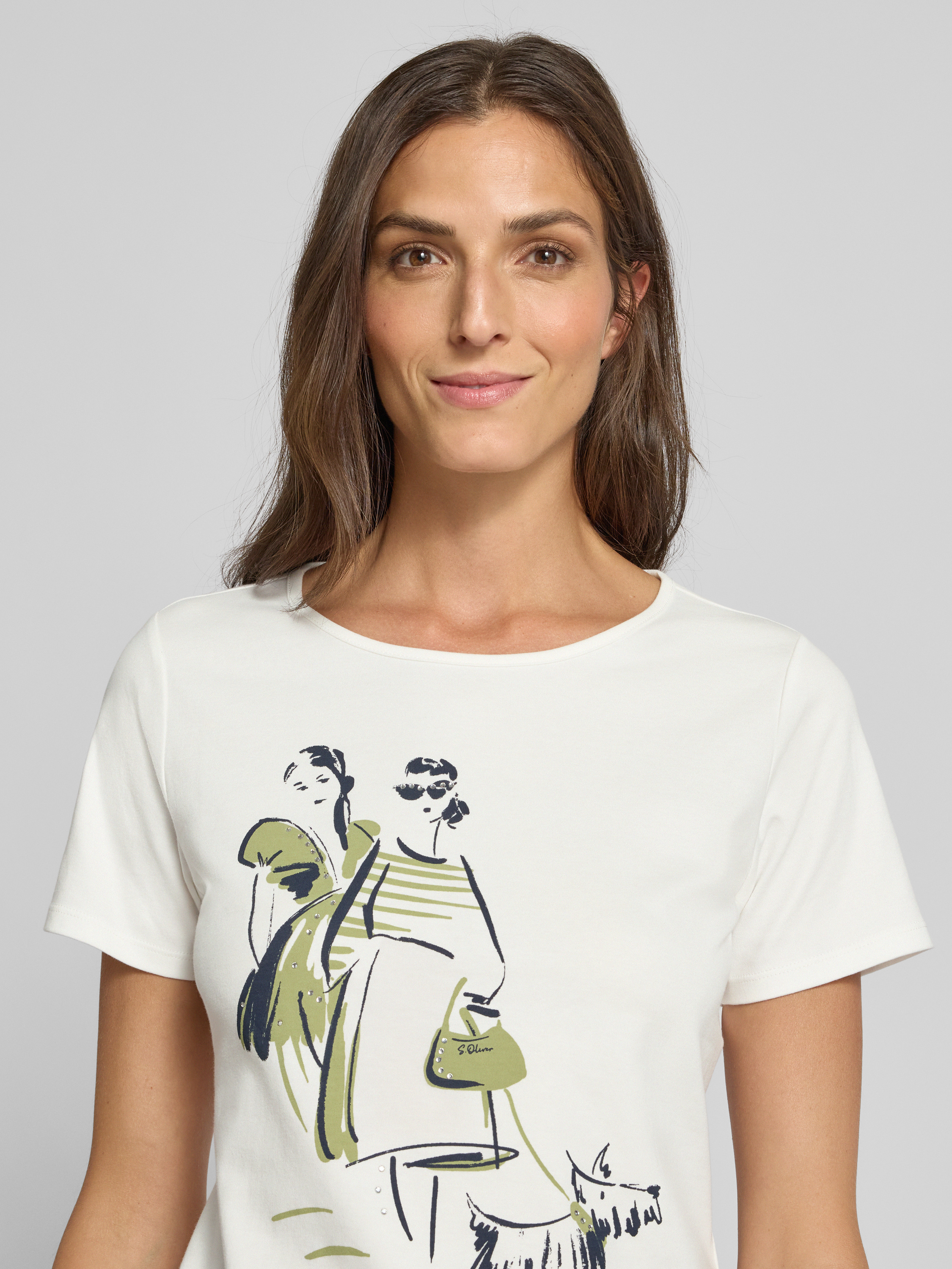 s.Oliver BLACK LABELRegular Fit T-Shirt aus reiner Baumwolle in offwhite