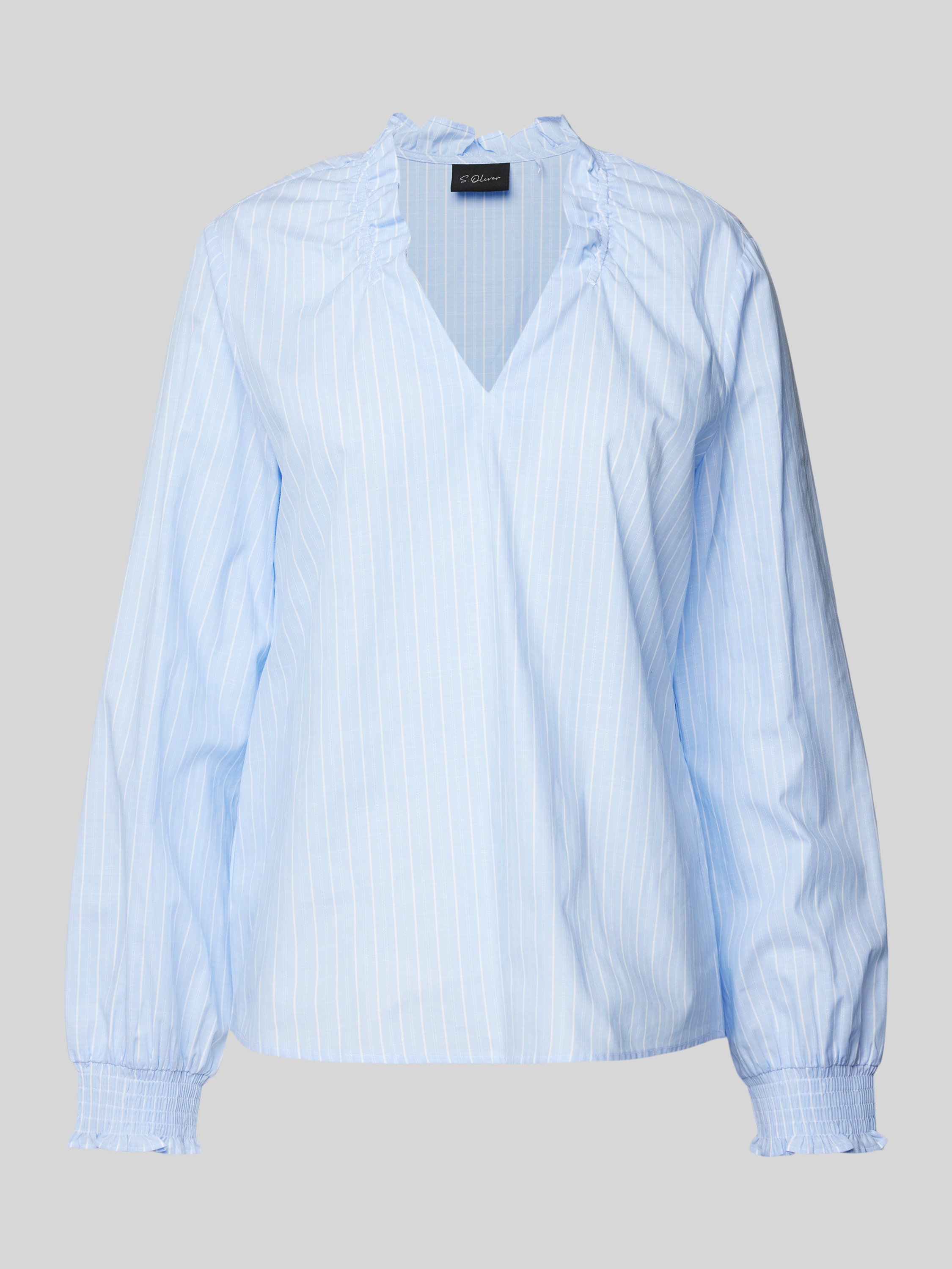 s.Oliver BLACK LABELRelaxed Fit Baumwollbluse mit Smok-Details in bleu