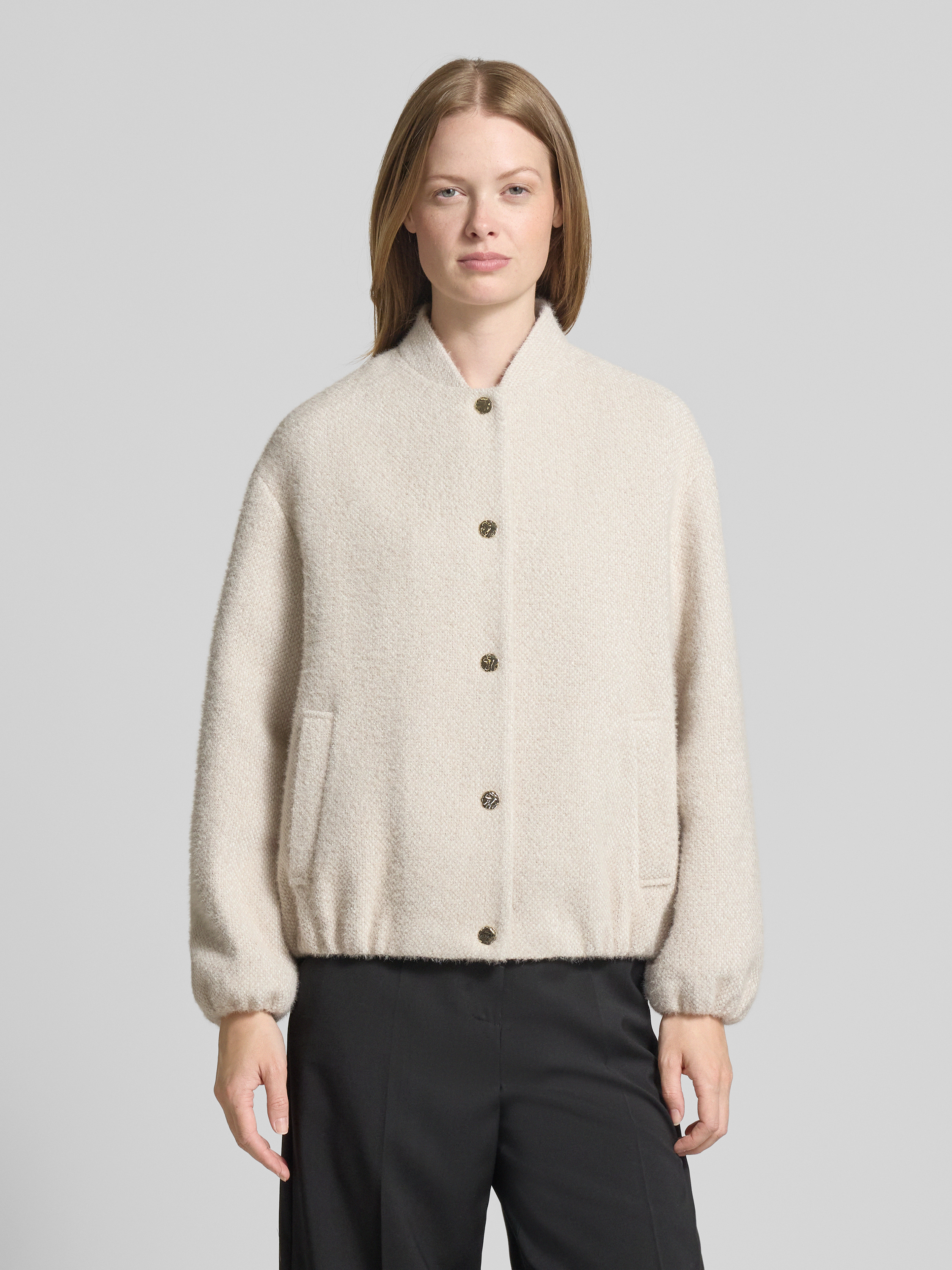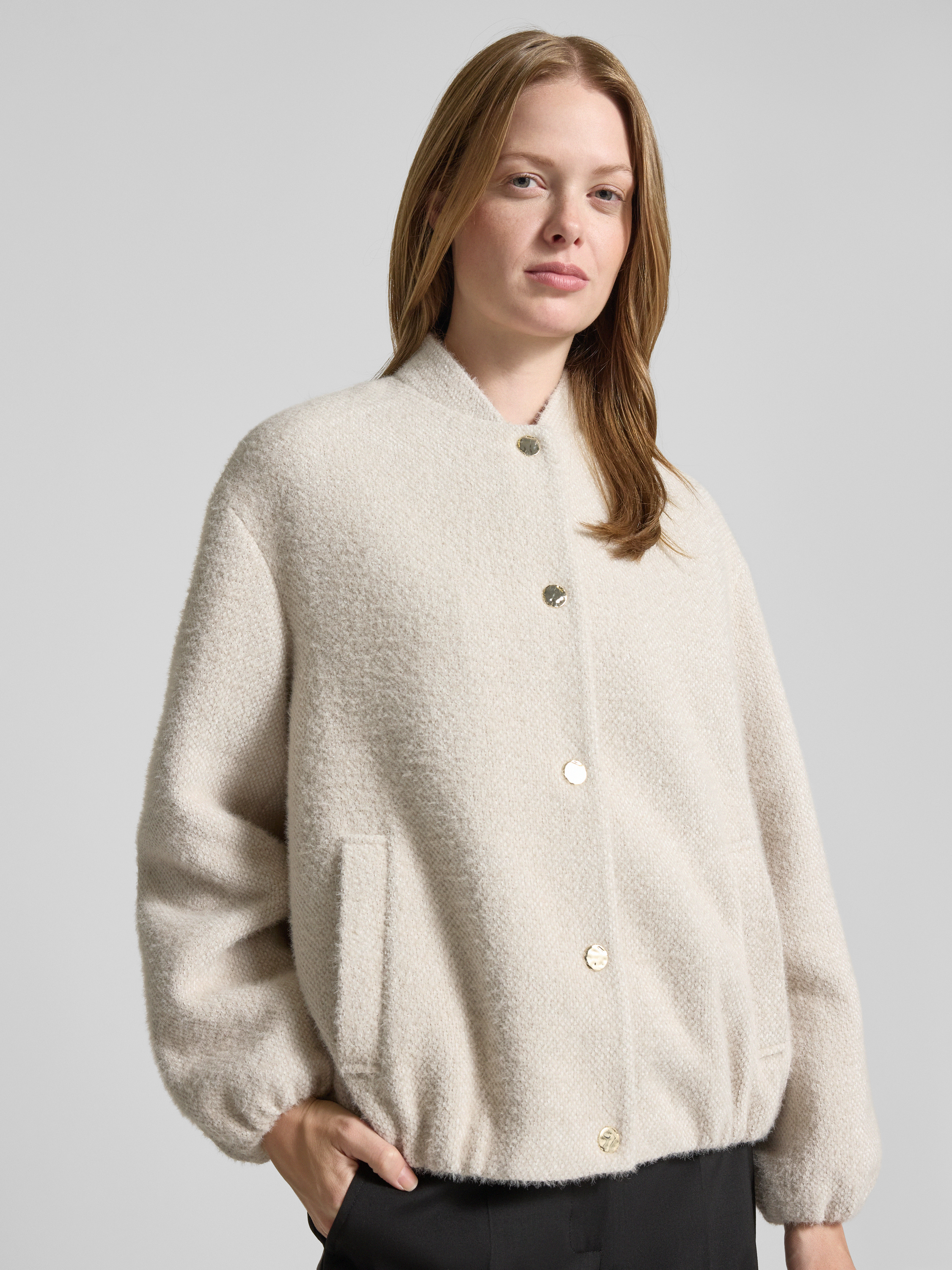 Der Damen Blouson von s.Oliver BLACK LABEL präsentiert sich im legeren Relaxed Fit und bringt durch das strukturierte Allover-Muster eine abwechslungsreiche Optik ins Spiel. Dank Stehkragen und langen Ärmeln lässt sich das Modell unkompliziert kombinieren, während Leistentaschen praktische Akzente setzen. So entsteht ein unkompliziertes Kleidungsstück, das vielseitig genutzt werden kann.