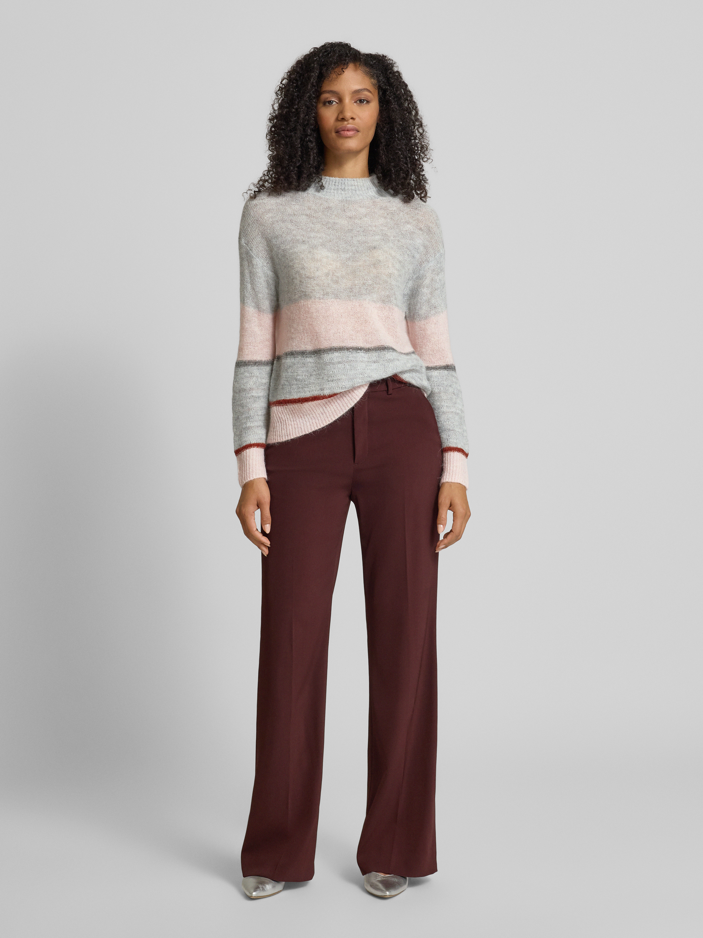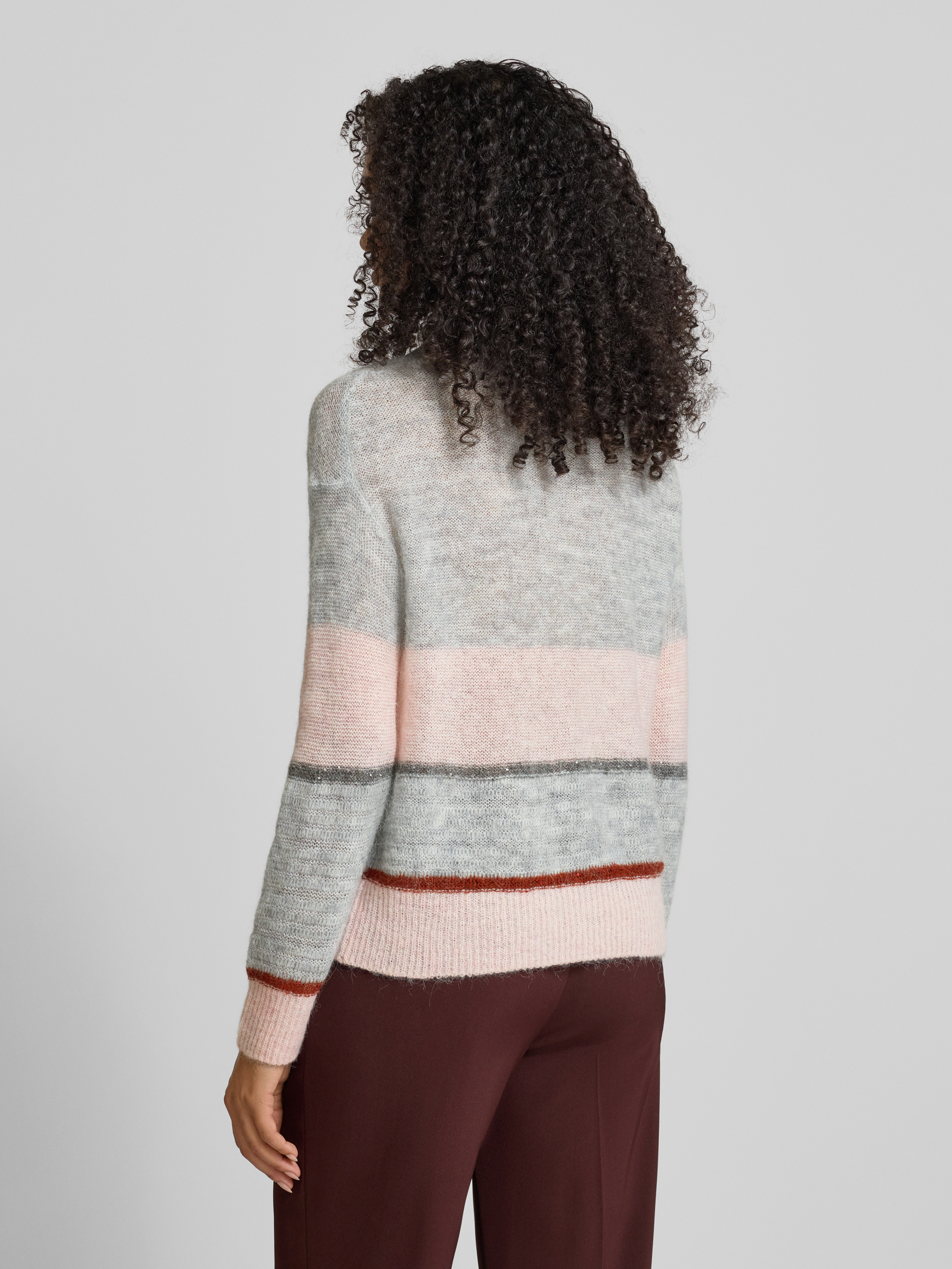 Der Damenpullover von s.Oliver BLACK LABEL mit entspanntem Schnitt legt sich angenehm locker an und punktet mit weichem Woll-Anteil. Durch das mehrfarbige Streifenmuster und die kleinen Pailletten erhält das Modell eine lebendige Note, während der Mock Neck für Komfort sorgt.