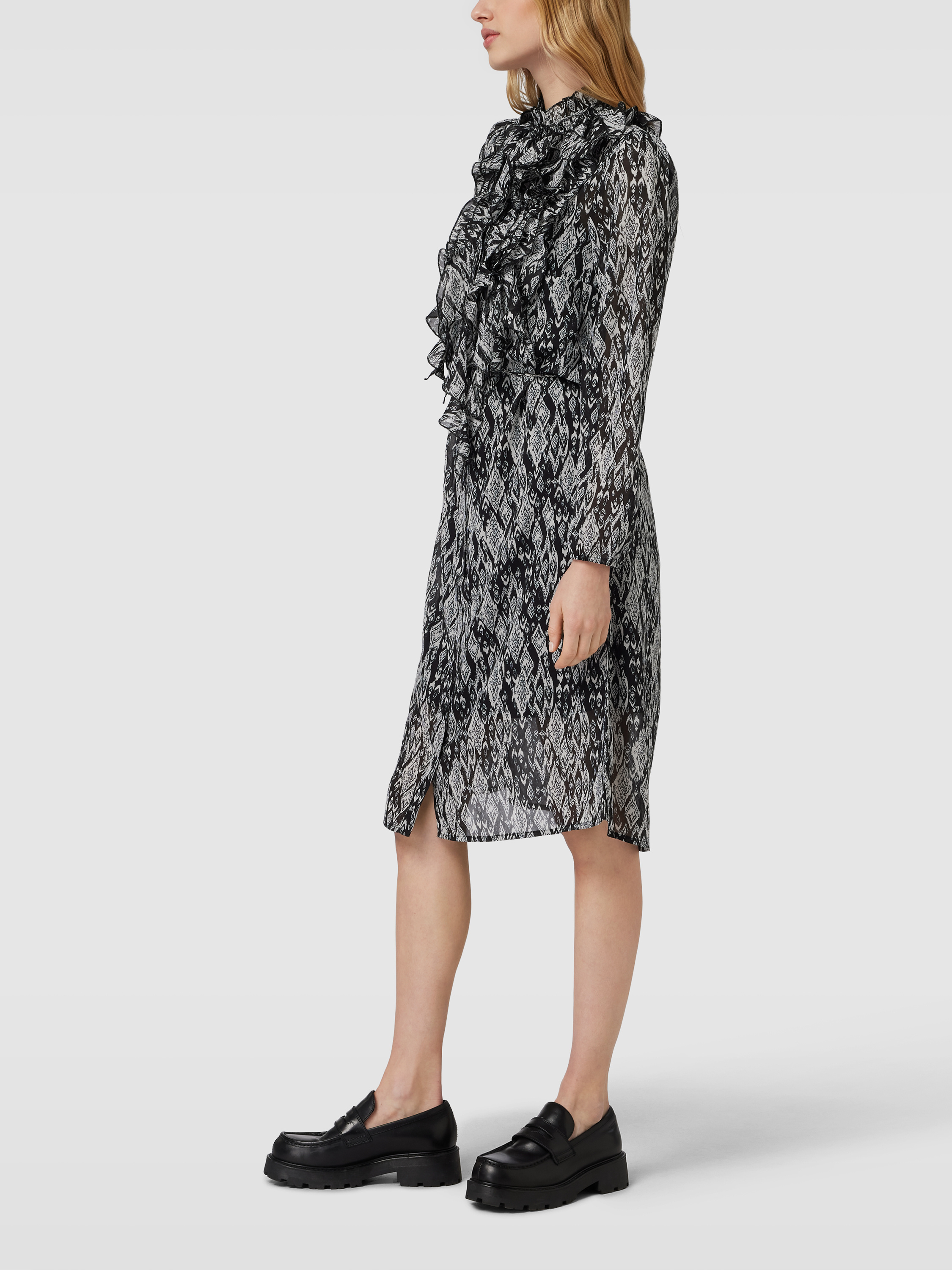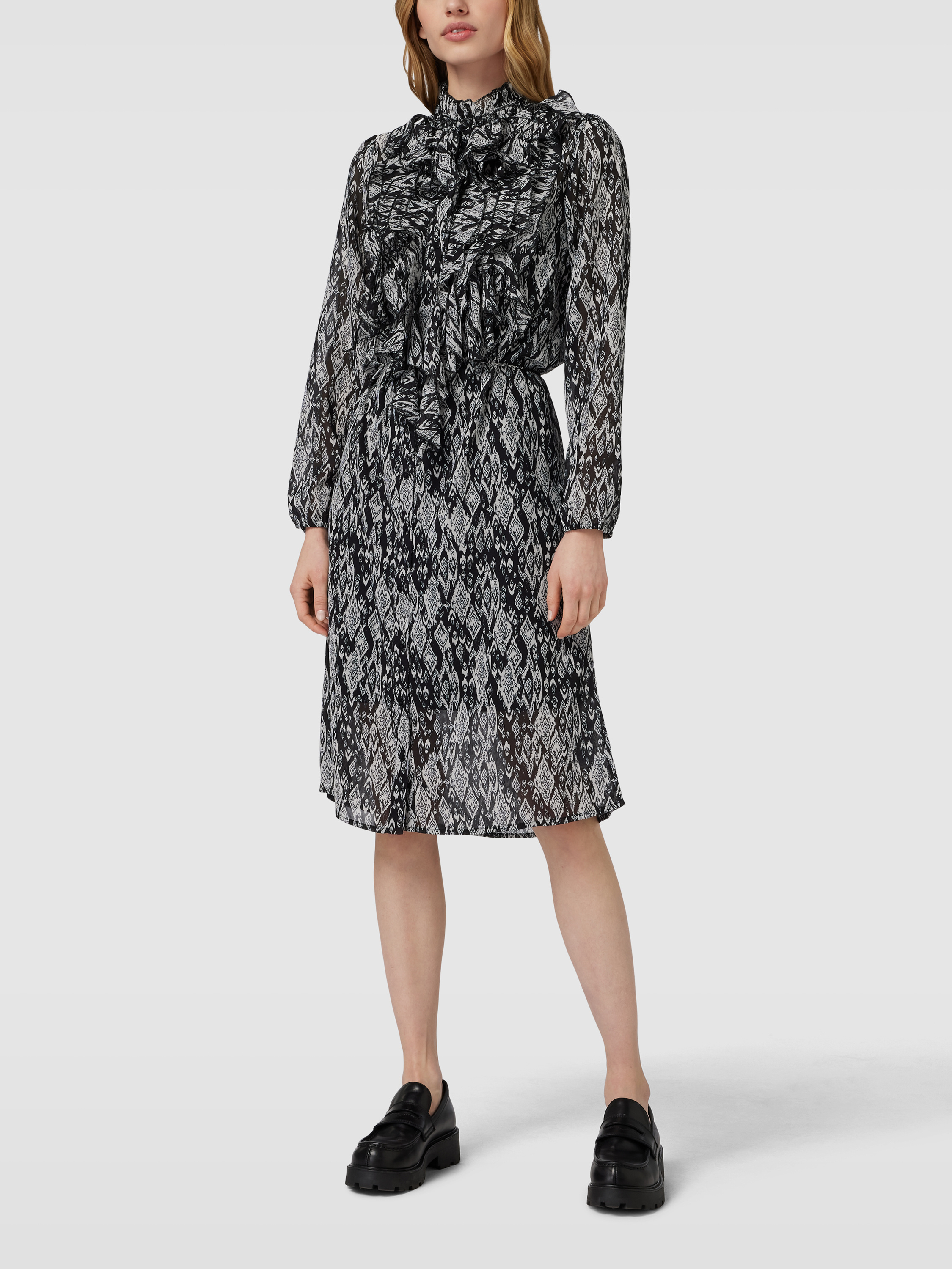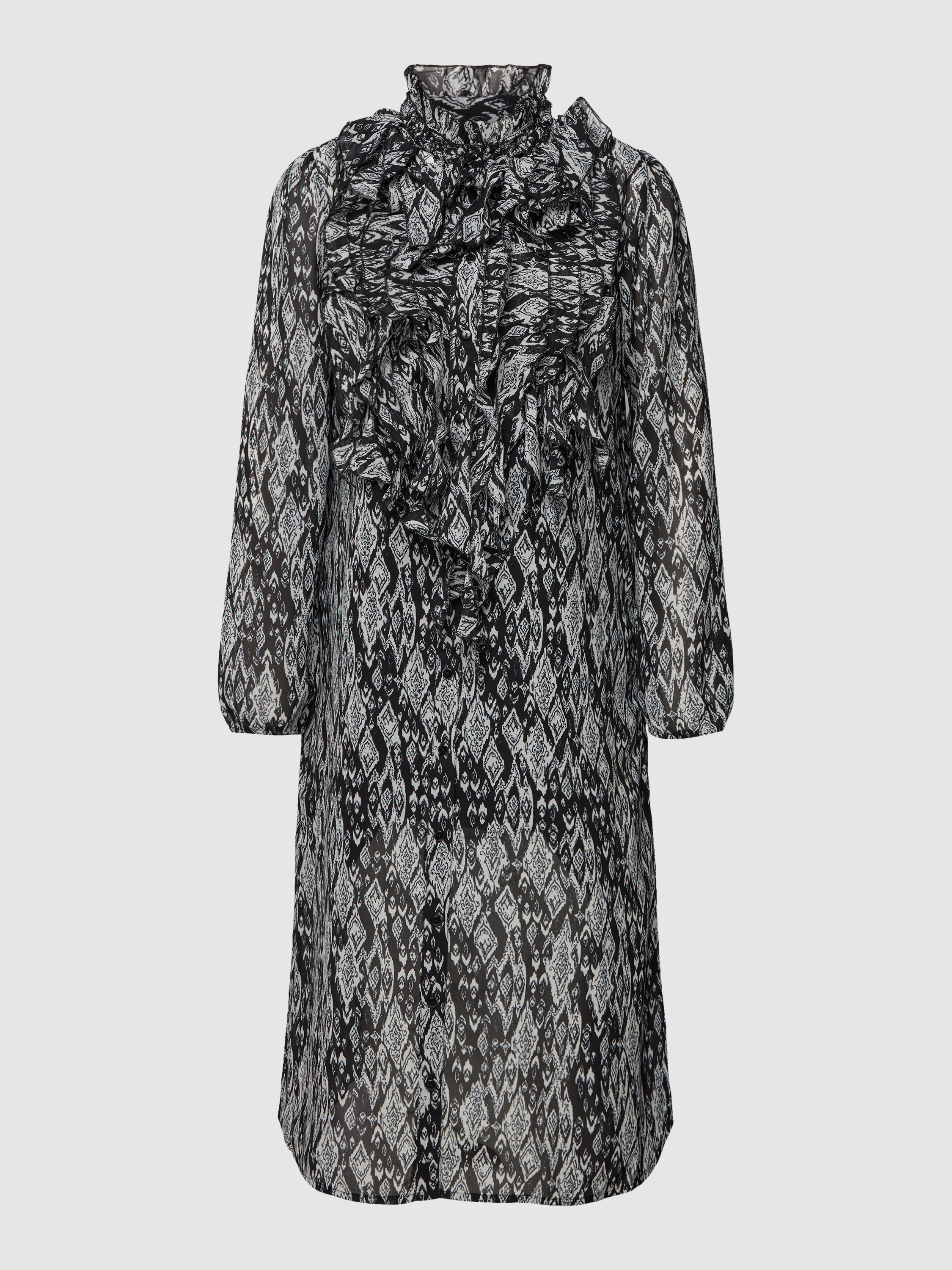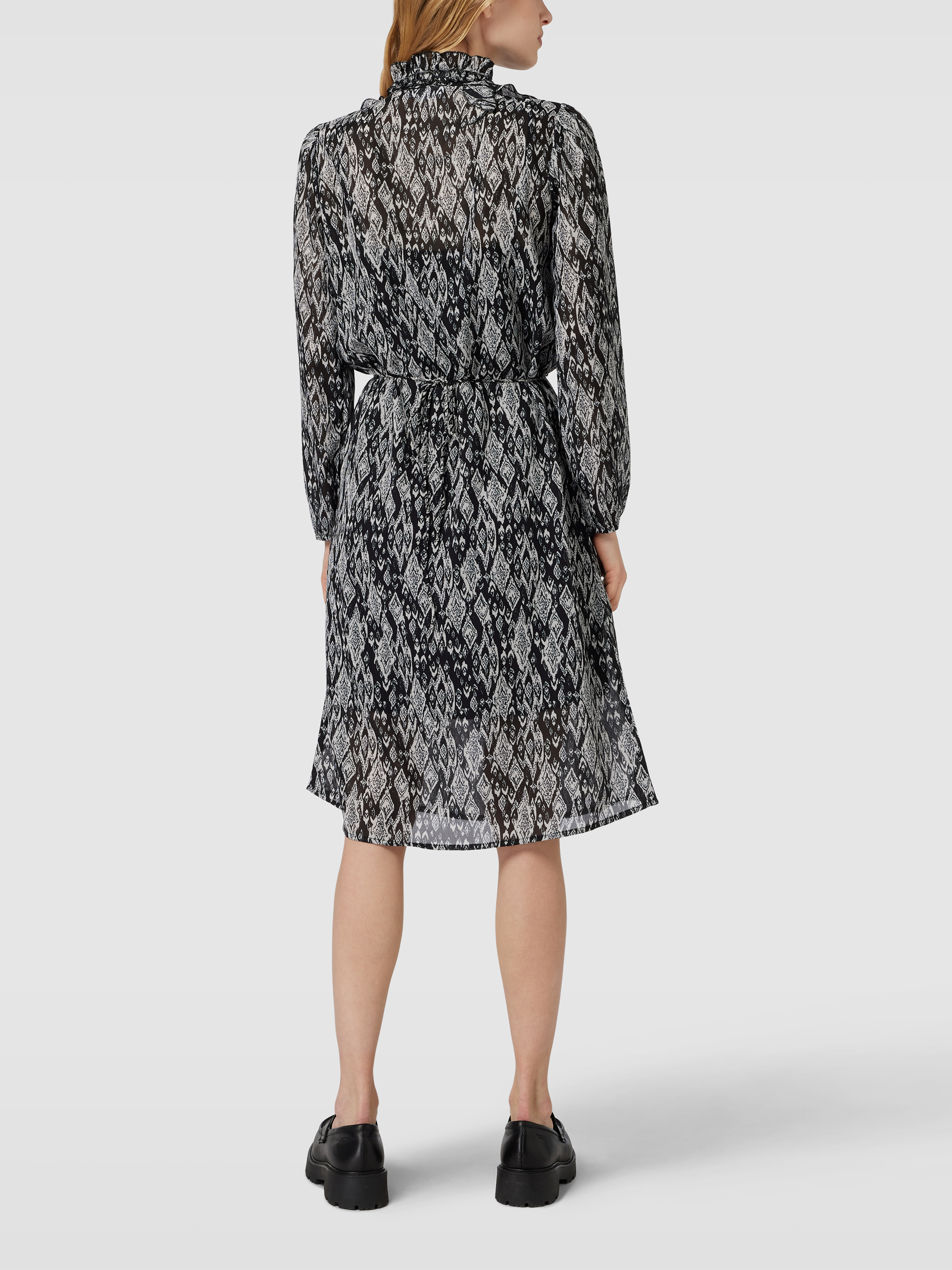 Das Blusenkleid mit Rüschen Modell 'Lilly' von Saint Tropez fällt durch seinen ausgestellten Schnitt und das dekorative Allover-Muster angenehm auf. Rüschen und Taillengürtel bringen eine feminine Note ins Spiel, während das strapazierfähige Material für einen unkomplizierten Alltag sorgt. So entsteht ein vielseitiger Begleiter, der Bewegungsfreiheit gewährt.