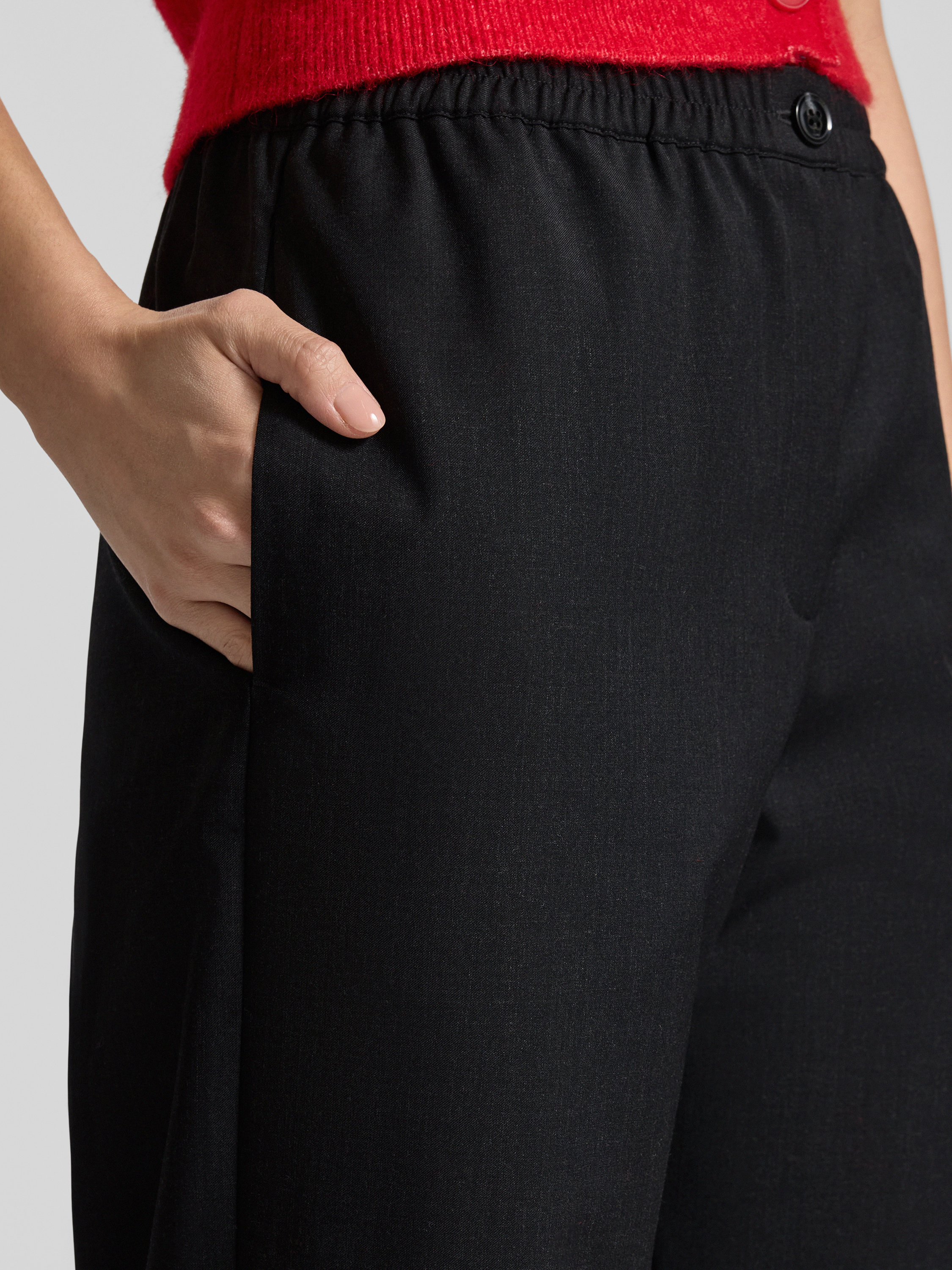 Die Damen Hose von Samsøe Samsøe im Modell 'TOVI' kombiniert einen bequemen Regular-Fit mit einem angenehmen Material-Mix und Woll-Anteil. Dank elastischem Bund sitzt sie den ganzen Tag über entspannt, während der Schnitt Bewegungsfreiheit im Alltag ermöglicht. So lässt sich jedes Outfit unkompliziert ergänzen.
