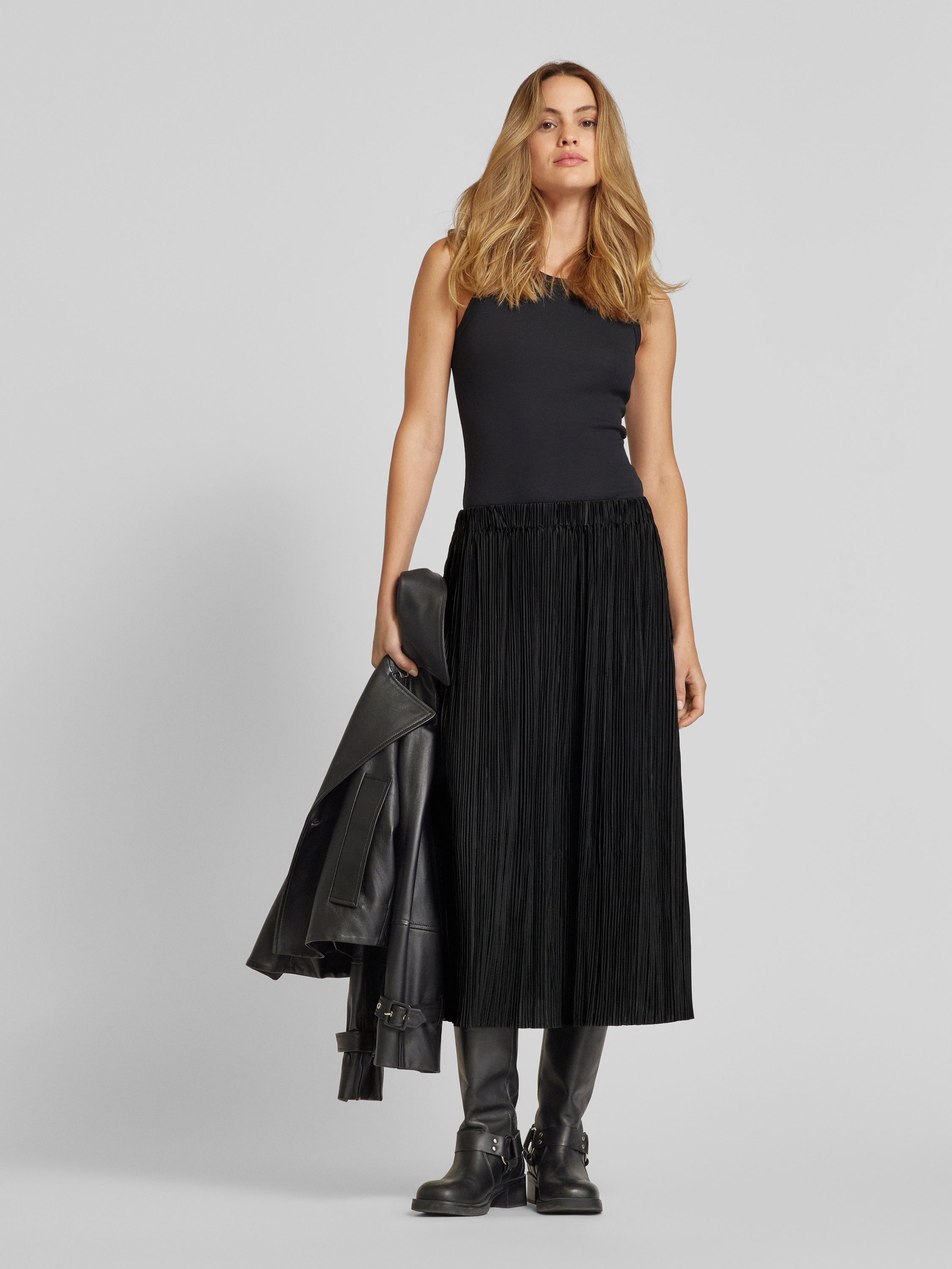 Der Midirock 'UMA' von Samsøe & Samsøe vereint Eleganz und Komfort durch seinen geraden Schnitt und die feinen Plisseefalten. Der Material-Mix mit Stretch-Anteil sorgt für eine angenehme Passform, die Bewegungsfreiheit ermöglicht. Ideal für verschiedene Anlässe, bietet er stilvolle Vielseitigkeit.