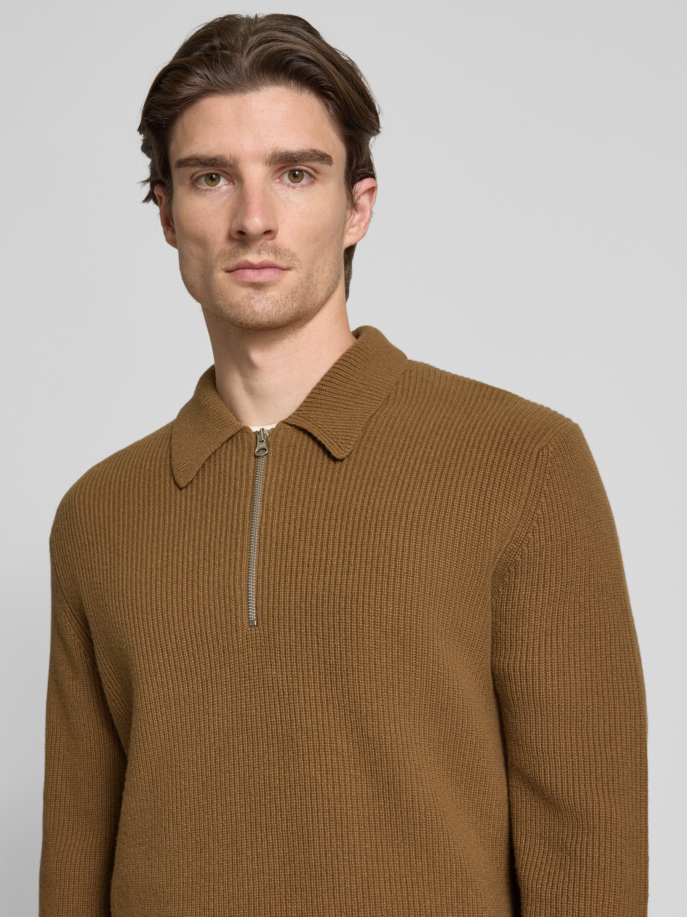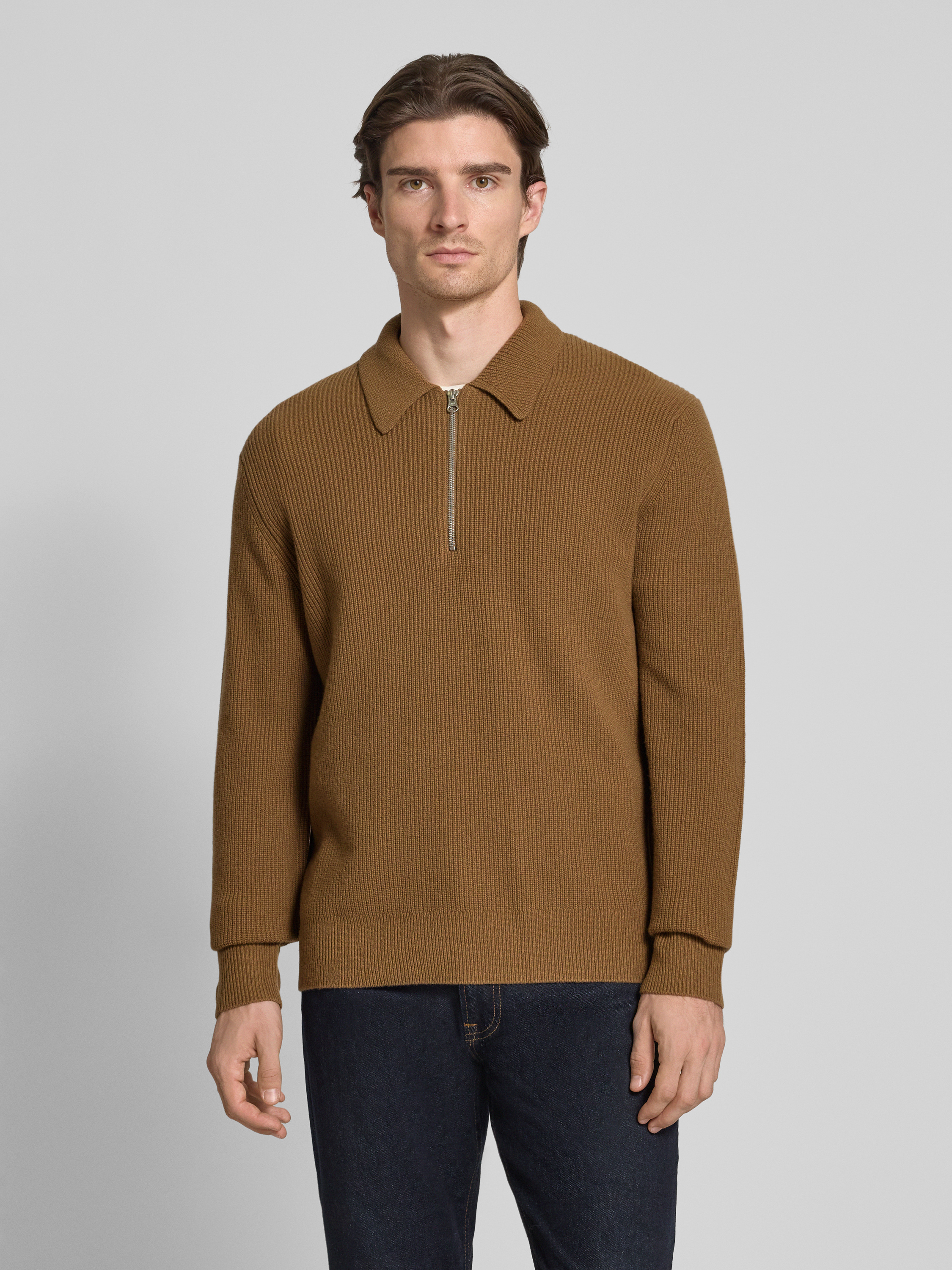 Der Herren Strickpullover ISAKS von Samsøe Samsøe zeigt sich im Regular Fit und fällt durch die Kombination aus Umlegekragen und Ripp-Optik angenehm ins Auge. Gefertigt aus reiner Wolle, sorgt er für ein komfortables Tragegefühl – sowohl an kühlen Tagen als auch im Alltag. Durch den Schnitt und die hochwertige Materialwahl erhält man ein vielseitiges Kleidungsstück, das sich unkompliziert in verschiedene Outfits integrieren lässt.