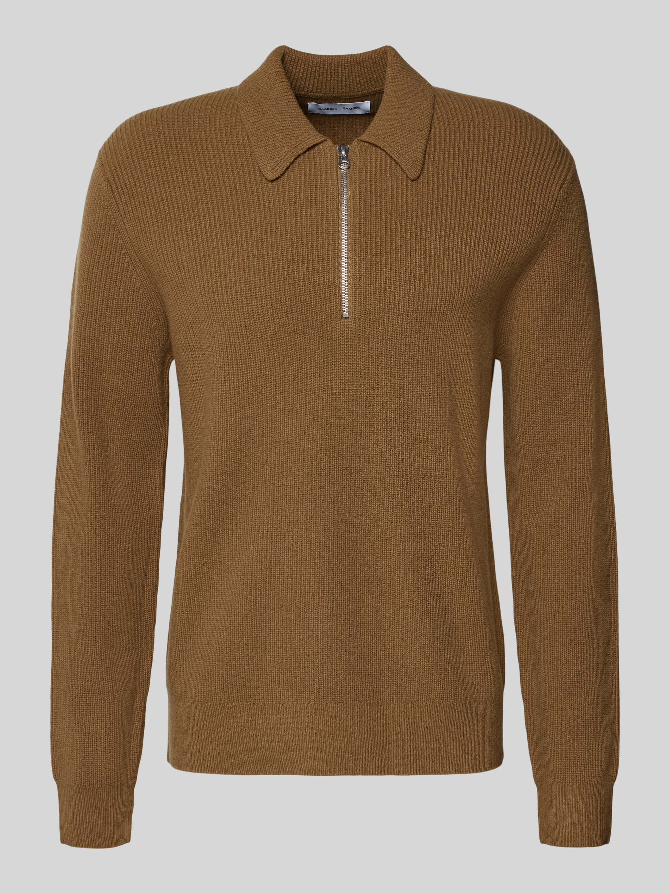 Samsøe SamsøeStrickpullover aus Wolle mit Reißverschluss Modell 'ISAKS' in beige