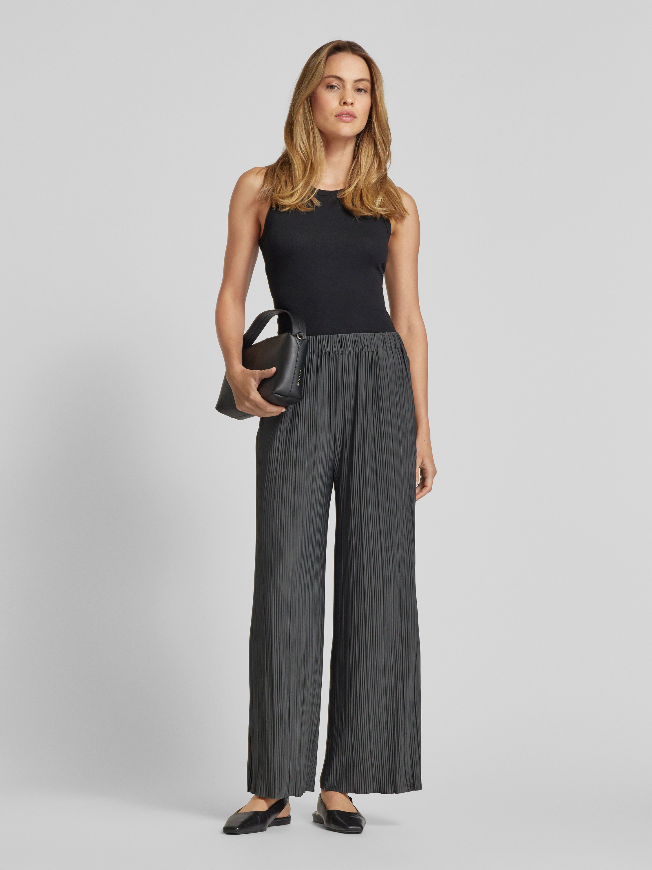 Samsøe SamsøeWide Leg Stoffhose mit elastischem Bund Modell 'UMA' in anthrazit