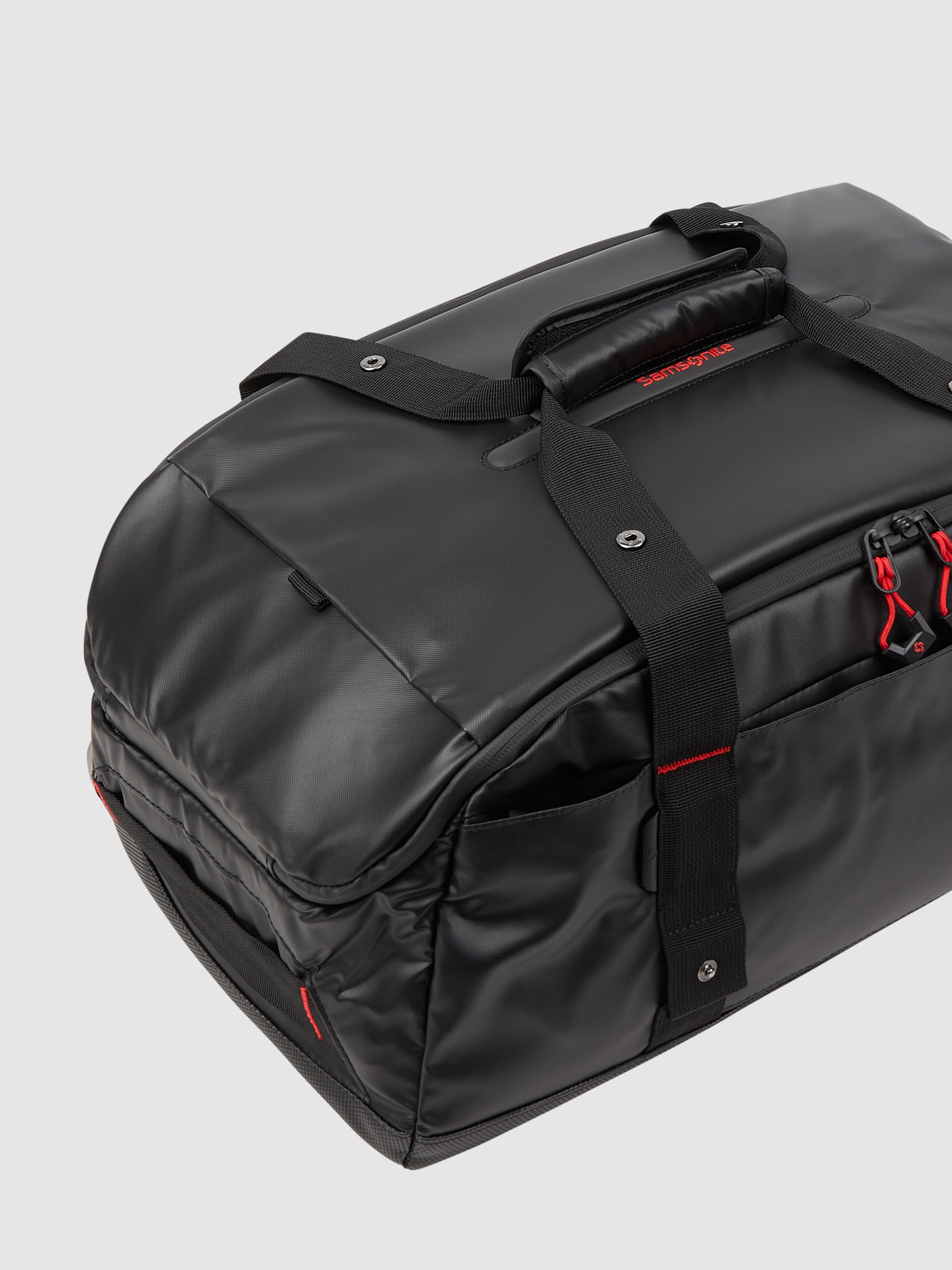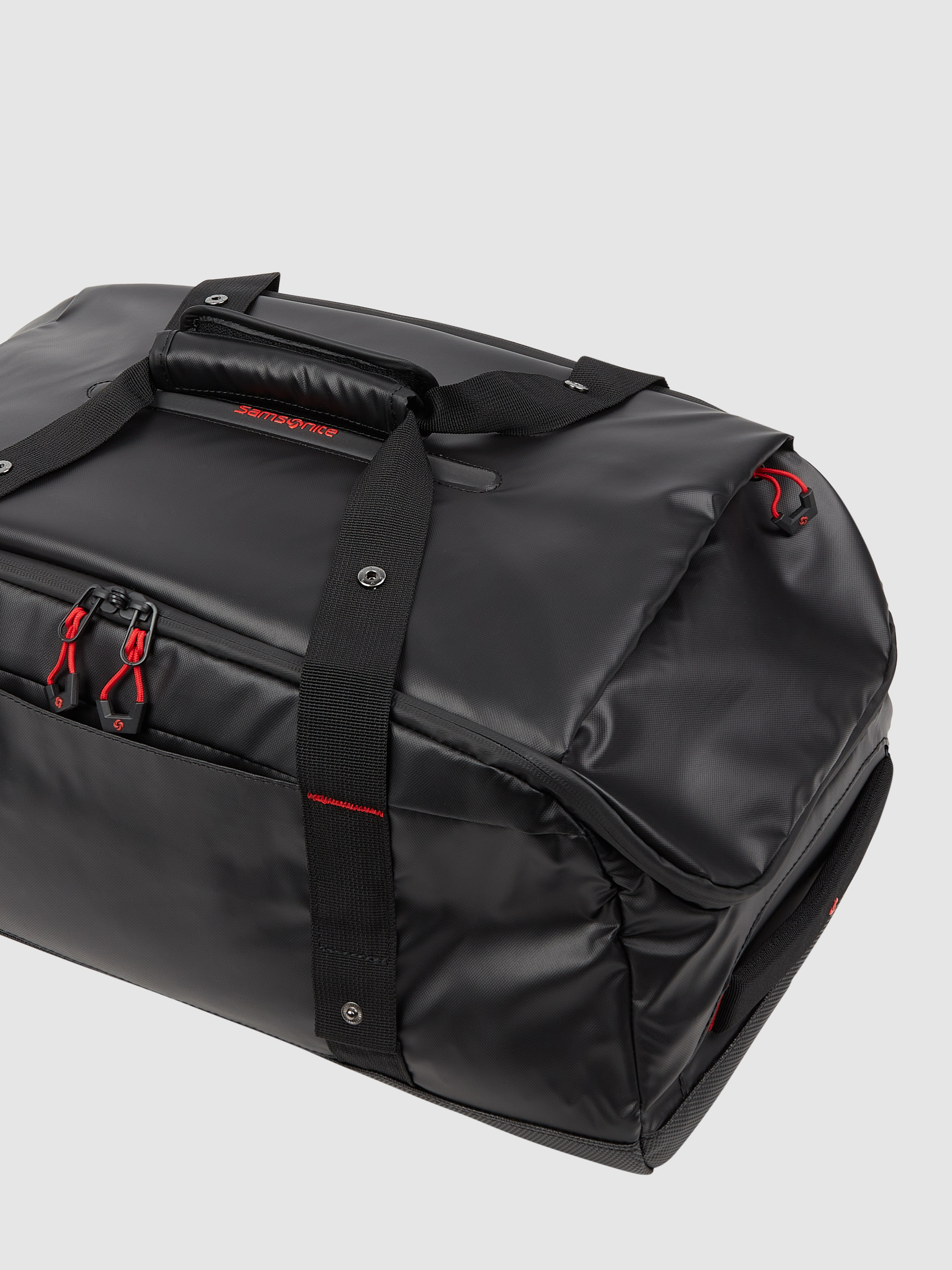 Der Weekender von Samsonite, Modell 'Ecodiver', überzeugt mit seinem strapazierfähigen Material, das optimalen Schutz bei jedem Abenteuer bietet. Dank der gepolsterten Schulterriemen und der praktischen Teleskopstange wird das Reisen komfortabler. Zwei Rollen ermöglichen ein müheloses Fortbewegen, sodass man flexibel bleibt.