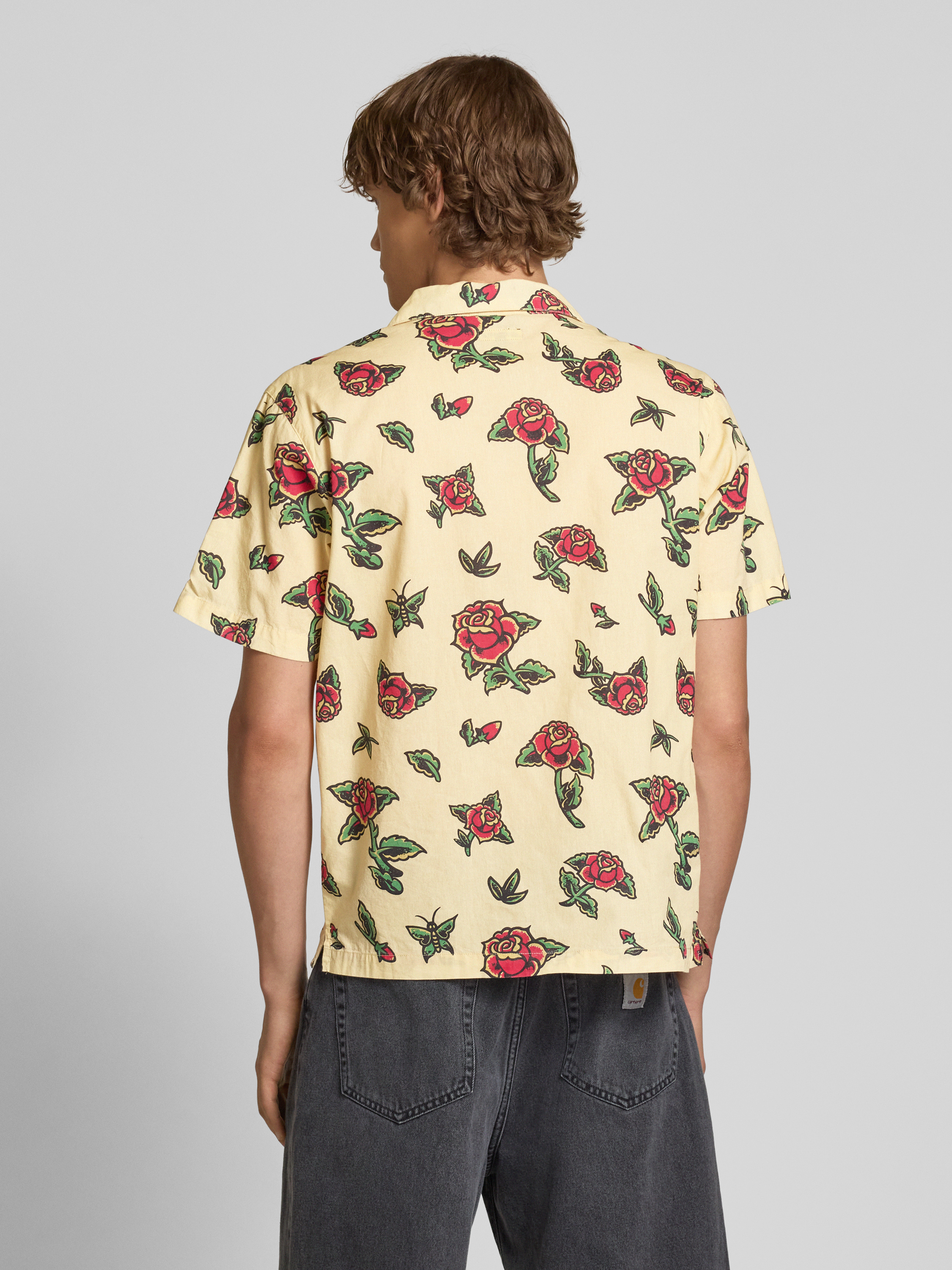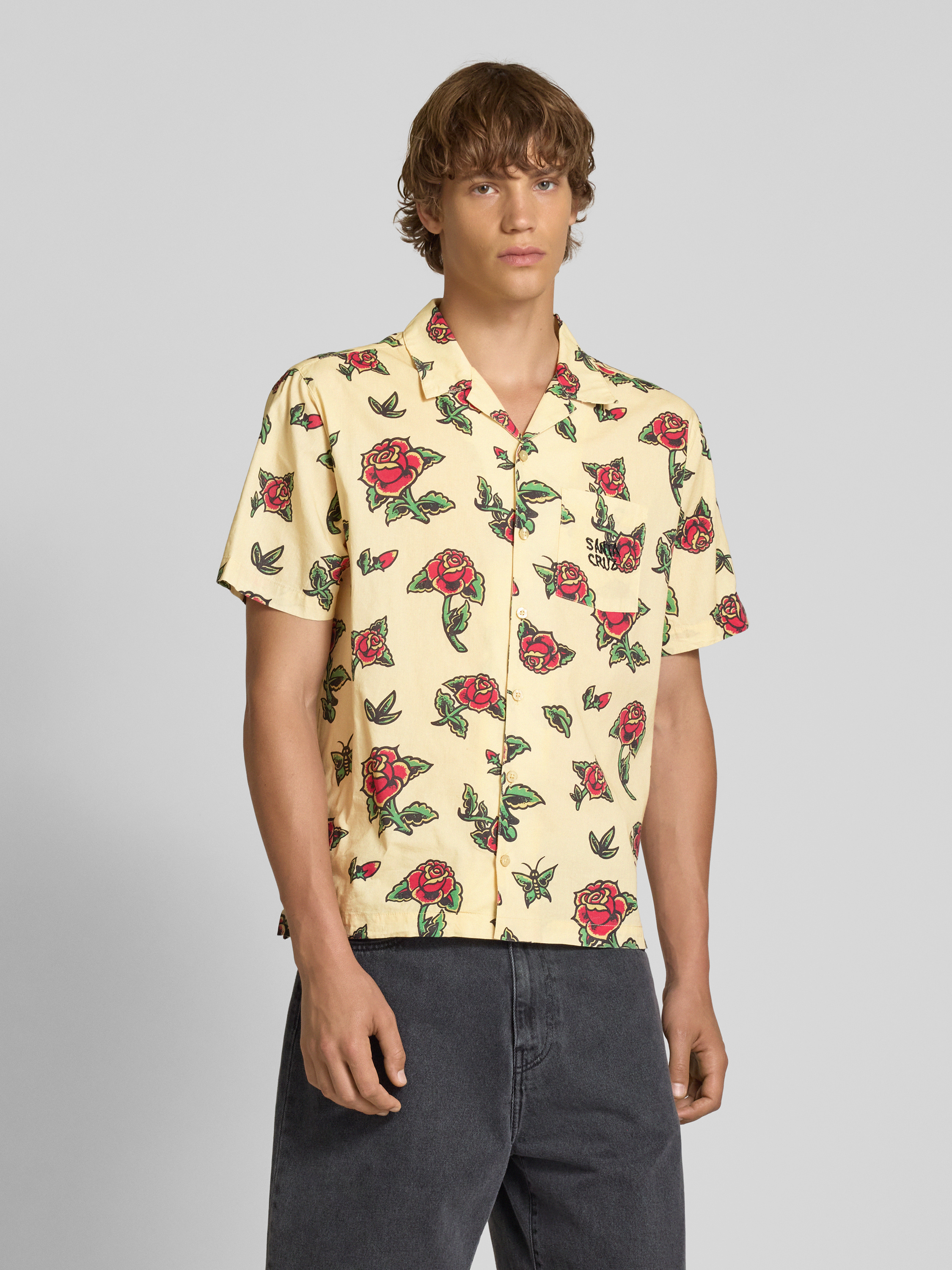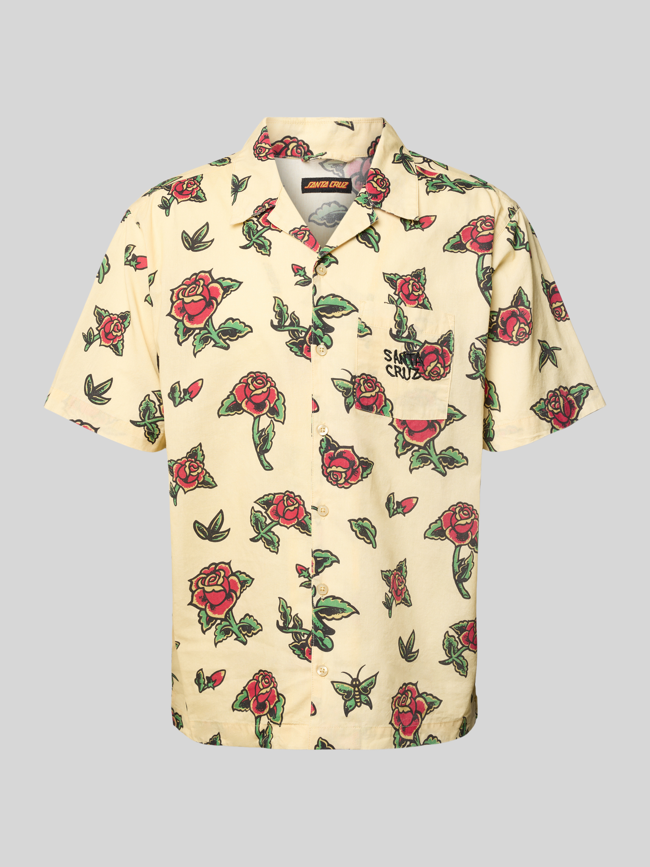 Das Herrenhemd von SANTA CRUZ Modell FLASH ROSES zeigt sich mit lockerem Regular Fit und markantem Allover-Look. Durch die reine Baumwolle trägt es sich angenehm und unkompliziert, während der Reverskragen und die Brusttasche dem Hemd eine entspannte Note verleihen.