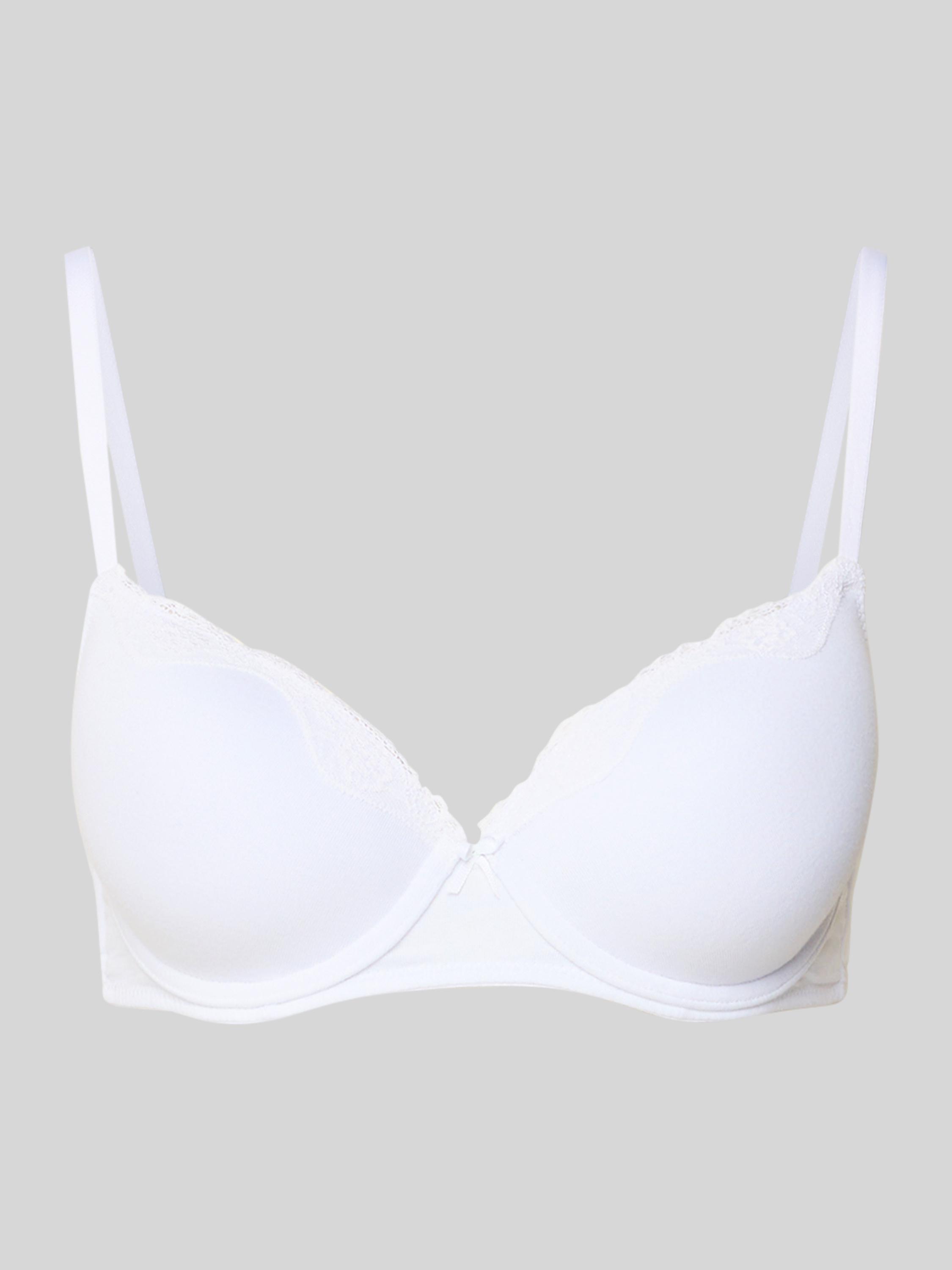 Der Damen Bügel-BH von Schiesser aus einem Baumwoll-Elasthan-Mix liegt angenehm am Körper und sorgt durch seine vorgeformten Cups für eine dezente Silhouette. Eingearbeitete Bügel unterstützen eine natürliche Form, während sich die Träger individuell anpassen lassen. Ein feiner Spitzenbesatz verleiht dem Modell eine zarte Note, sodass man sich im Alltag rundum wohlfühlen kann.